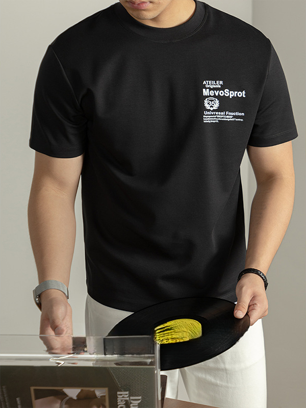 【桑蠶絲&長絨棉】馬頭燙花設計涼感短袖t桖男夏季輕薄透氣體恤衫
