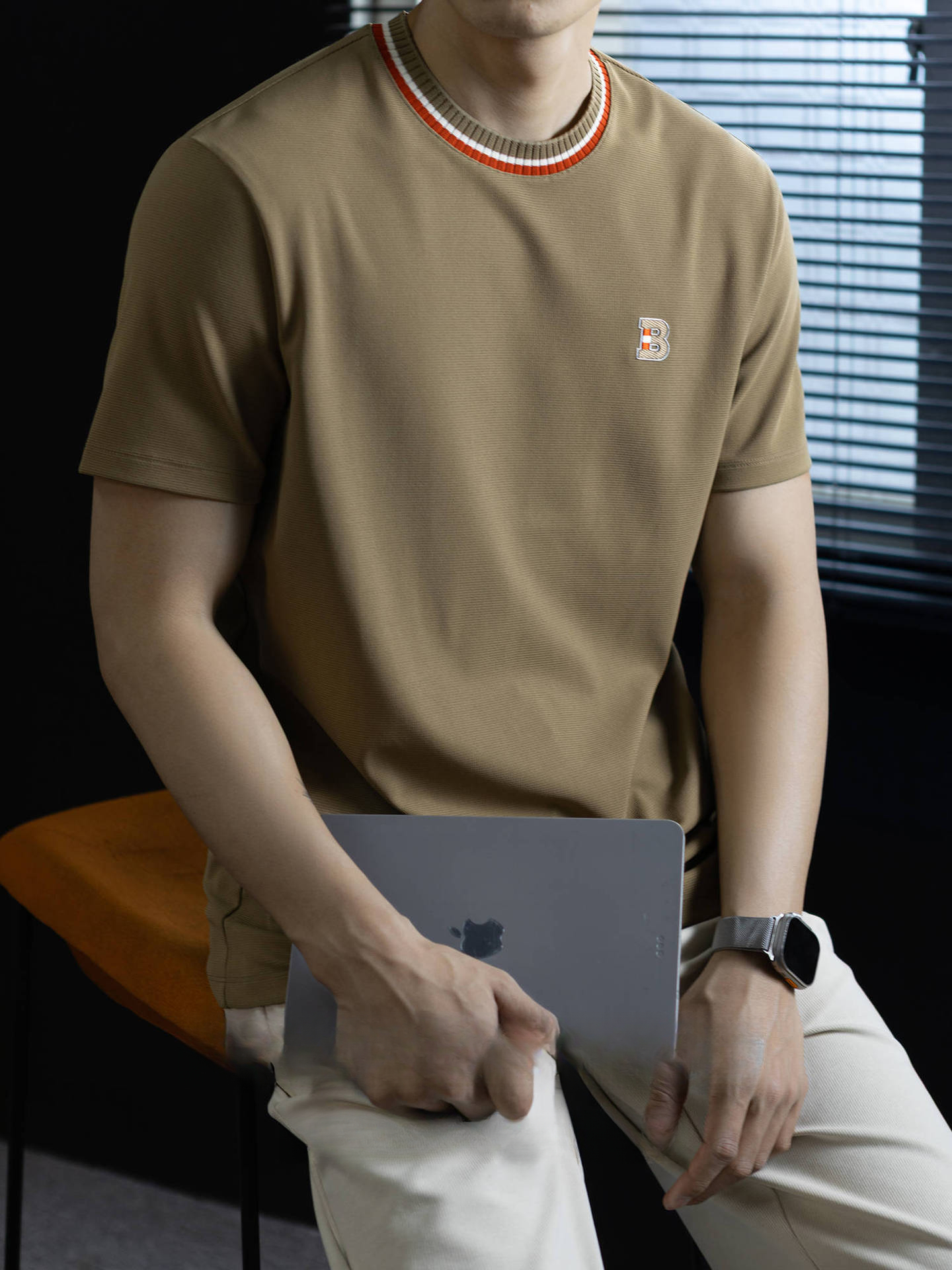 豎紋肌理萊塞爾混紡針織T恤男士2026春季新款老錢風透氣羅紋毛衣
