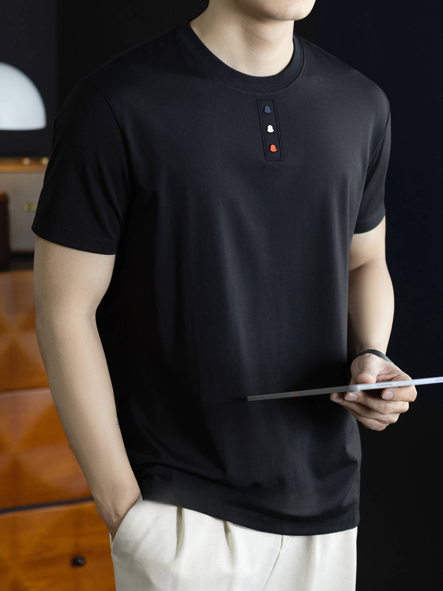 【奔馬貼布繡】冰絲親膚棉撞色短袖T恤男士時尚涼感舒適夏季半袖