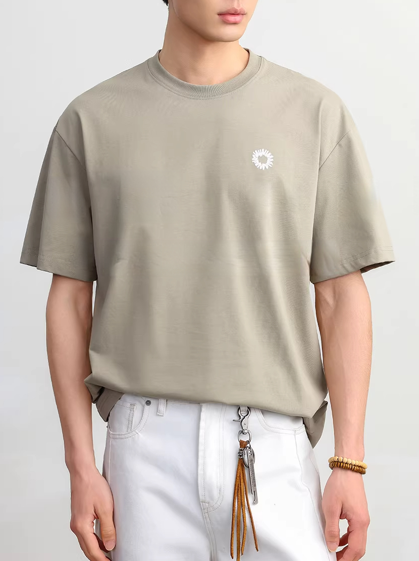 【100%純棉】精緻刺繡設計T桖短袖男款夏季商務百搭透氣上衣圓領