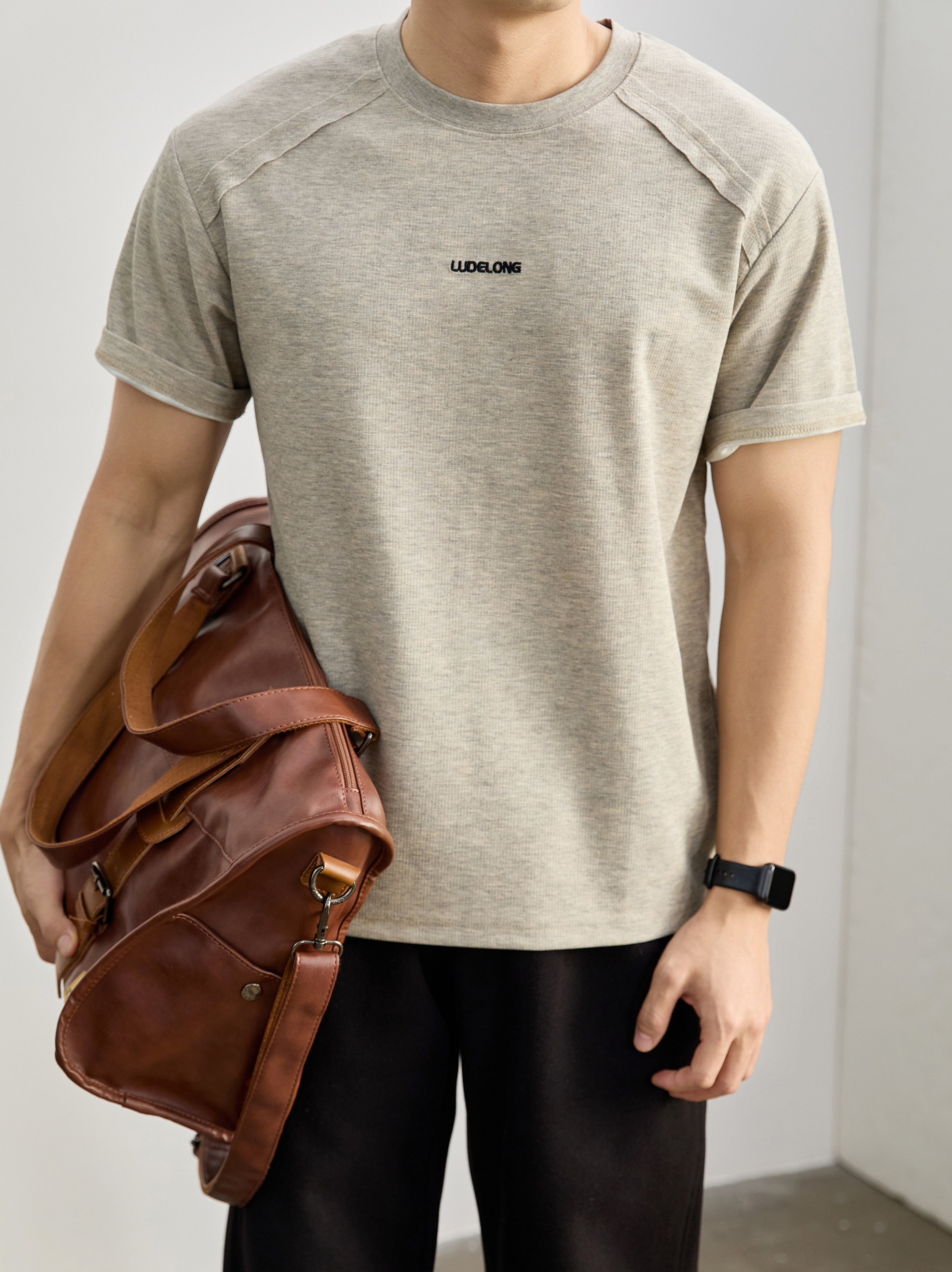 輕運動質感肌理休閒圓領T恤男士2026春夏新款通勤透氣速幹運動衫