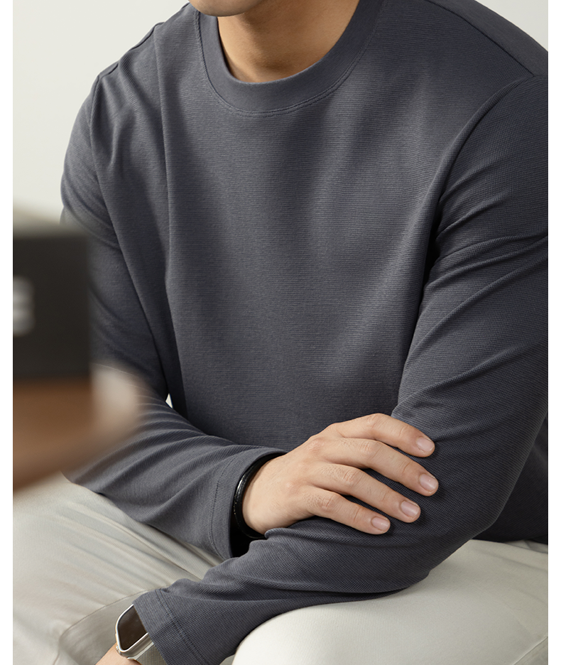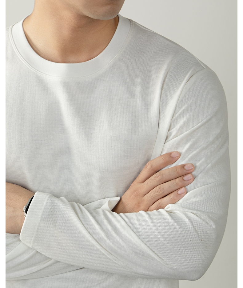 【慵懶高級感】240G重磅華夫格肌理長袖T恤男秋冬打底衫微闊寬鬆