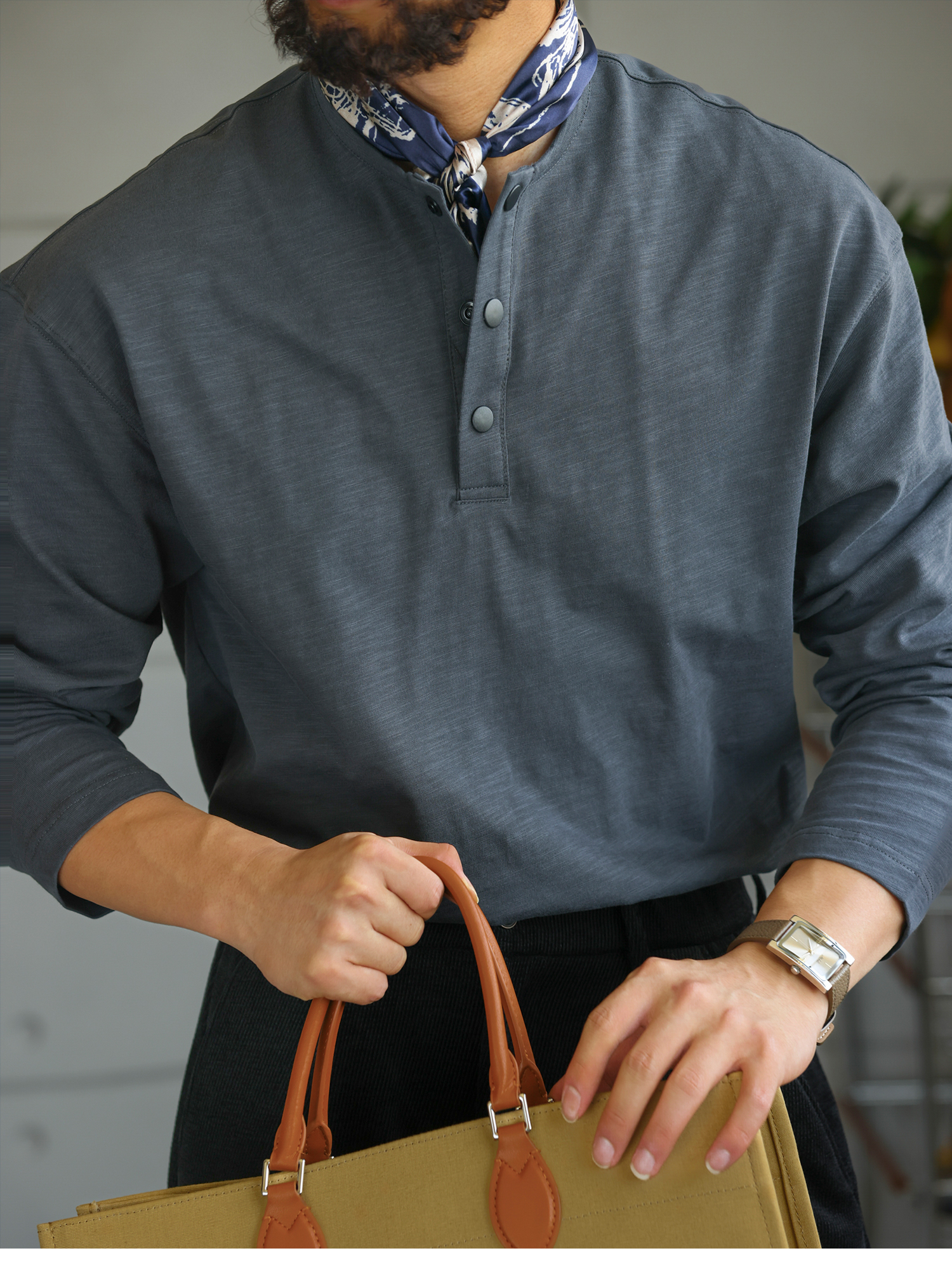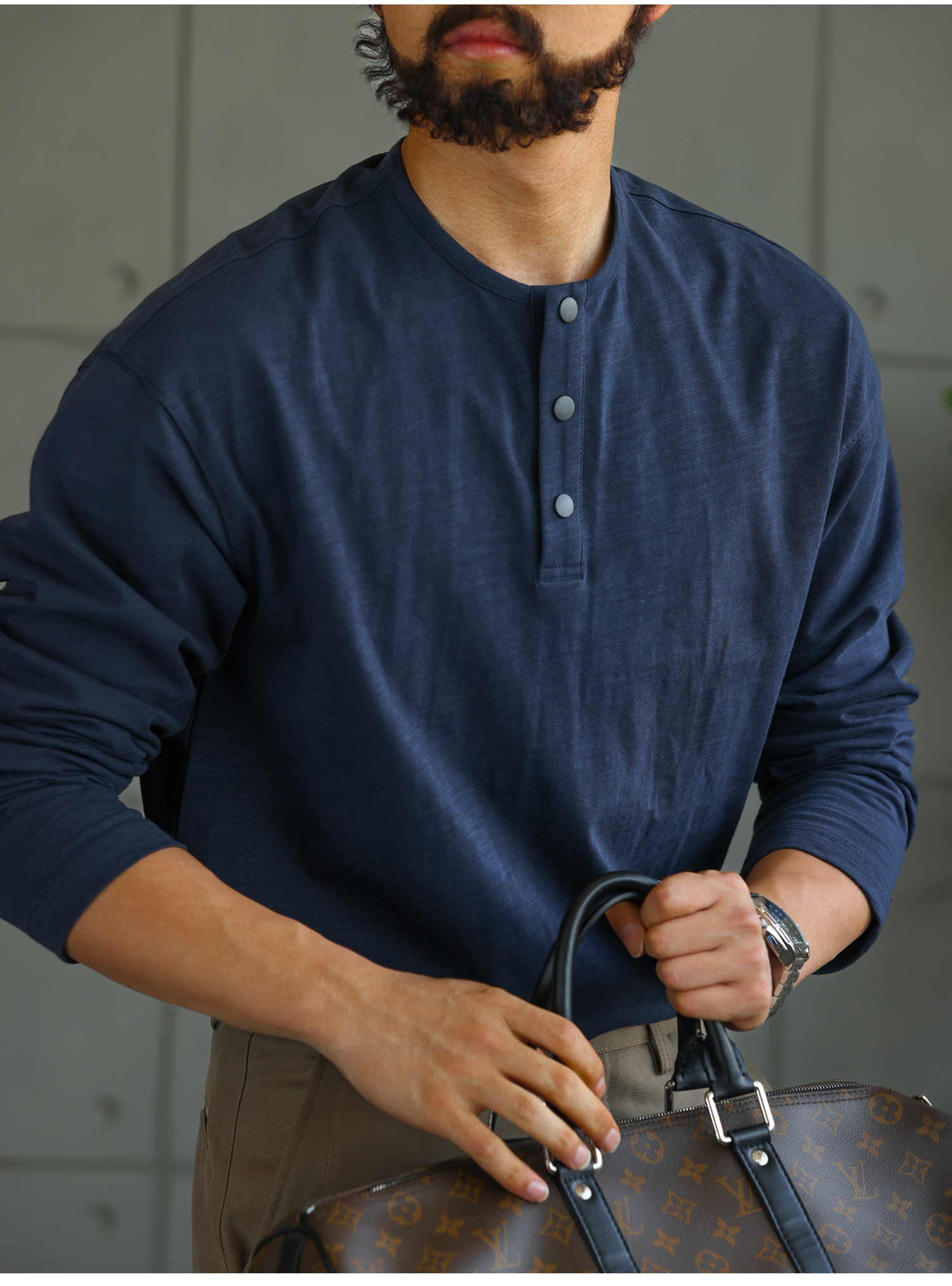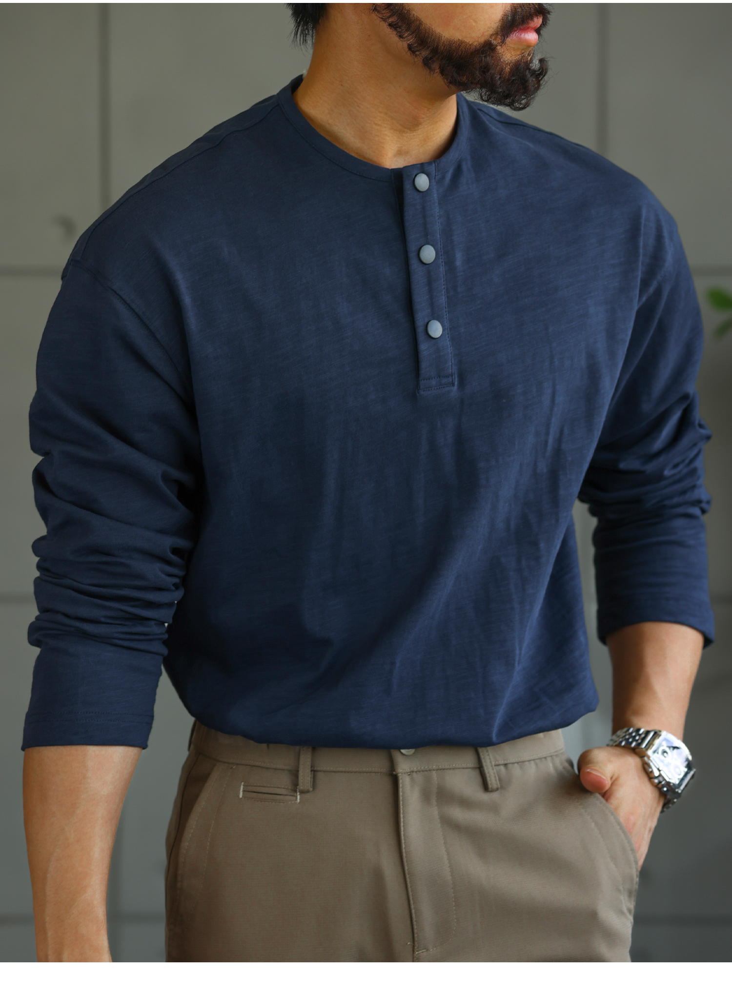 【绅士型格】舒适老钱亨利领长袖T恤男秋季竹节棉打底衫
