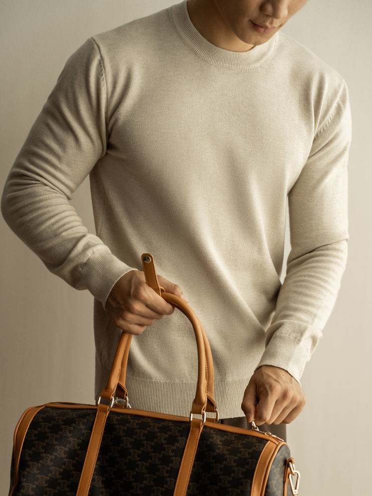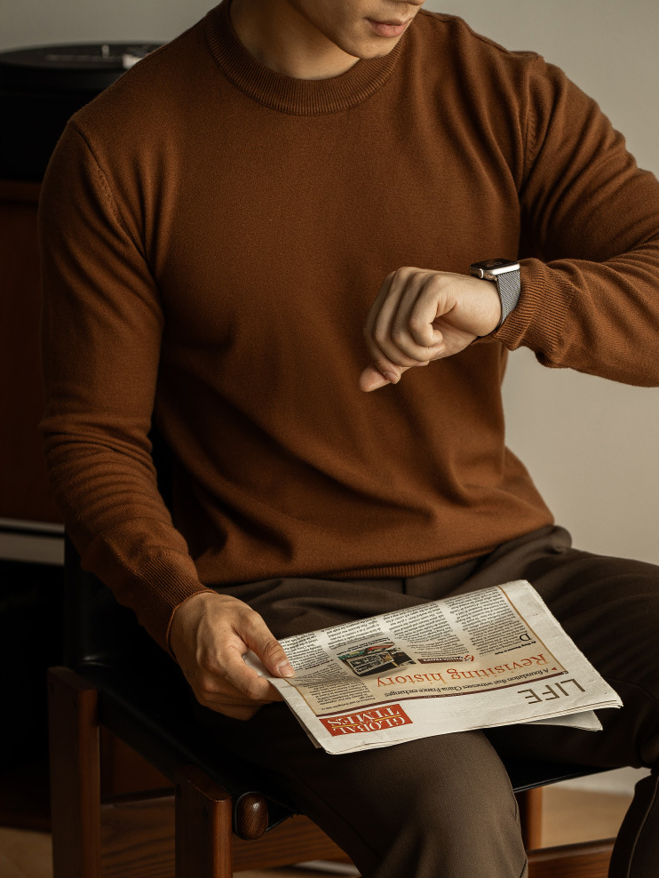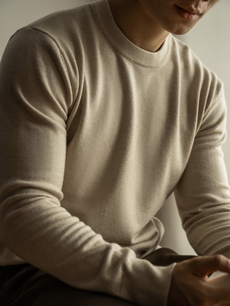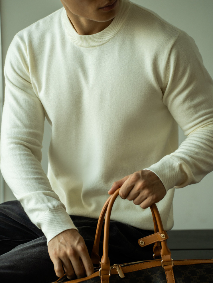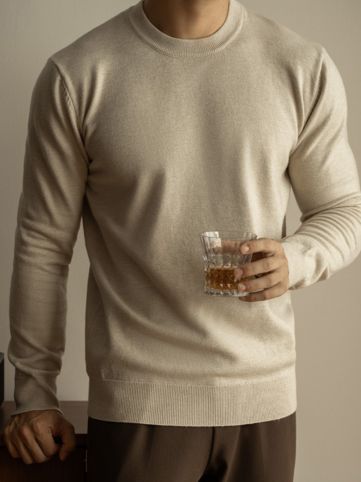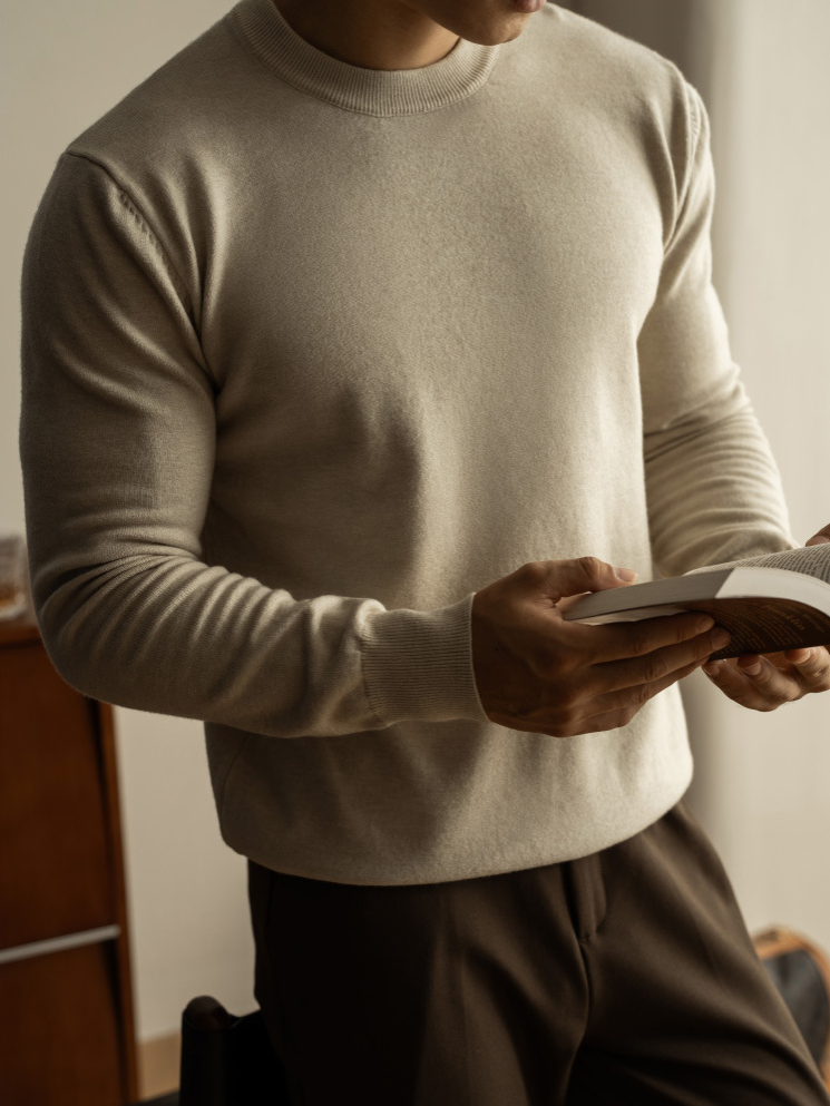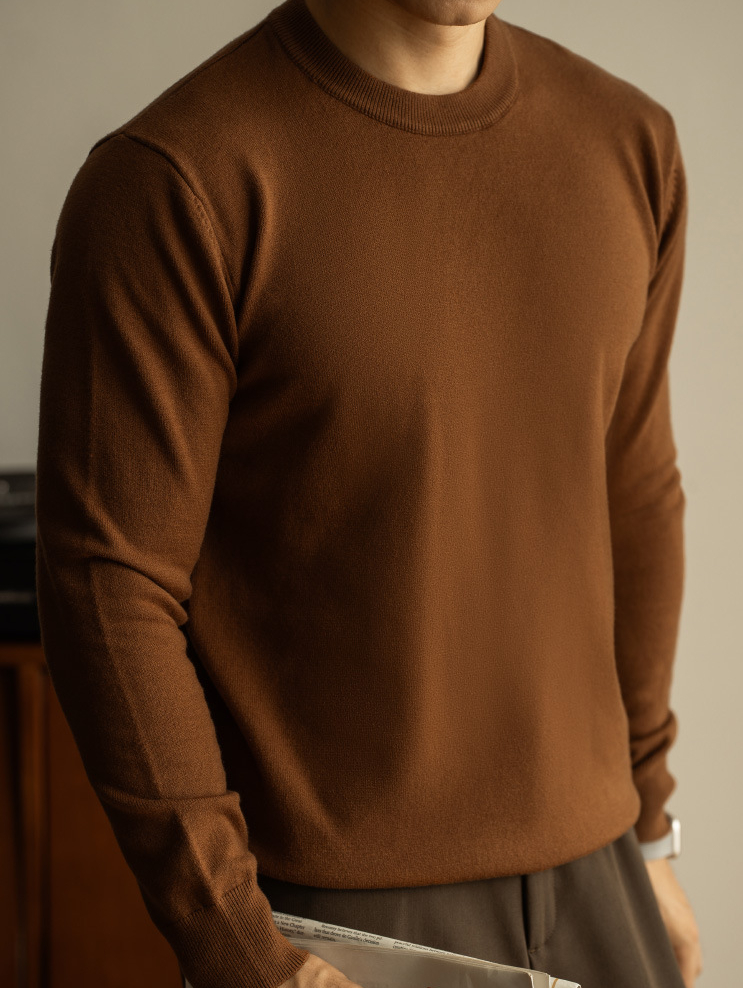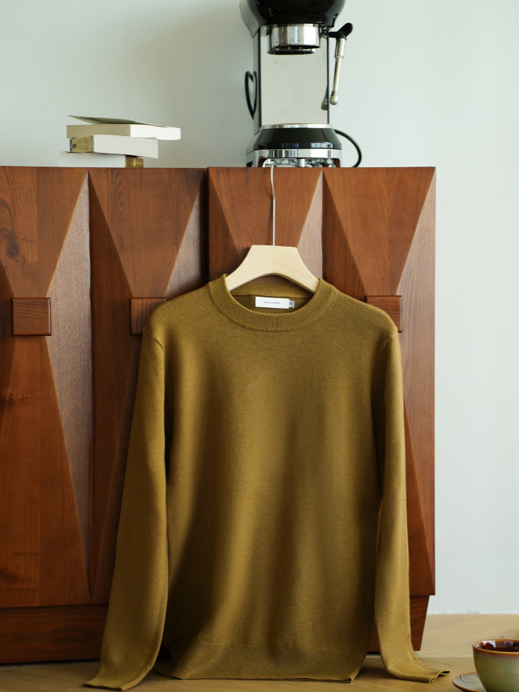 天絲羊毛純色針織衫秋冬新款圓領長袖毛衣男保暖內搭打底衫
