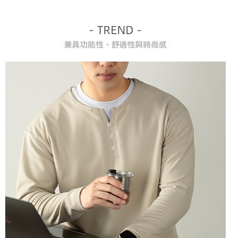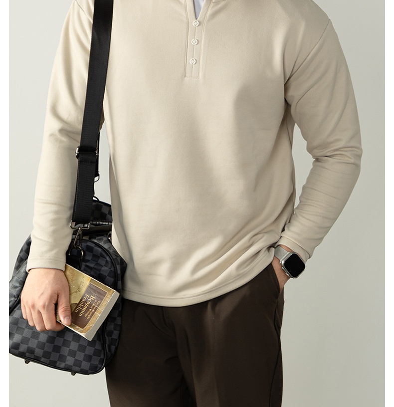 意式老錢風| 加絨加厚保暖內裏亨利領長袖T恤男裝秋冬舒適打底衫