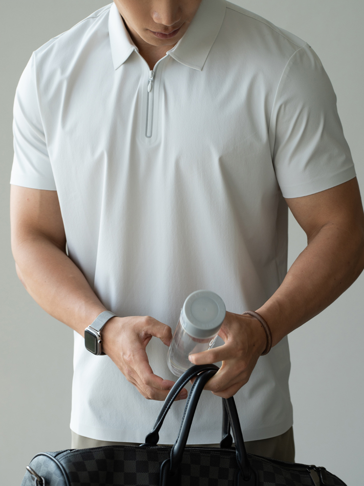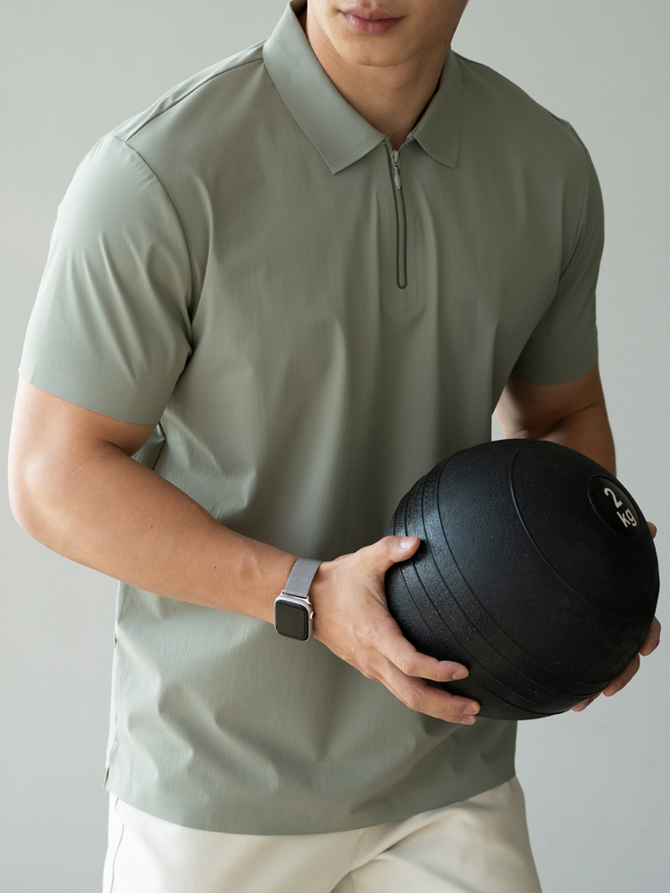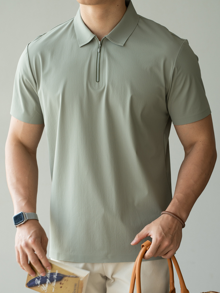 抗紫外線冰絲涼感半拉鍊運動短袖T恤男士夏季polo衫