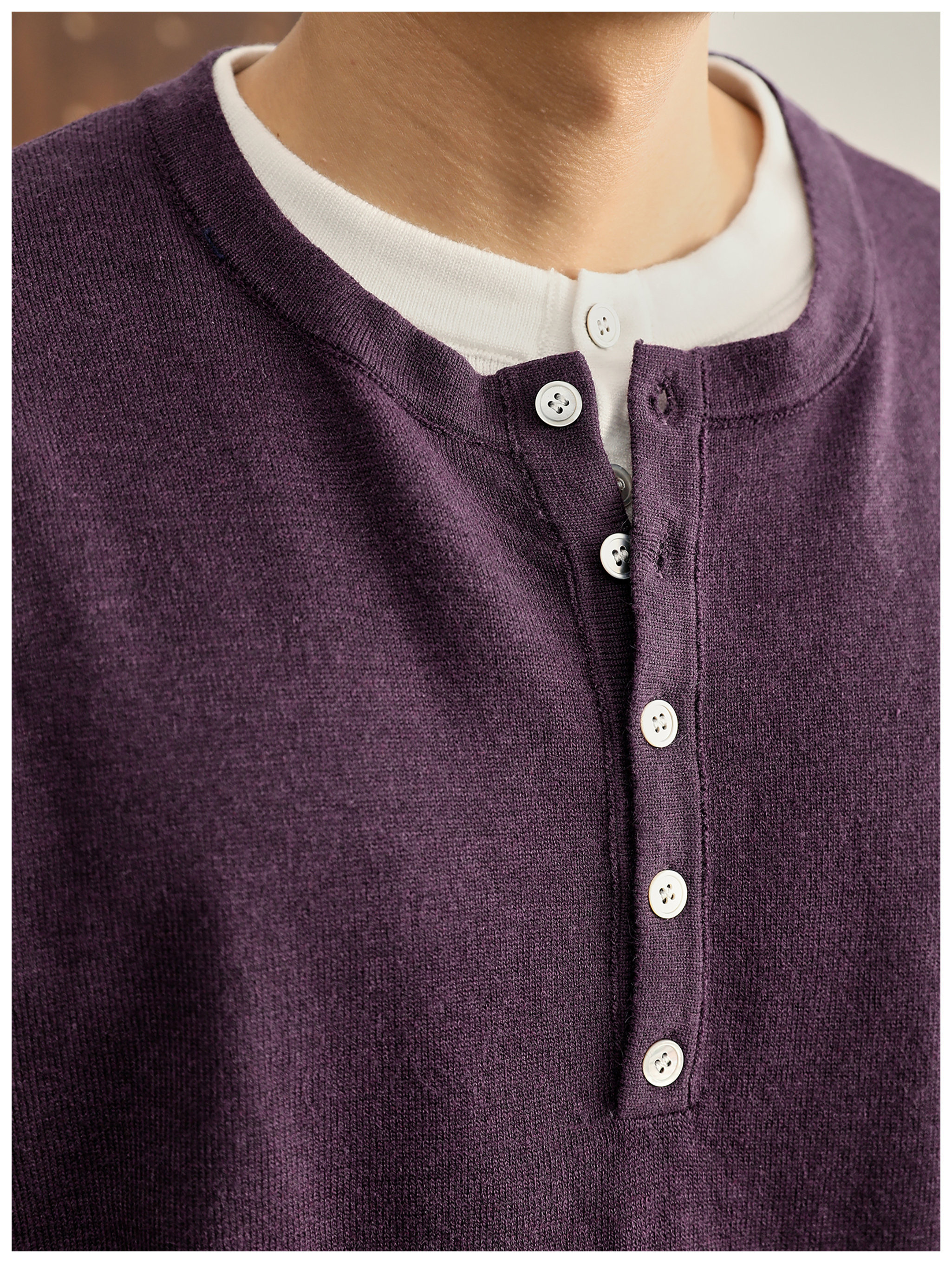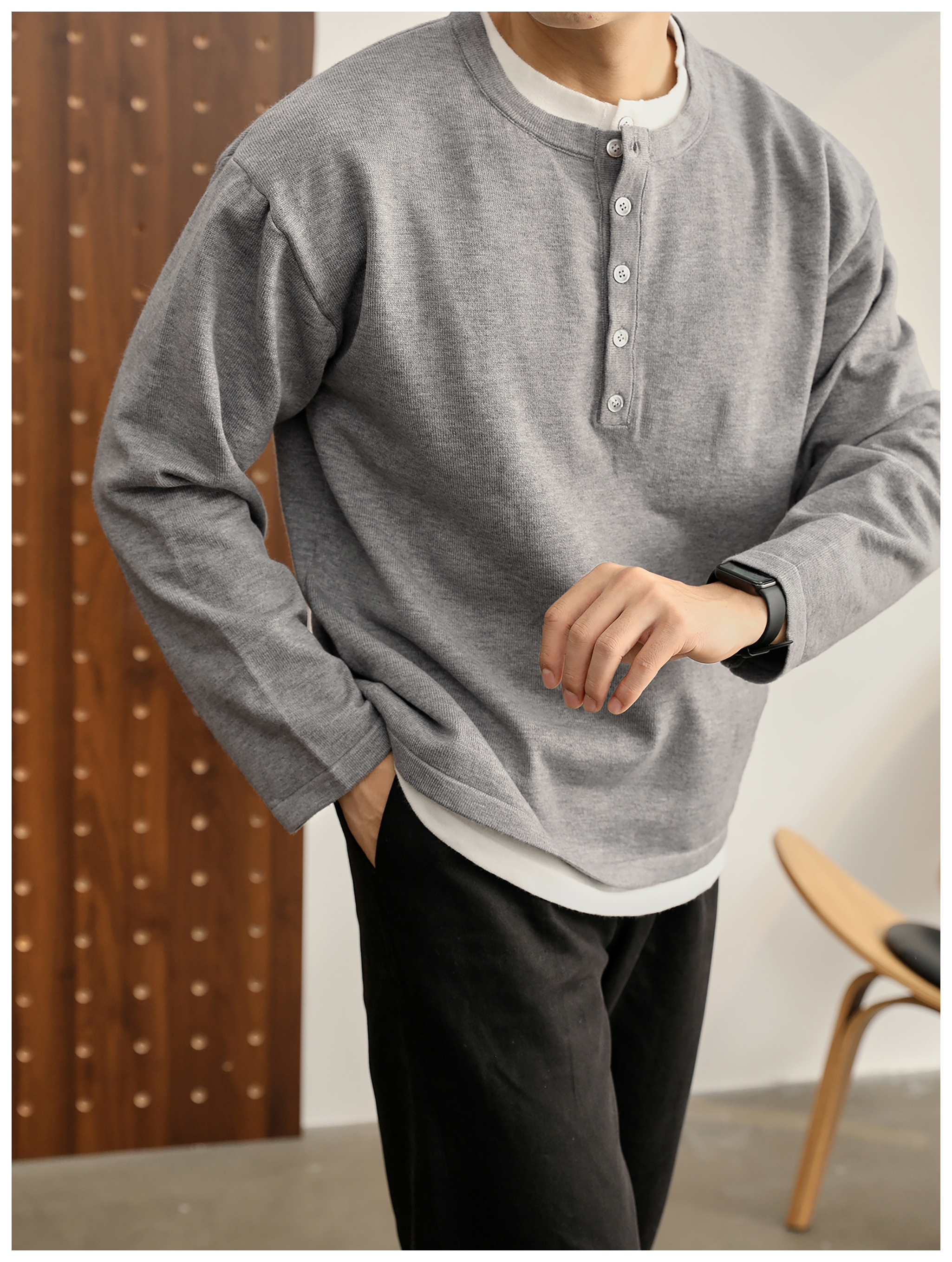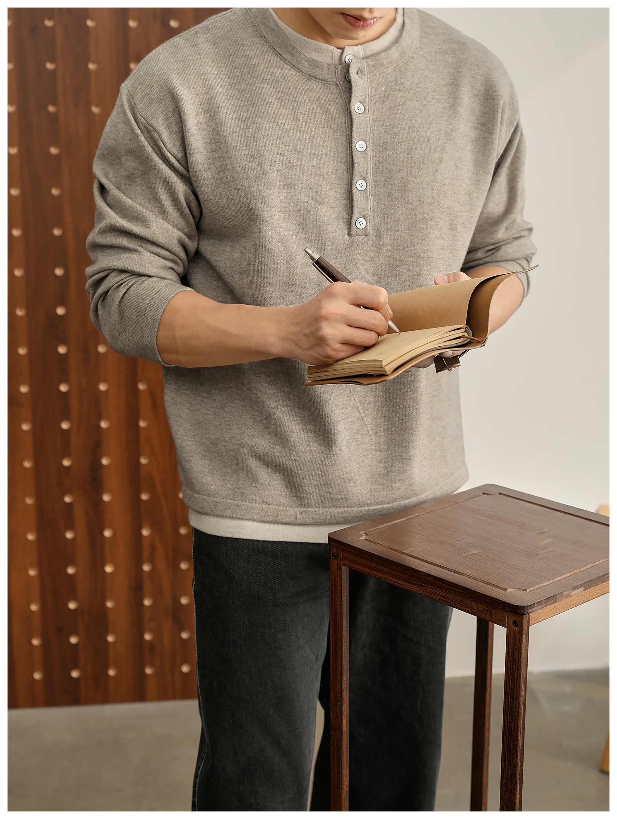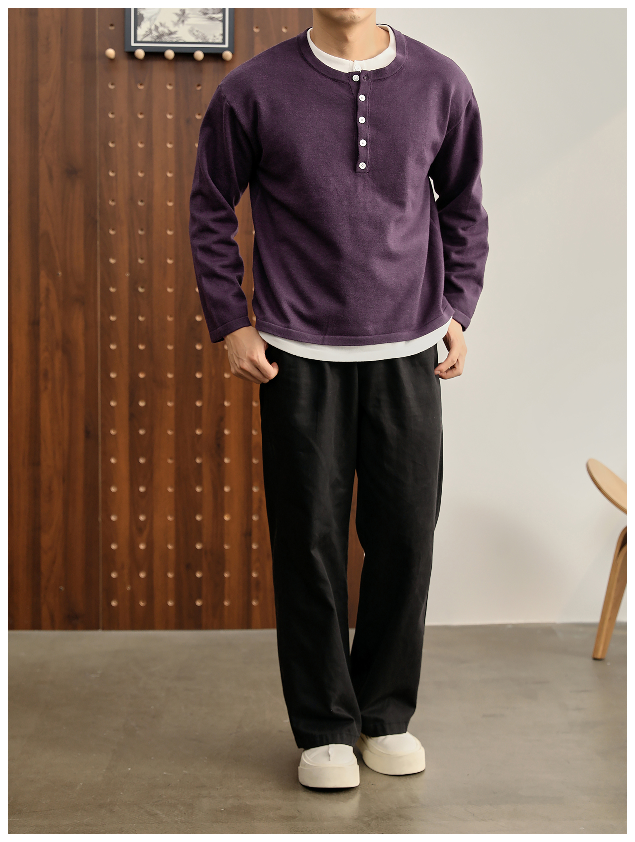 時髦高智感假兩件撞色亨利領針織衫男士秋季休閒百搭長袖T恤