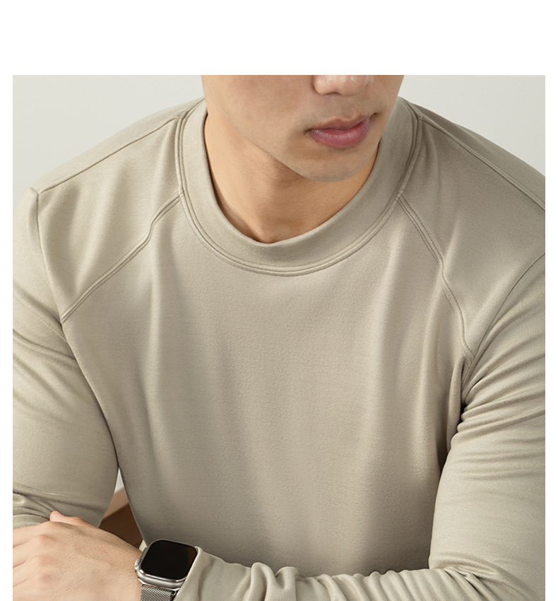 桑蠶絲羊毛混紡雙面絨秋冬內搭長袖T恤圓領輕商務保暖衣