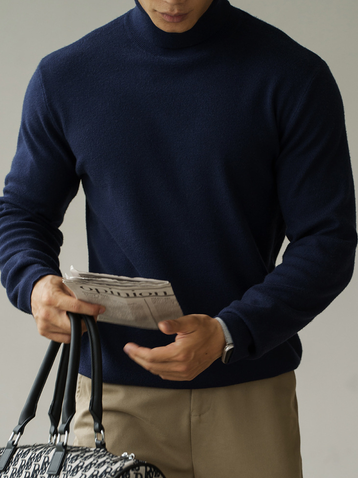 老錢風莫代爾混紡12針高領毛衣男2025秋冬新款慵懶休閒針織衫