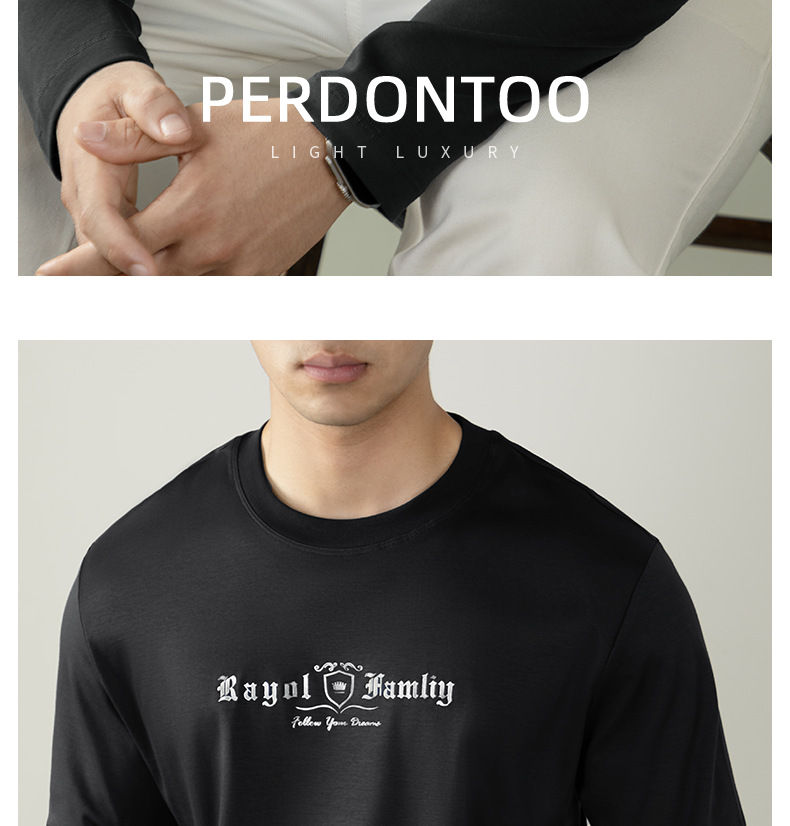 頂奢【液氨磨毛&慕斯絨感棉】男士100%純棉親膚柔滑秋冬長袖T恤衫