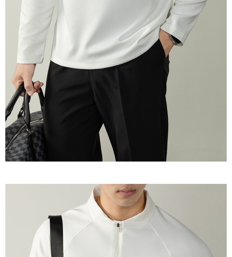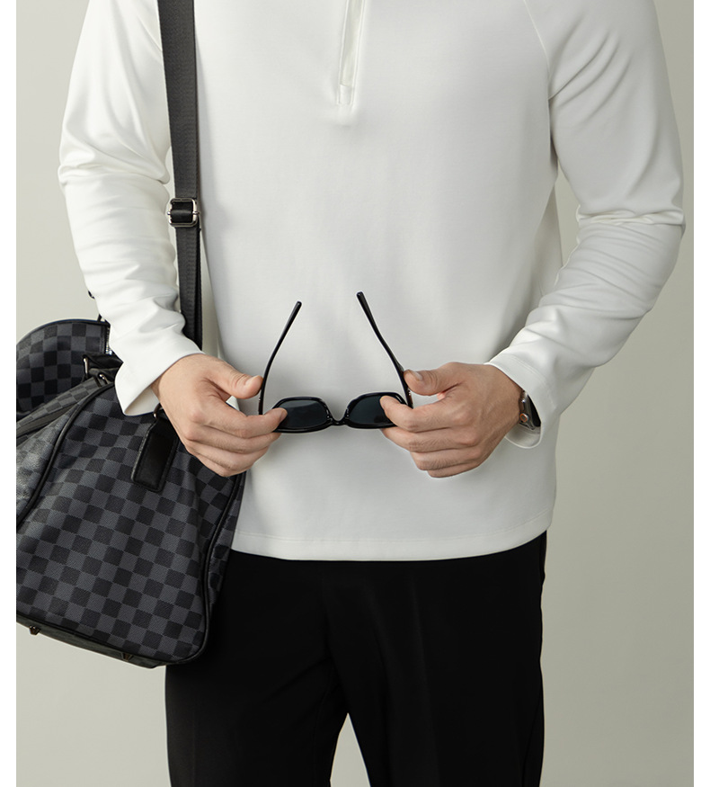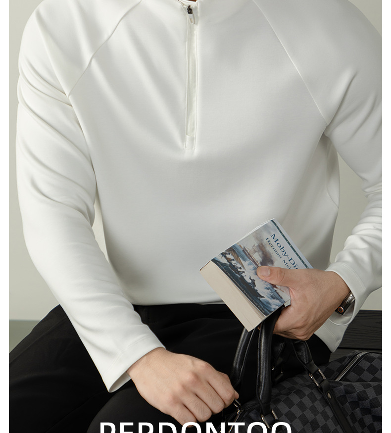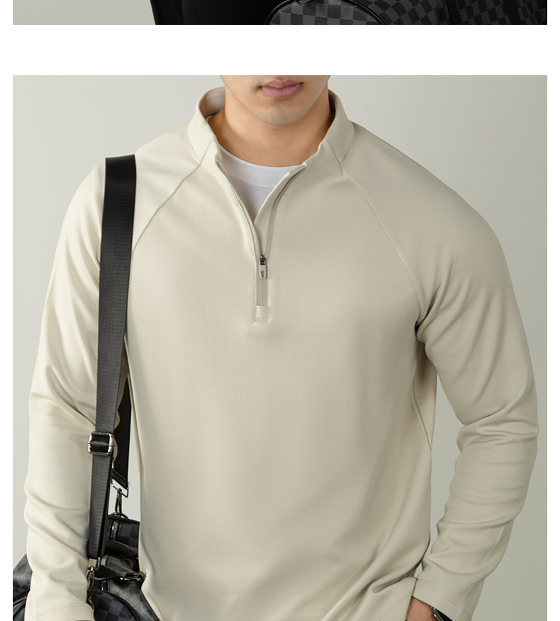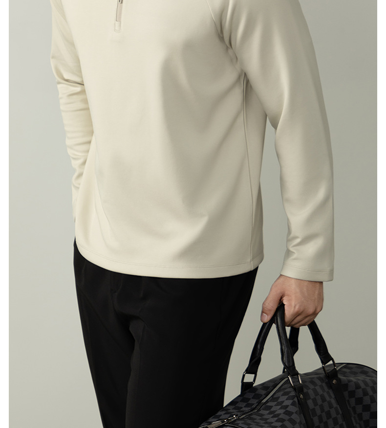 CloudTouch™頂奢300G莫代爾雲感T恤男長袖拉鍊立領商務通勤上衣