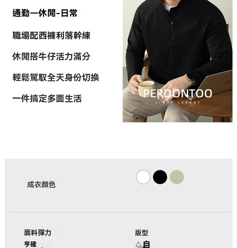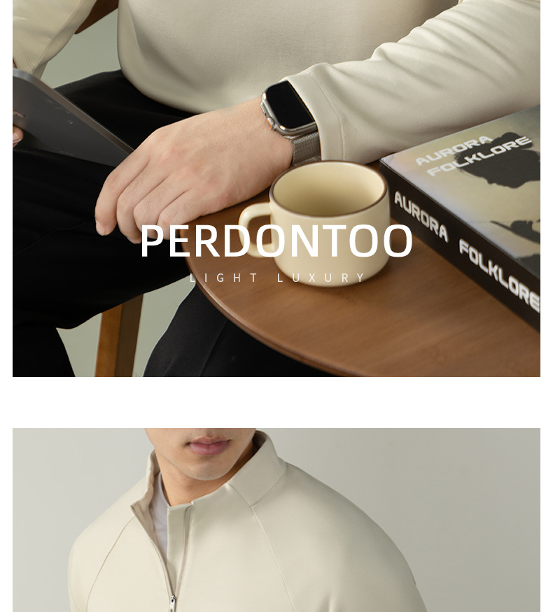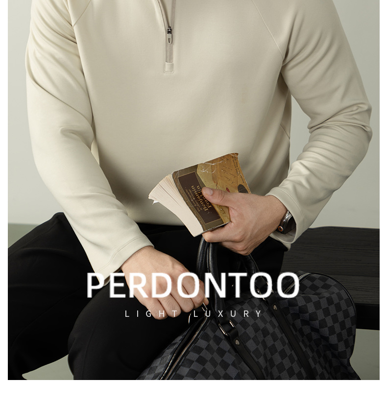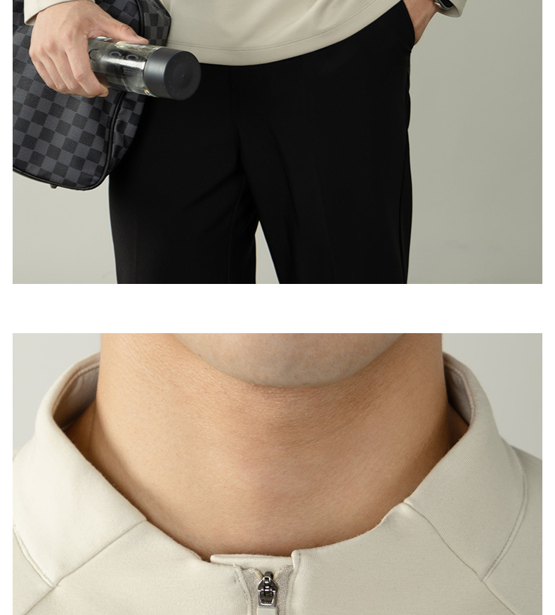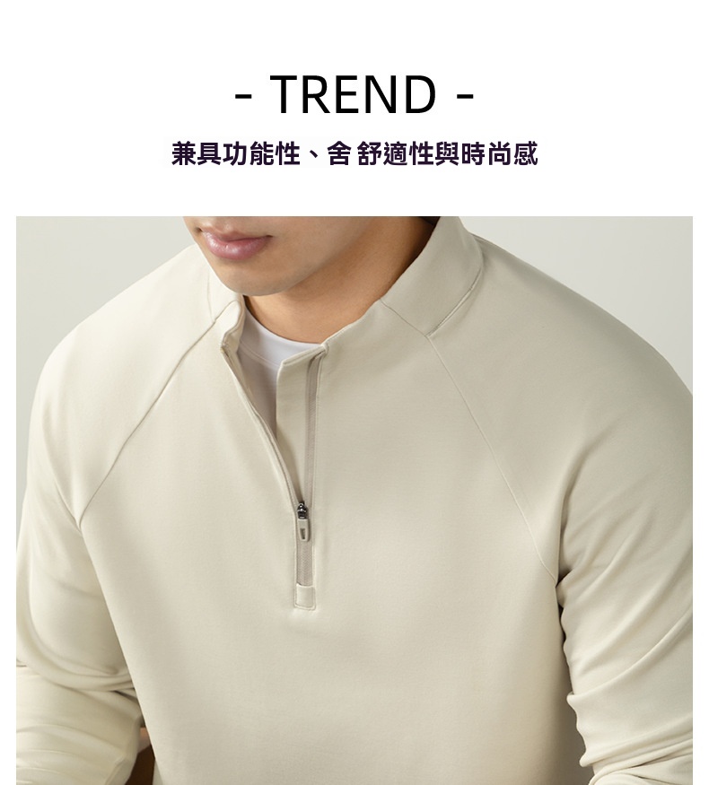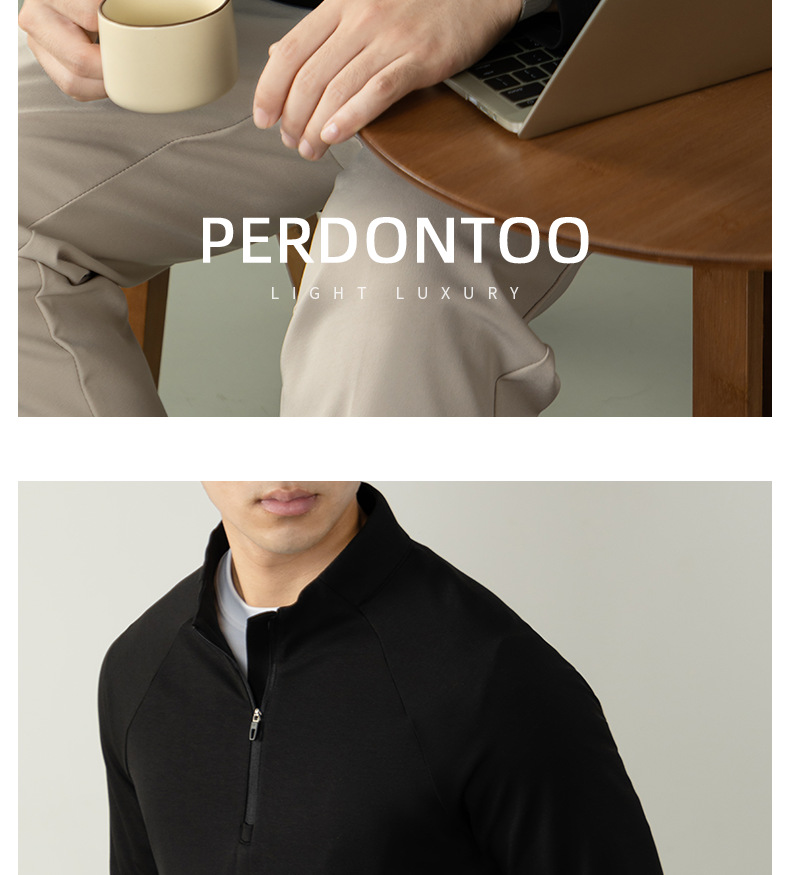 CloudTouch™頂奢300G莫代爾雲感T恤男長袖拉鍊立領商務通勤上衣