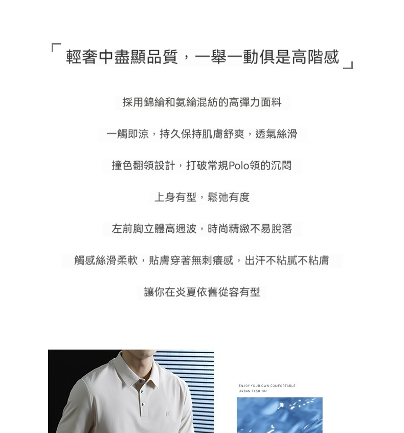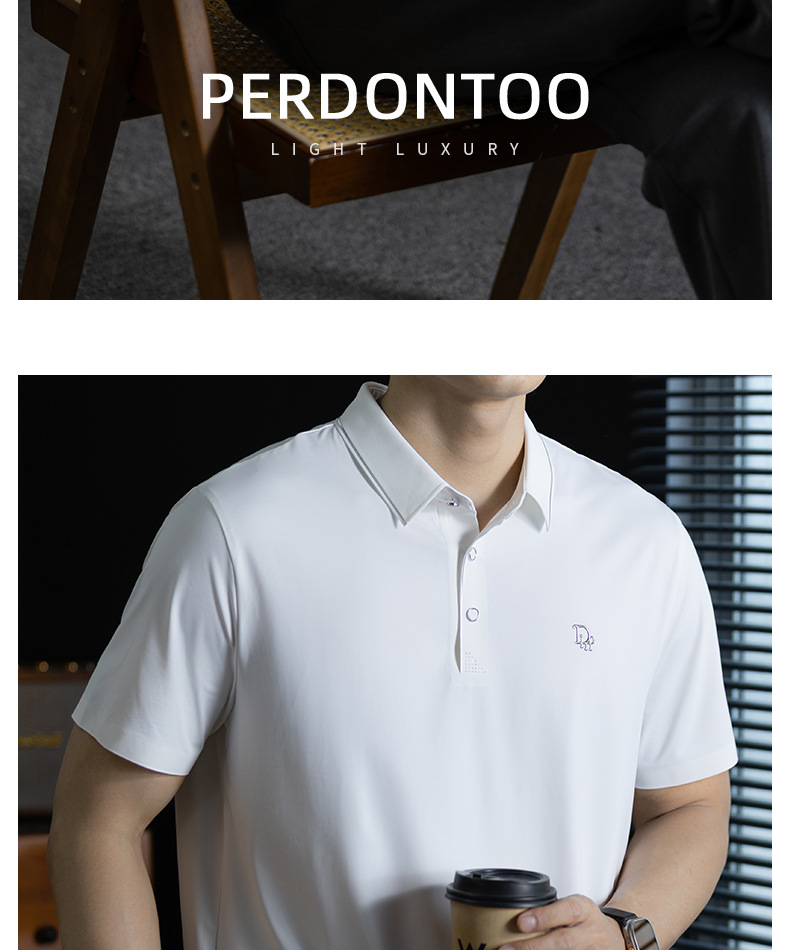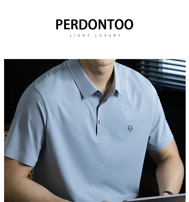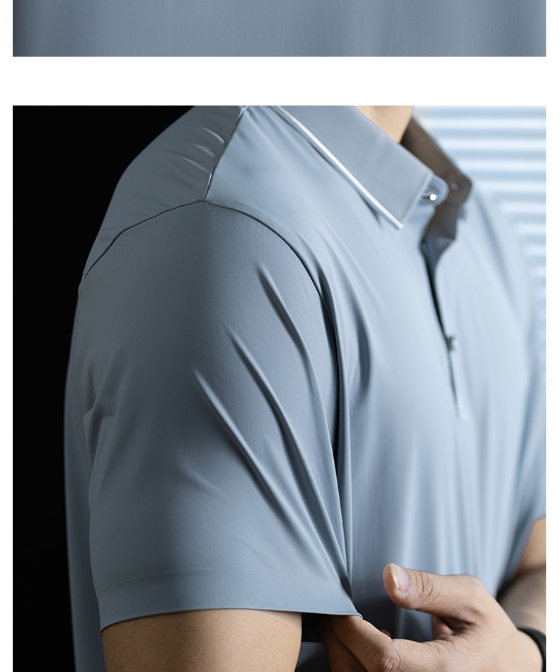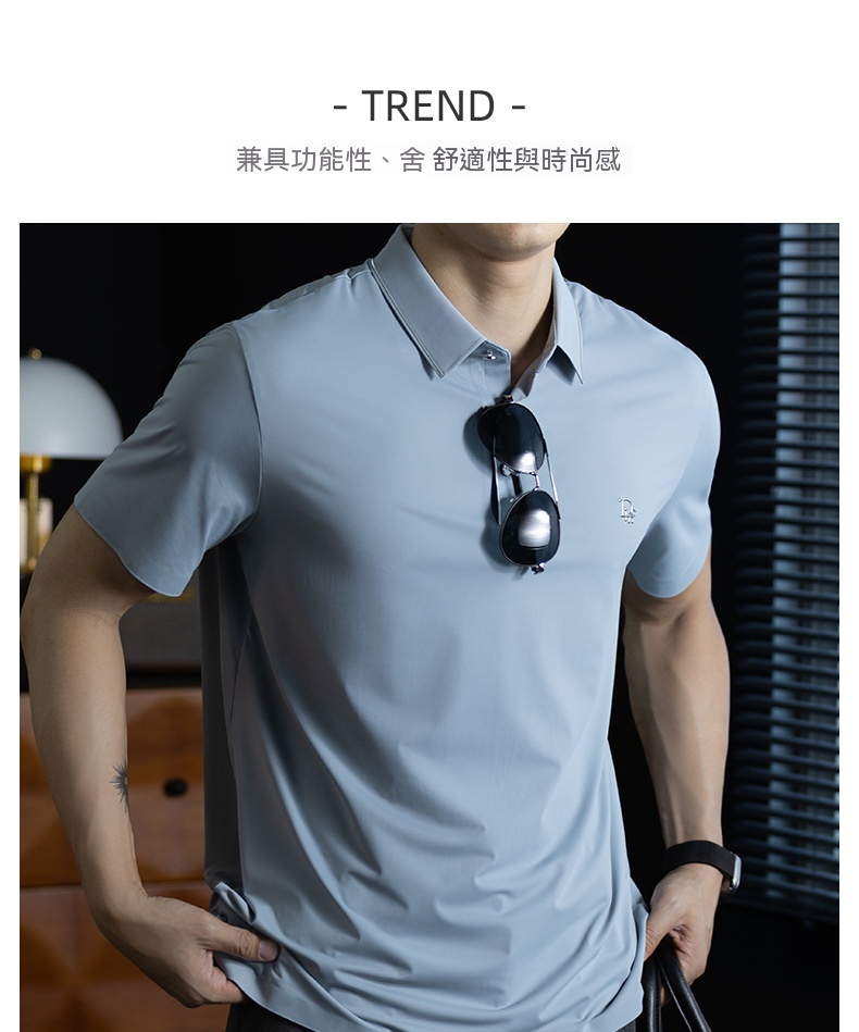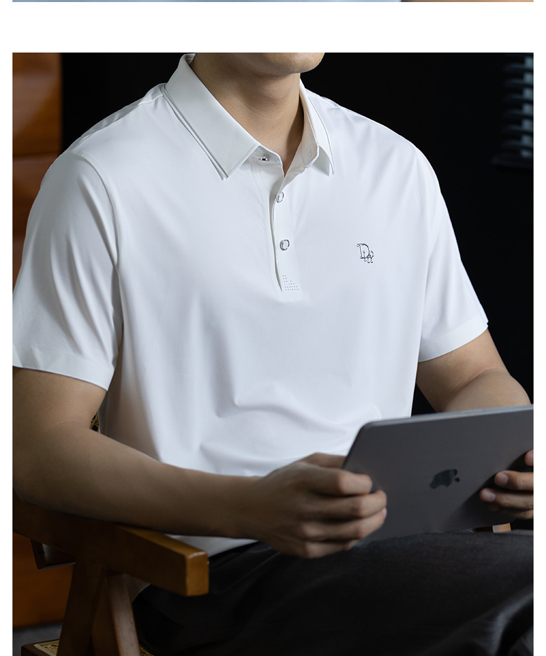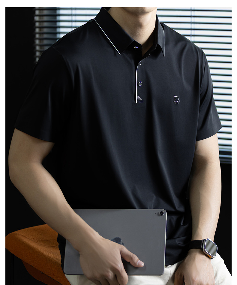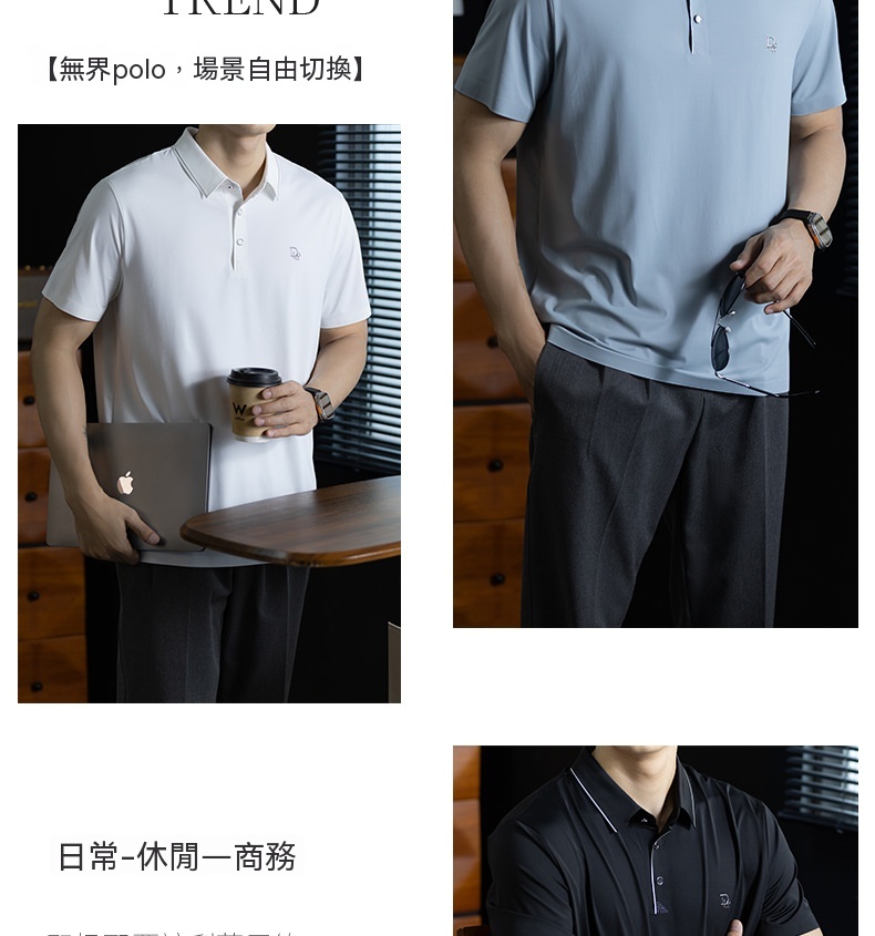 「高定匠心」涼感透氣氨棉男polo衫翻領商務鬆弛百搭純色半袖t桖