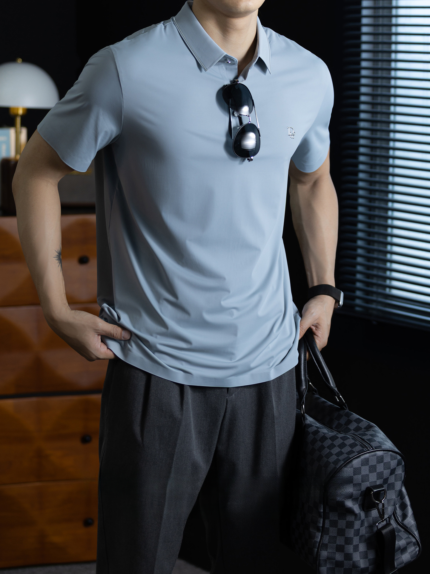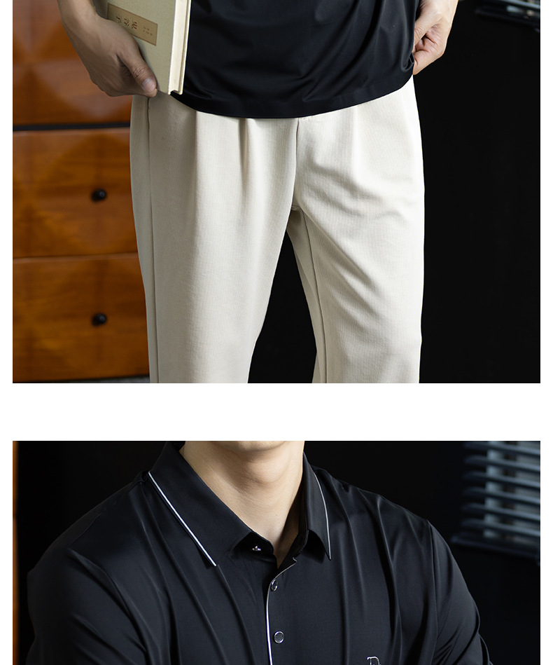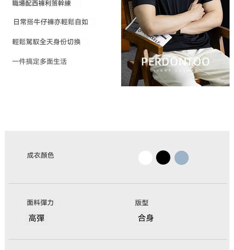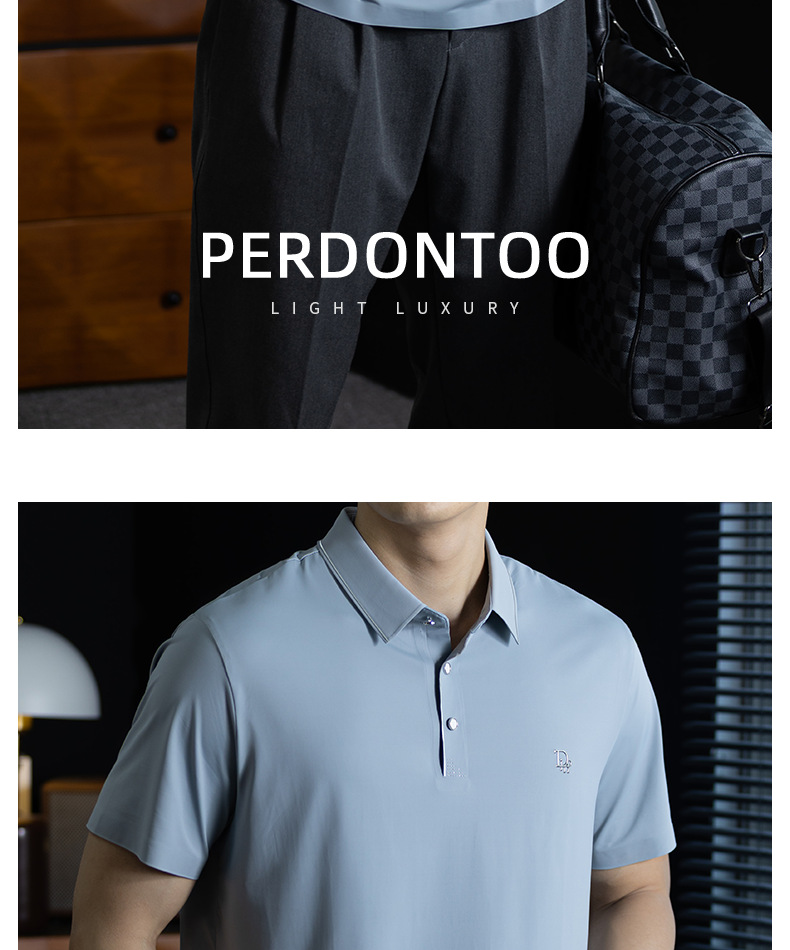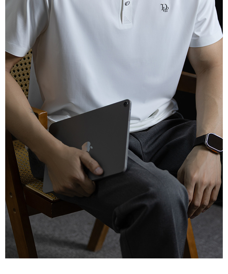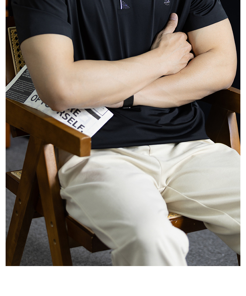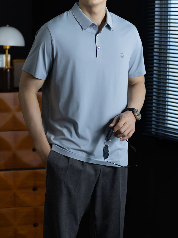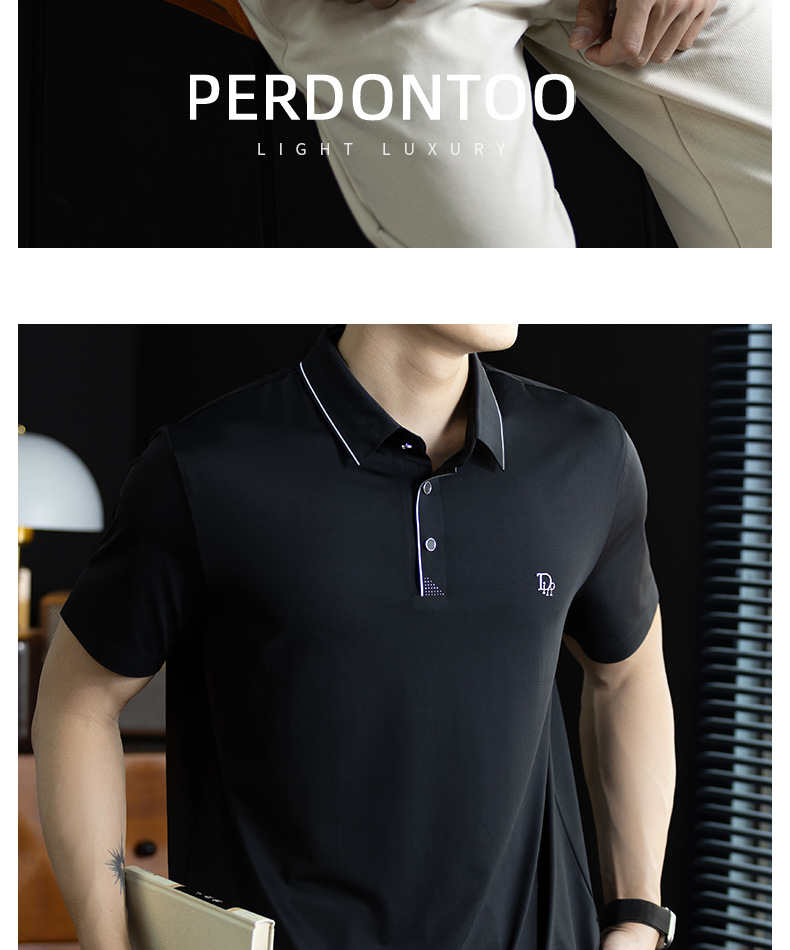 「高定匠心」涼感透氣氨棉男polo衫翻領商務鬆弛百搭純色半袖t桖