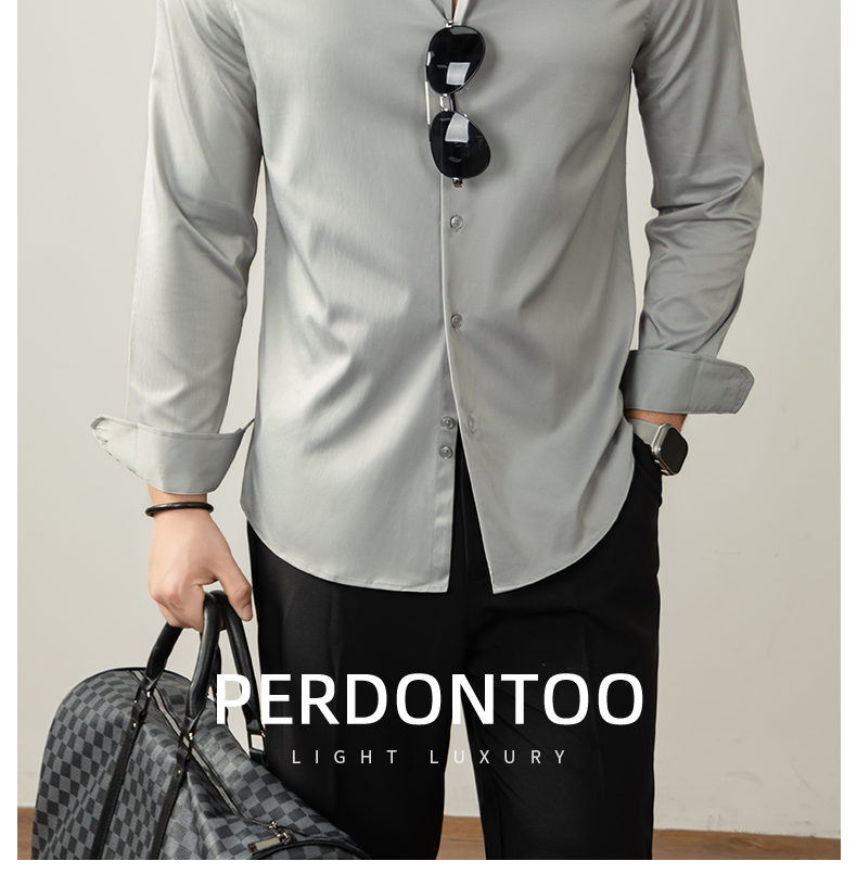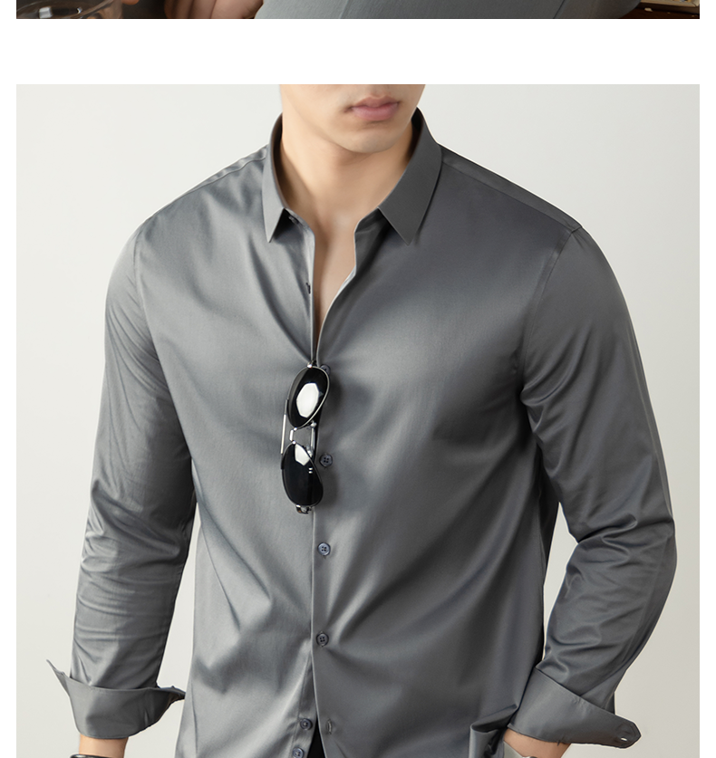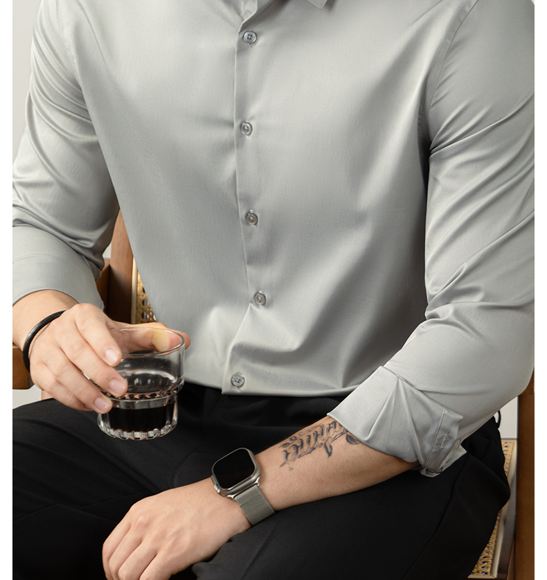 【免燙易打理】80S雙絲光襯衫男長袖商務正裝春秋高級感結婚襯衣