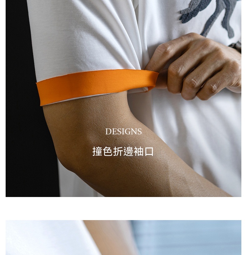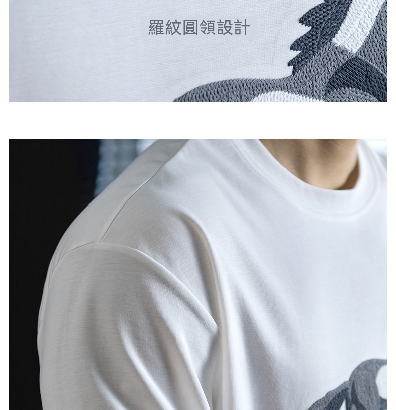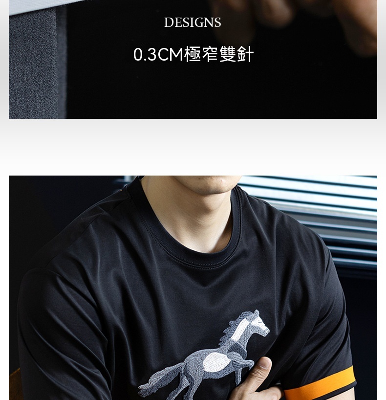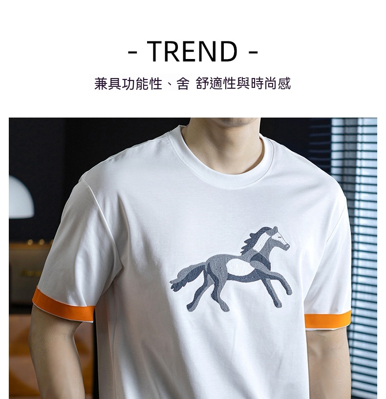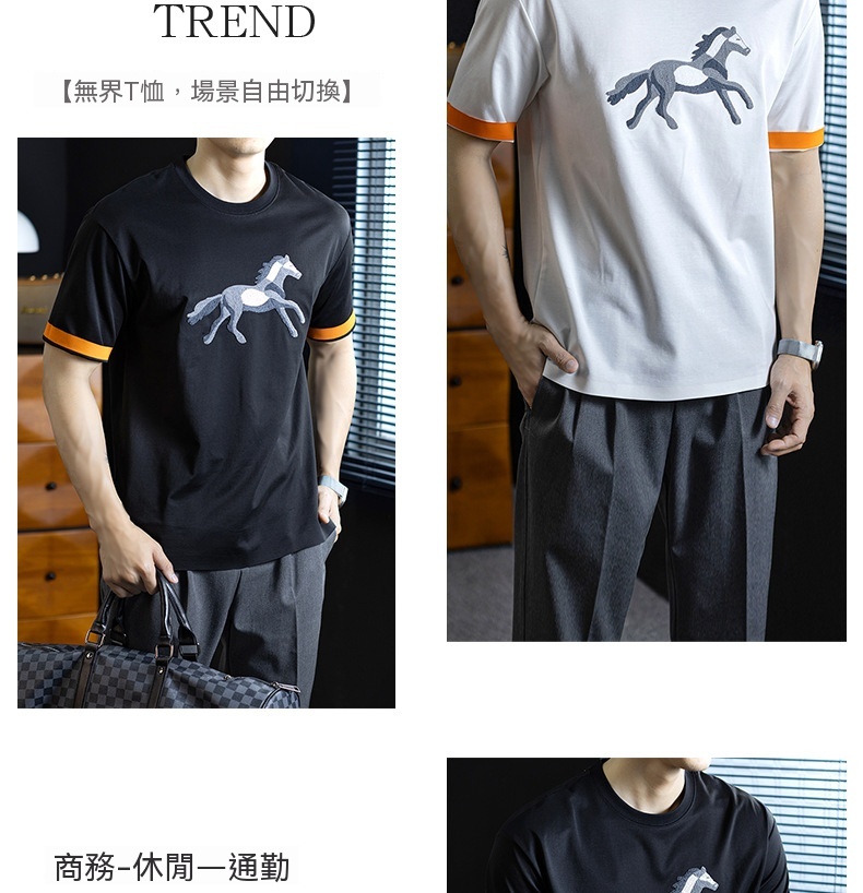 【奔馬貼布繡】冰絲親膚棉撞色短袖T恤男士時尚涼感舒適夏季半袖