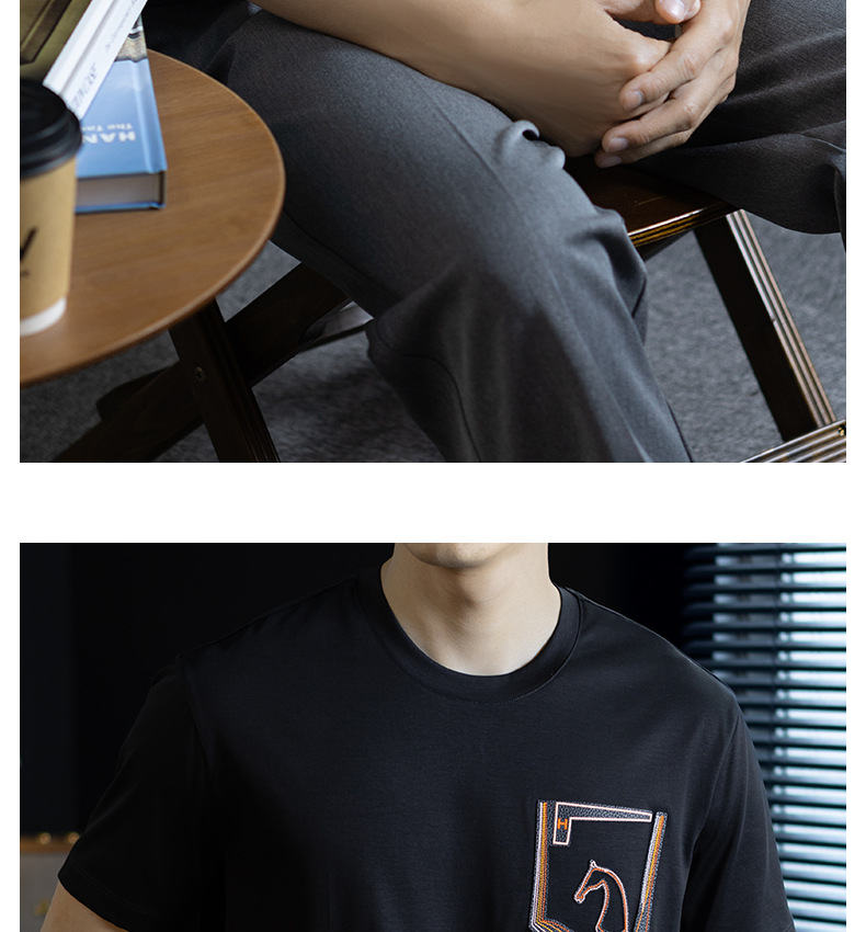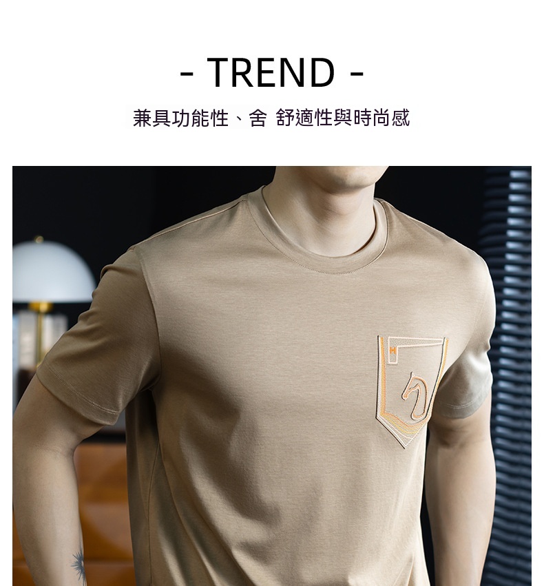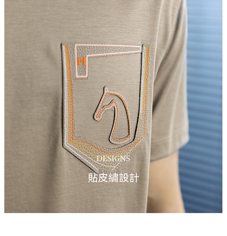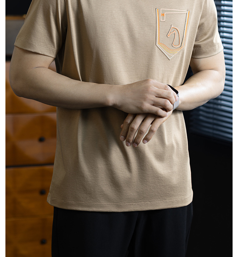 【小馬貼皮刺繡】高奢蠶絲萊賽爾短袖t恤男夏季輕薄透氣圓領體恤