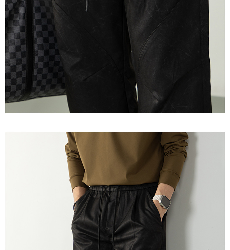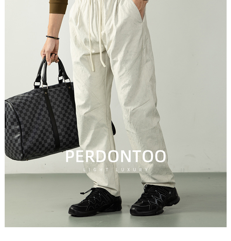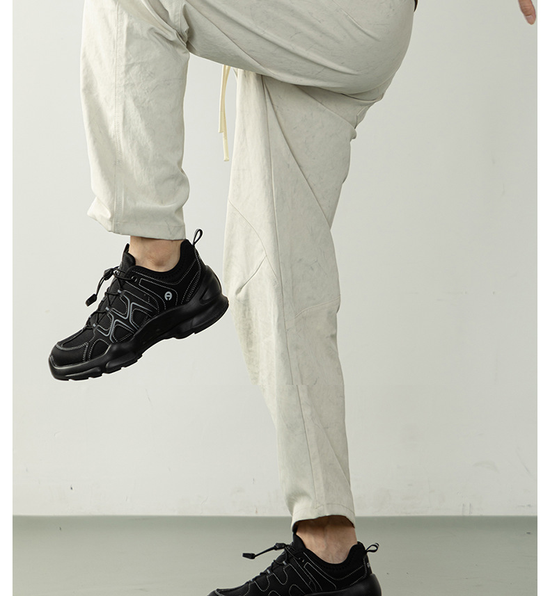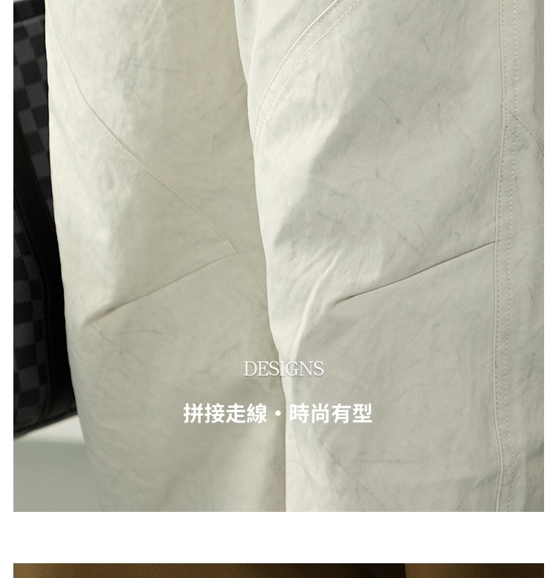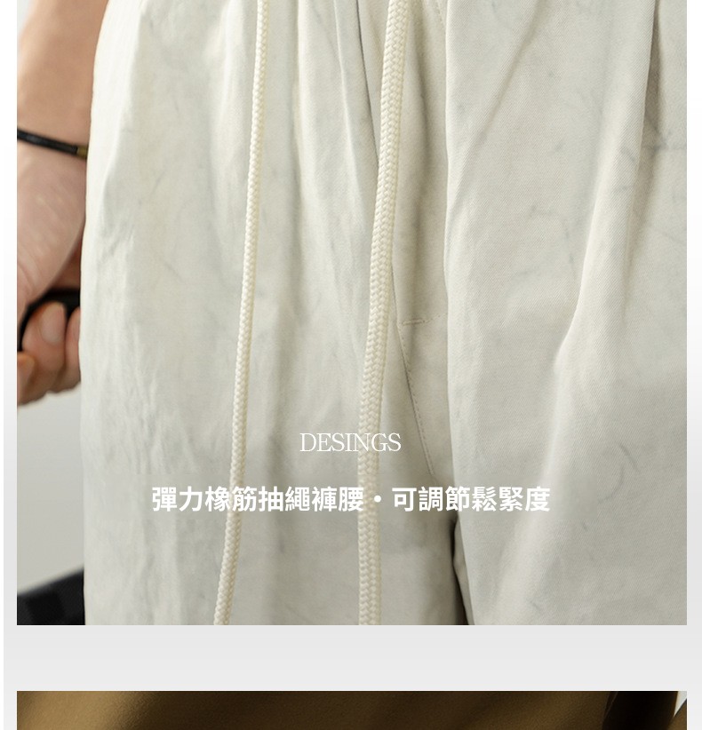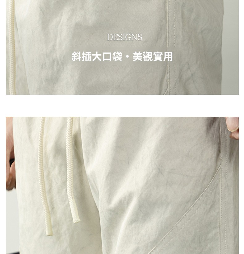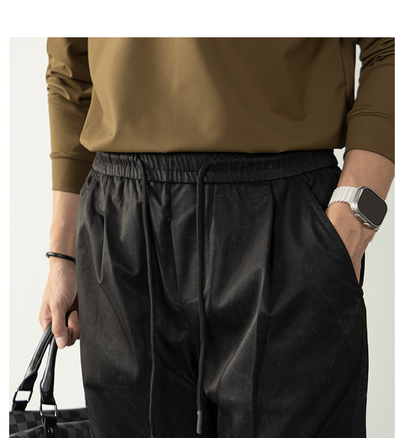 【復古奢感】扎染褶皺肌理微闊休閒長褲男士慵懶風拼接彎刀鬆緊褲