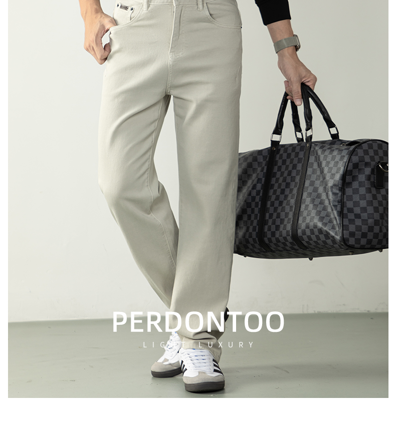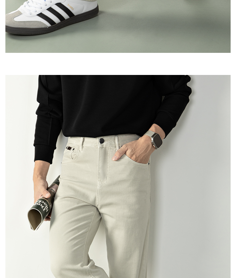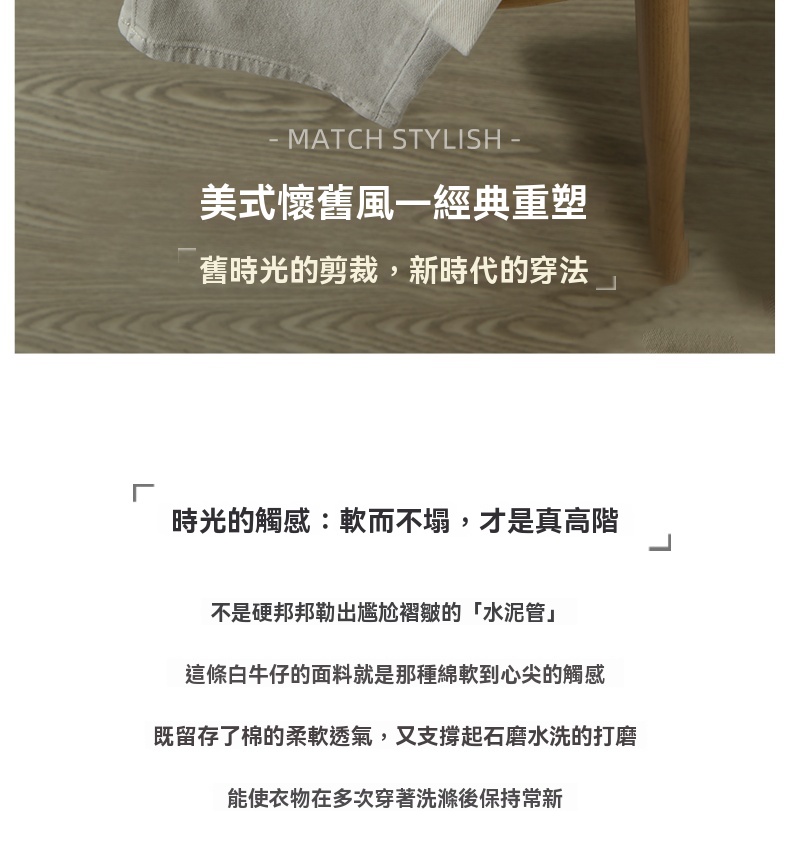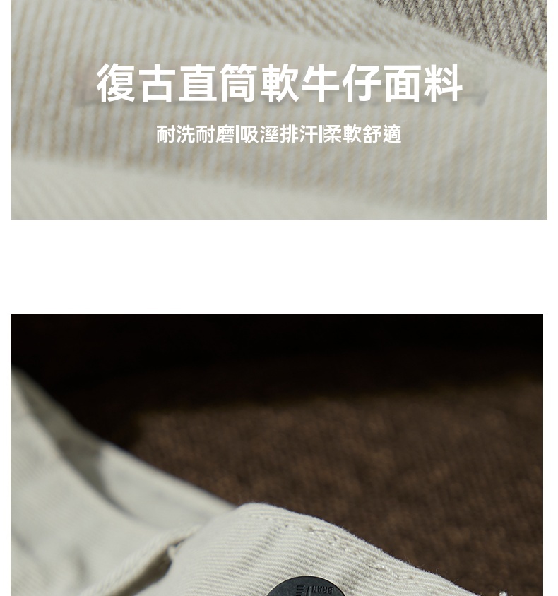 【復古懷舊】白色水洗牛仔褲男微闊長褲2025秋冬休閒褲柔軟高級感