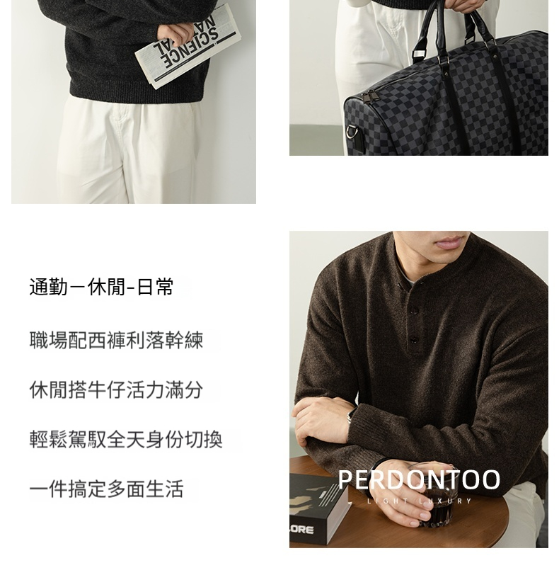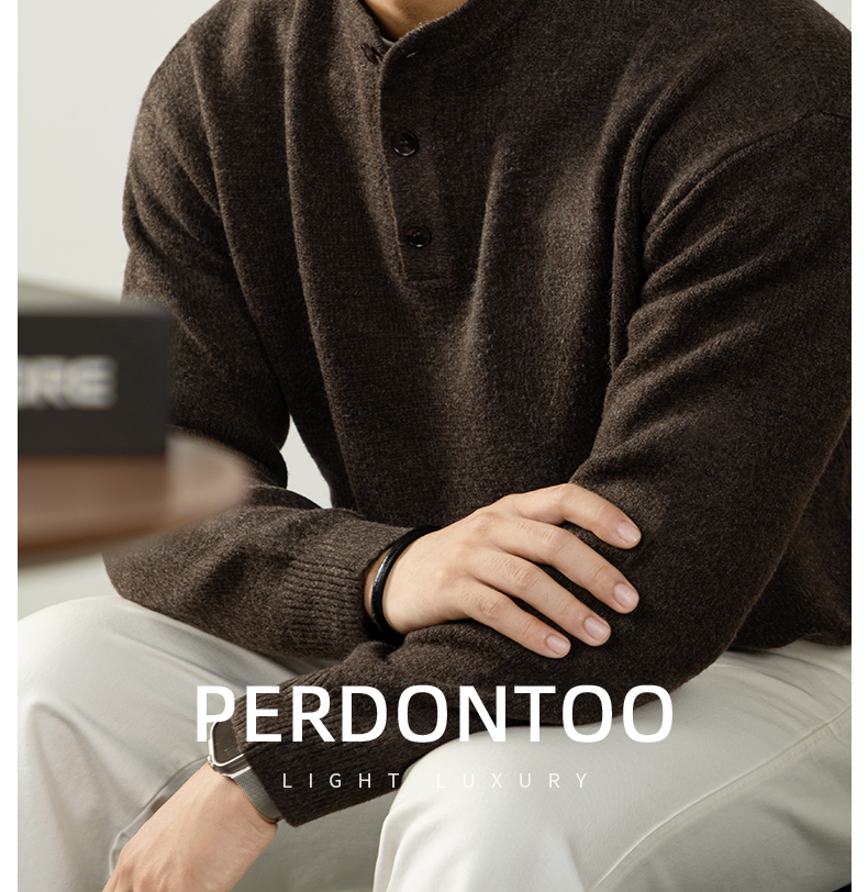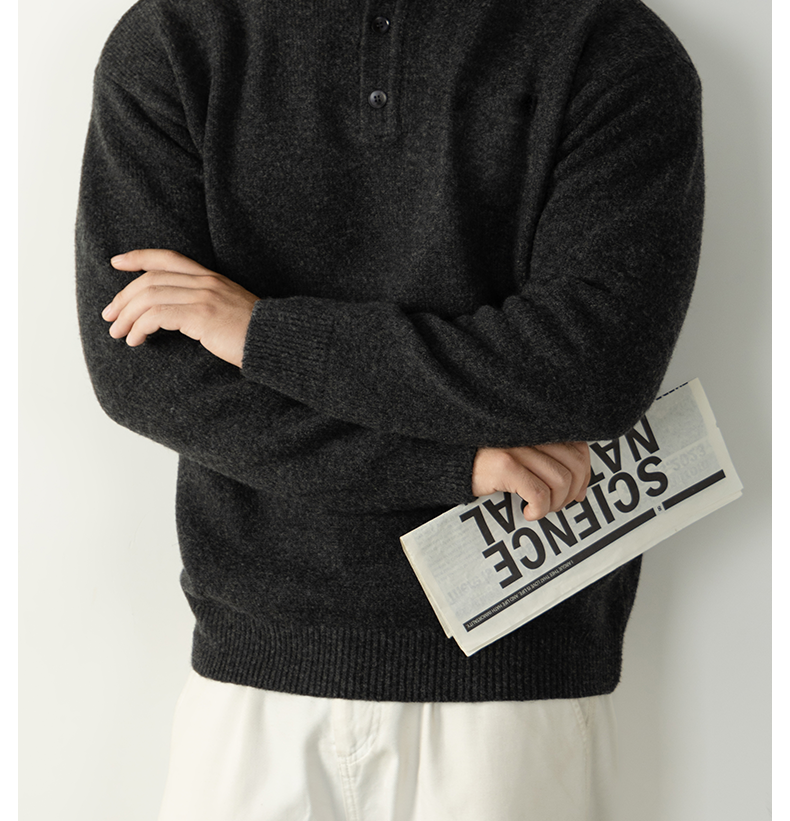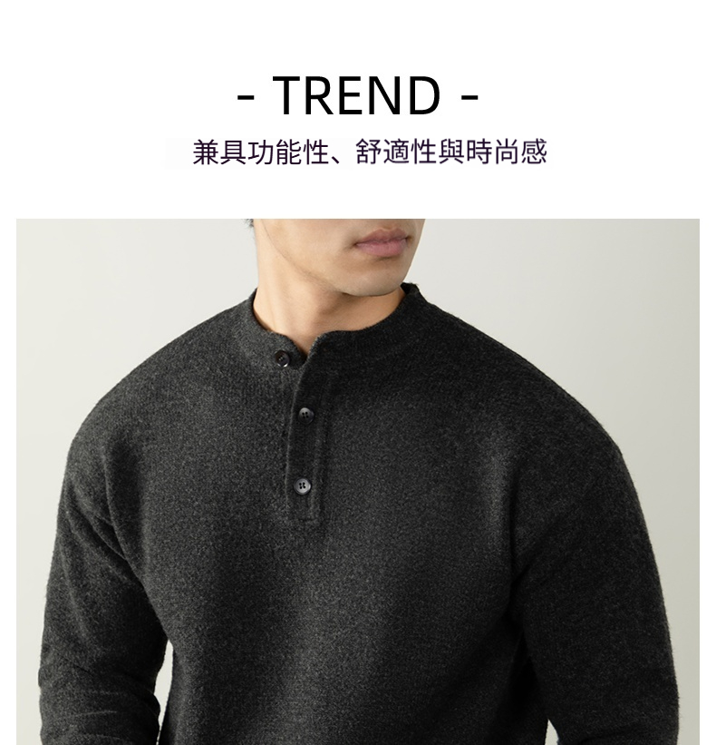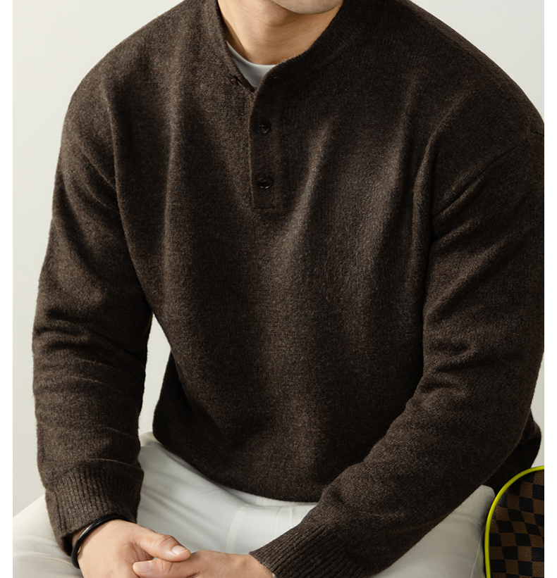 【慵懶隨性】亨利領寬鬆高級感毛衣男秋冬季厚款針織衫復古紳士風