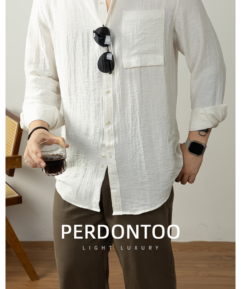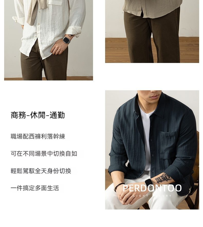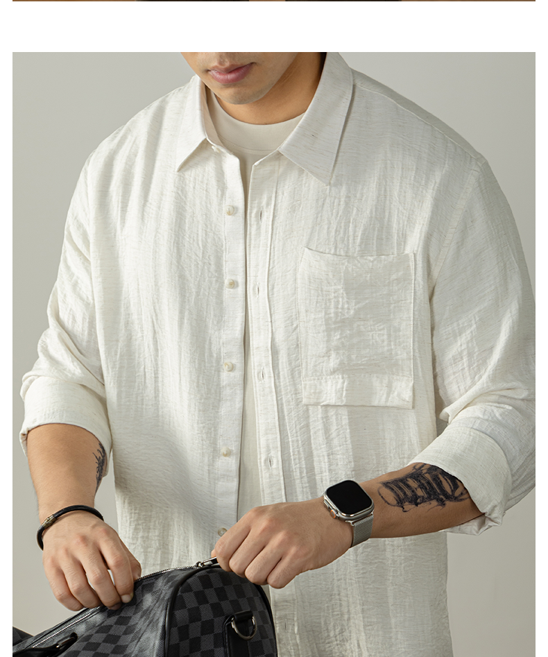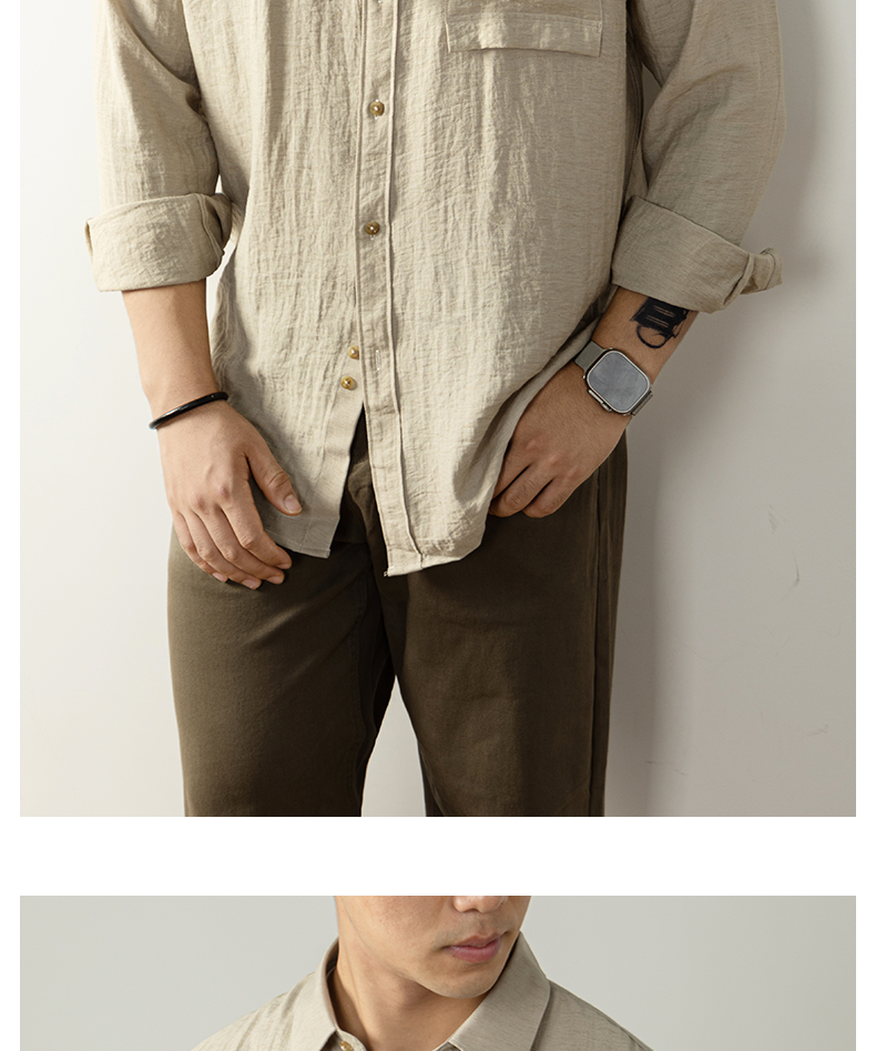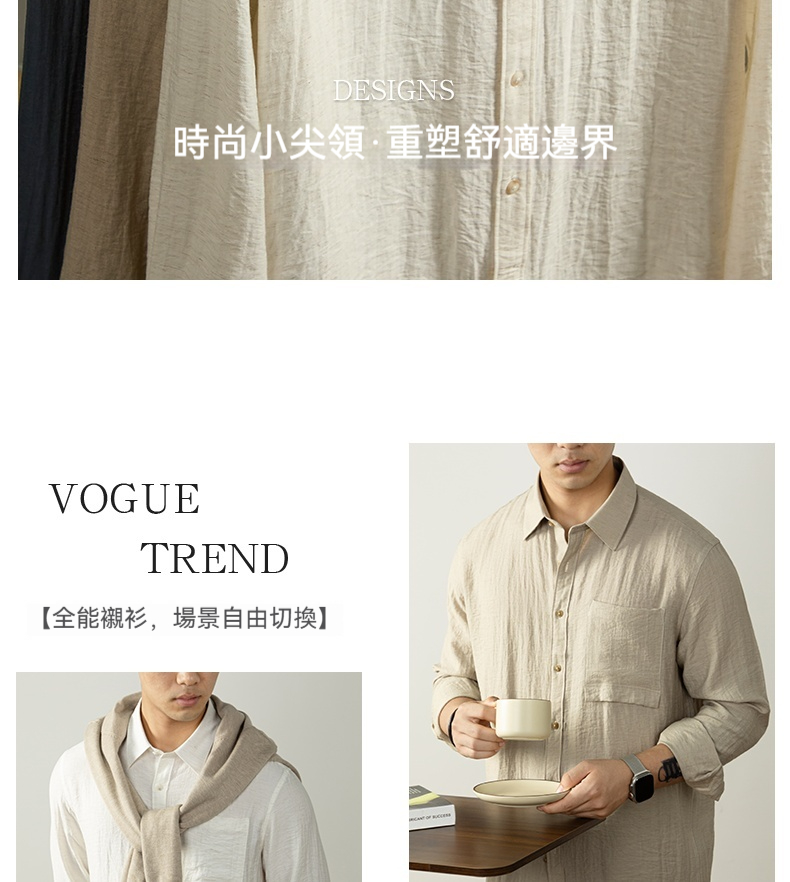 【慵懶高級感】亞麻天然褶皺襯衫男親膚透氣抑菌秋冬開衫隨性易搭
