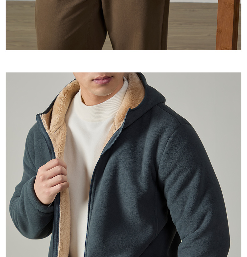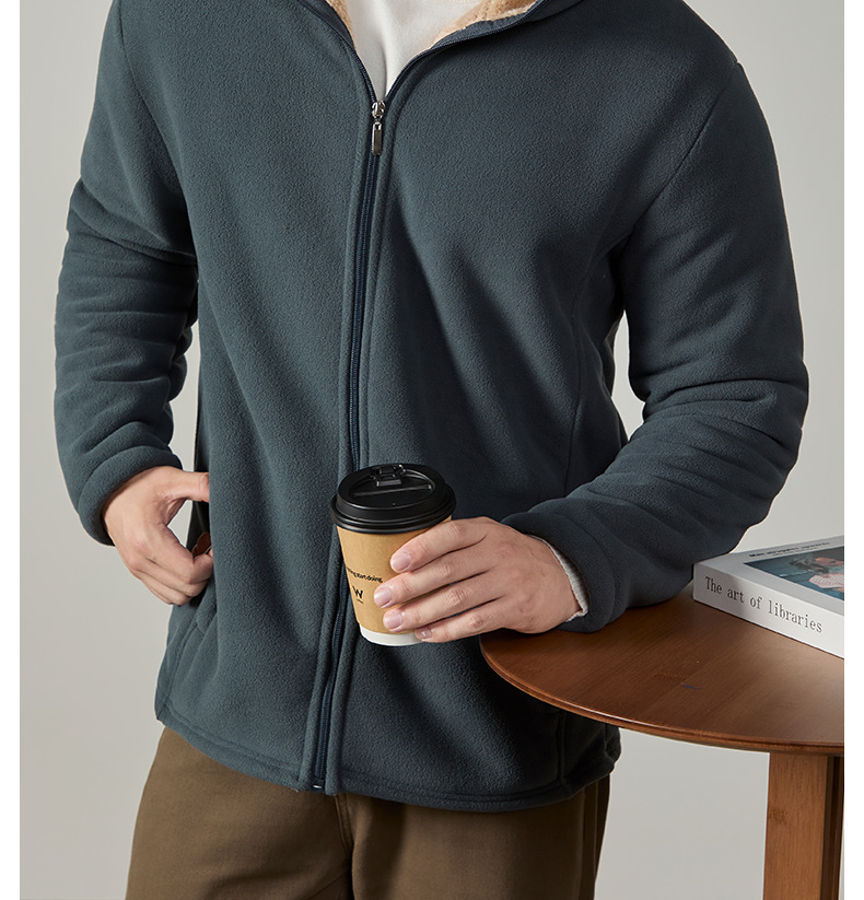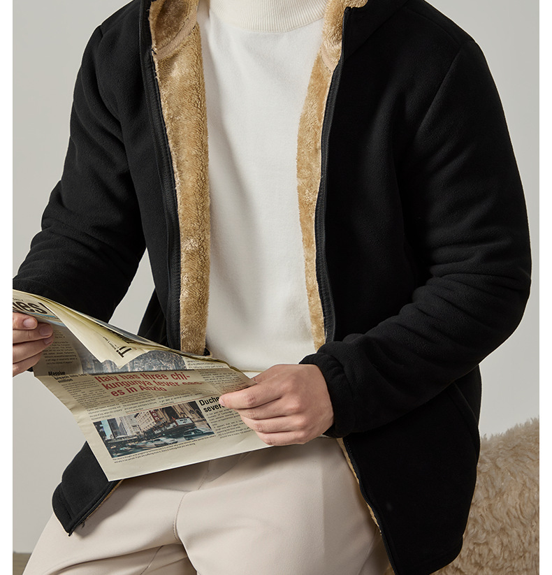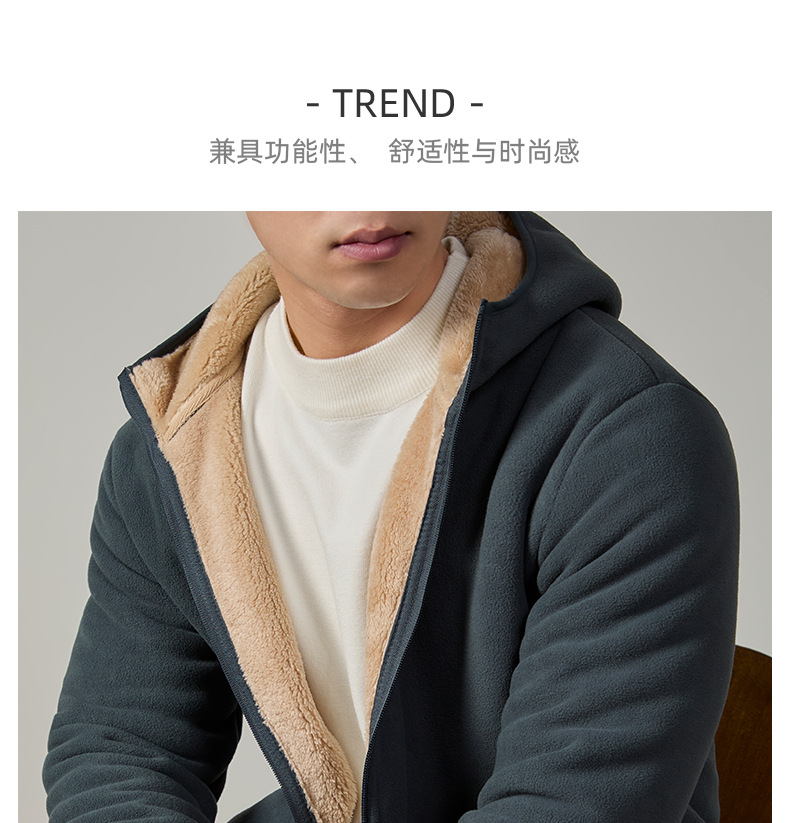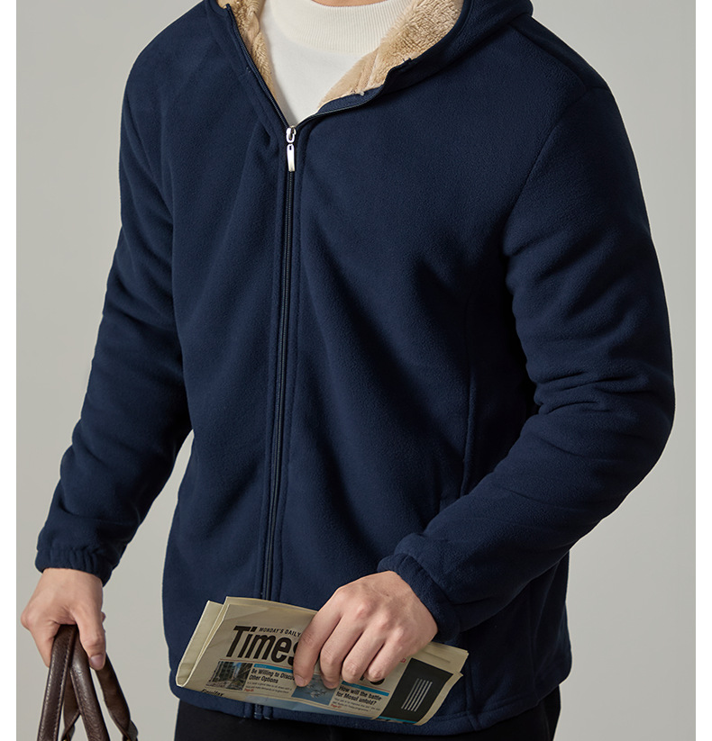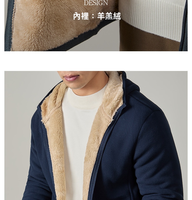 【搖粒絨&羊羔絨】雙面加絨加厚防風外套男士冬季保暖發熱連帽衫