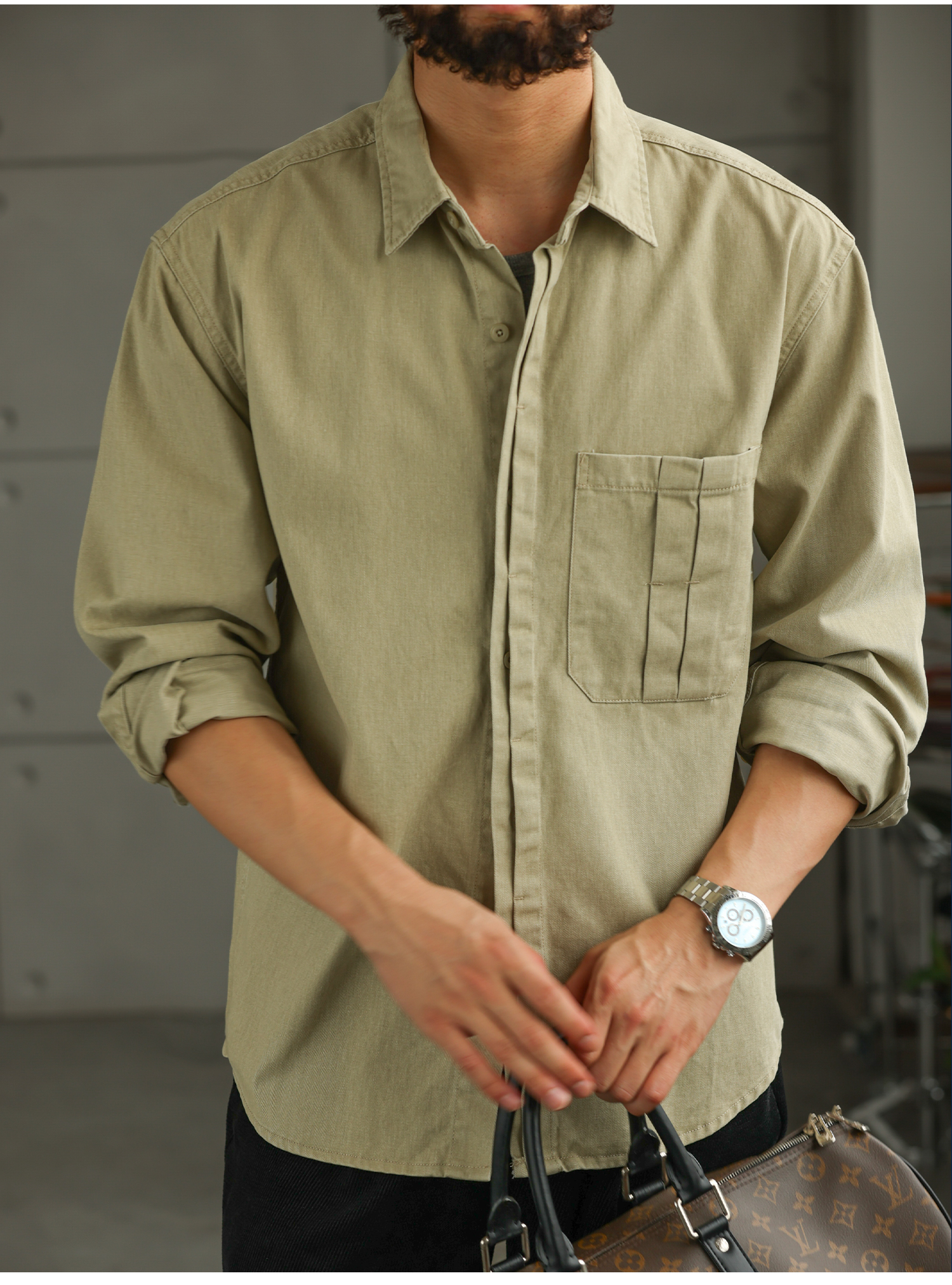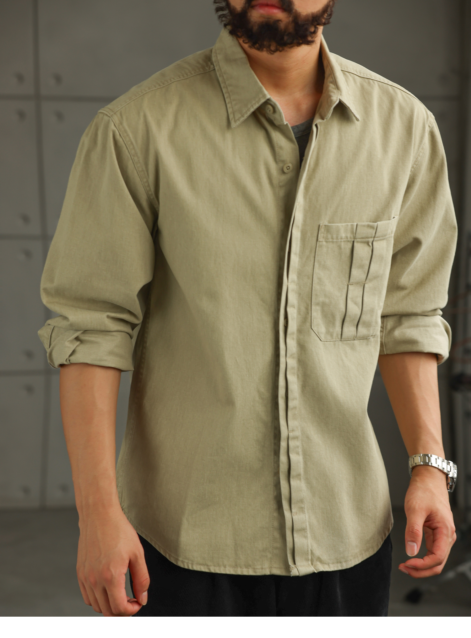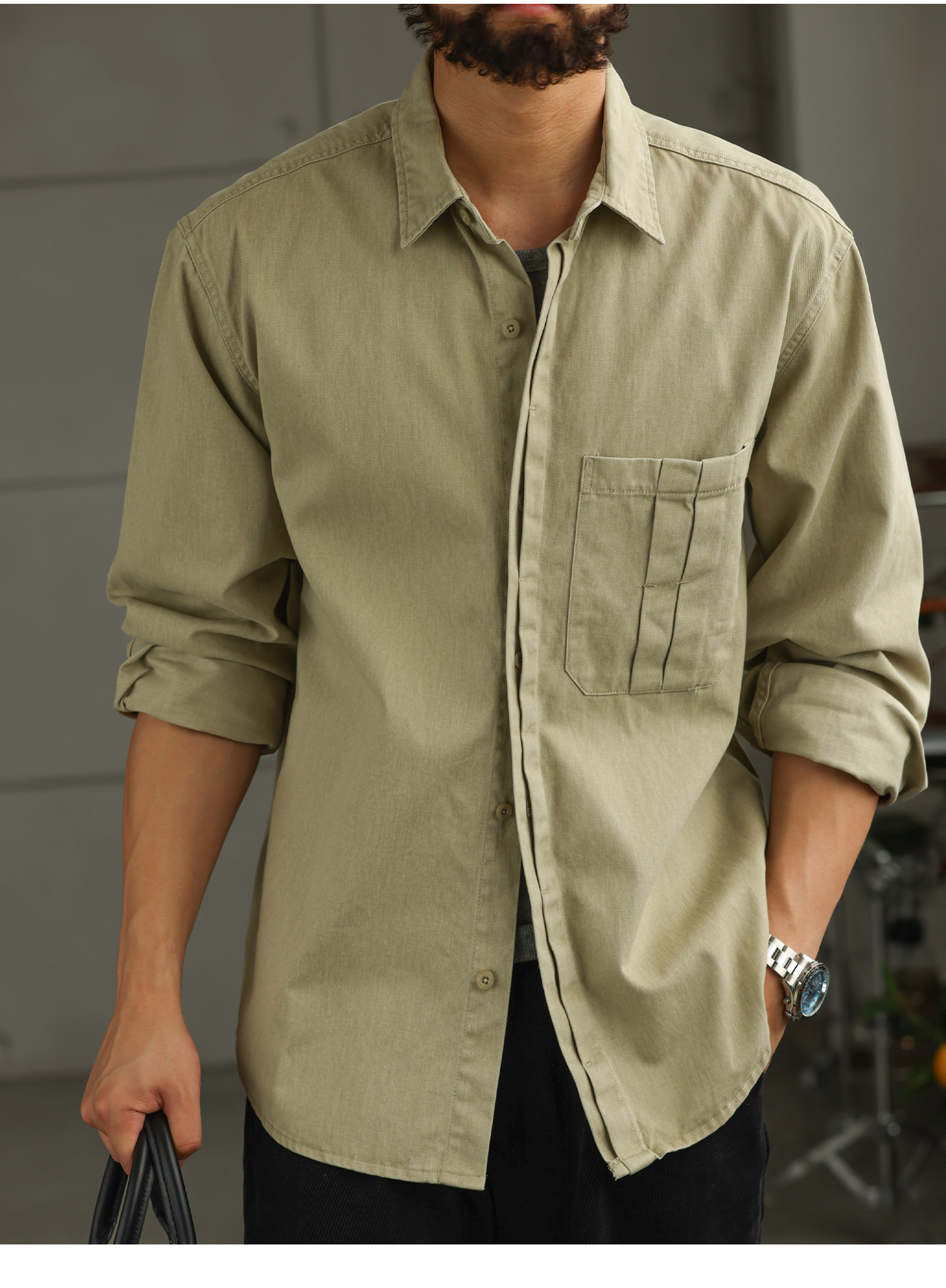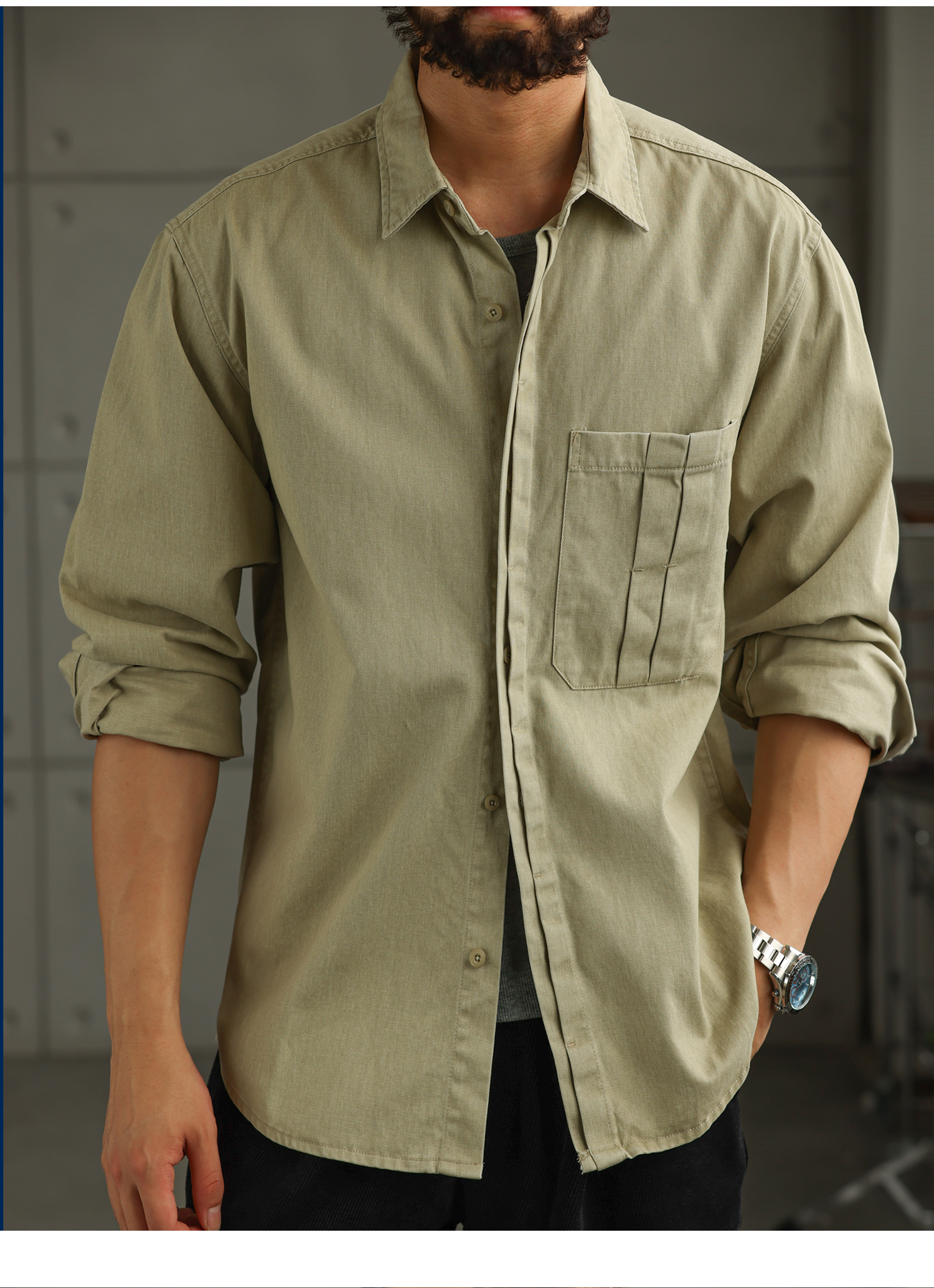 【智域回廊】美式纯棉工装衬衫男士长袖秋季休闲衬衣外套