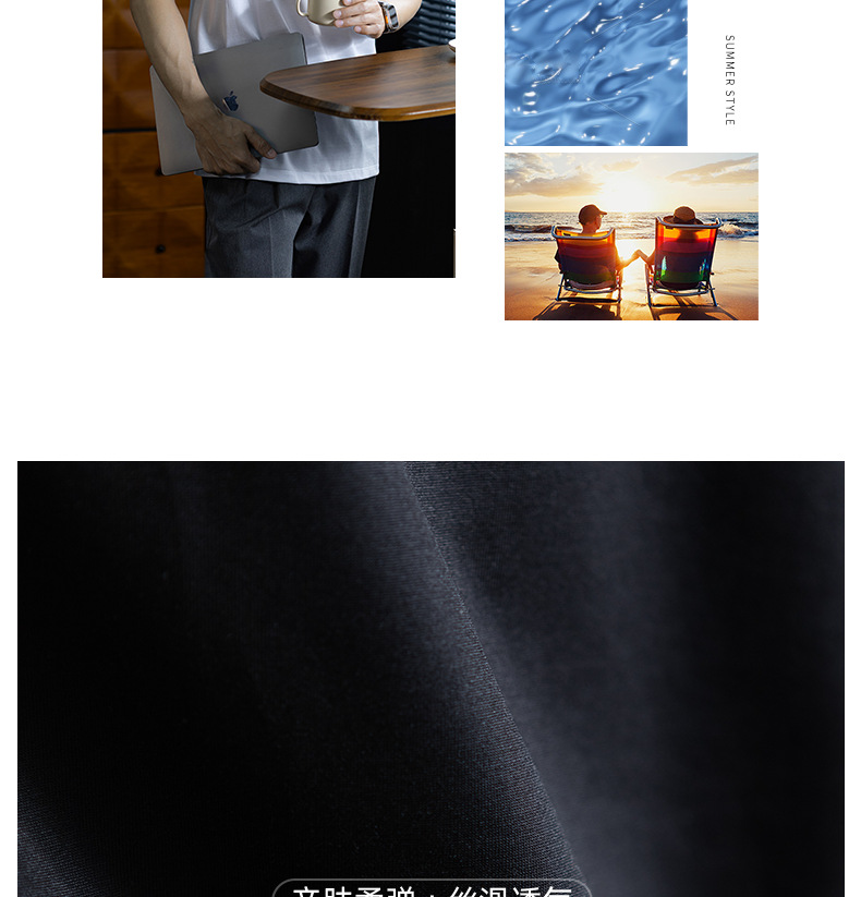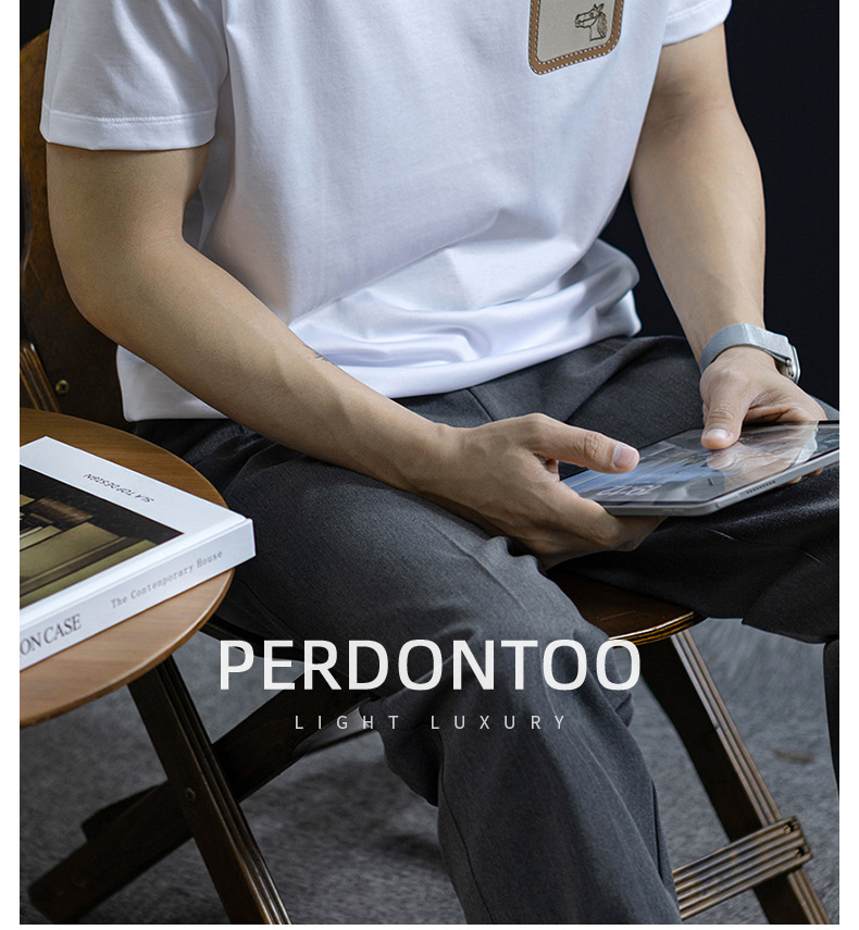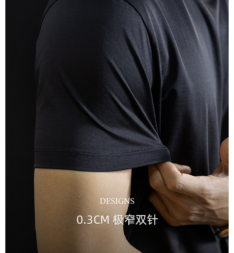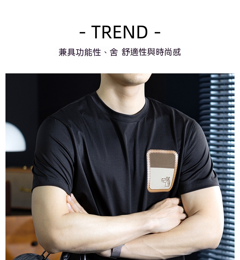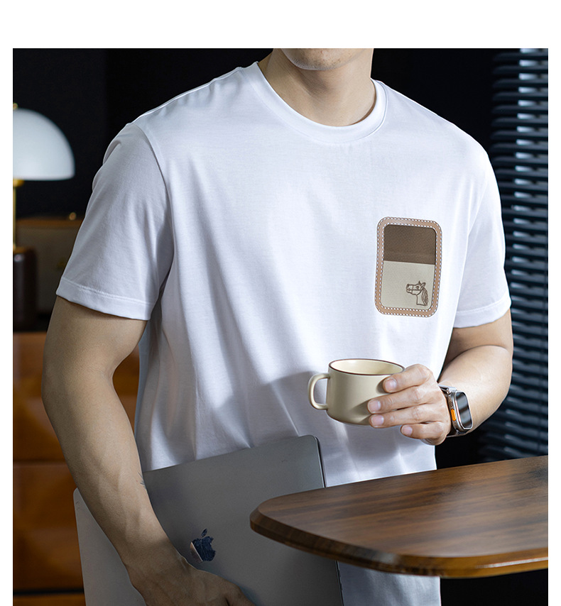 【桑蠶絲&長絨棉】馬頭燙花設計涼感短袖t桖男夏季輕薄透氣體恤衫