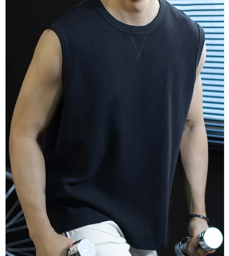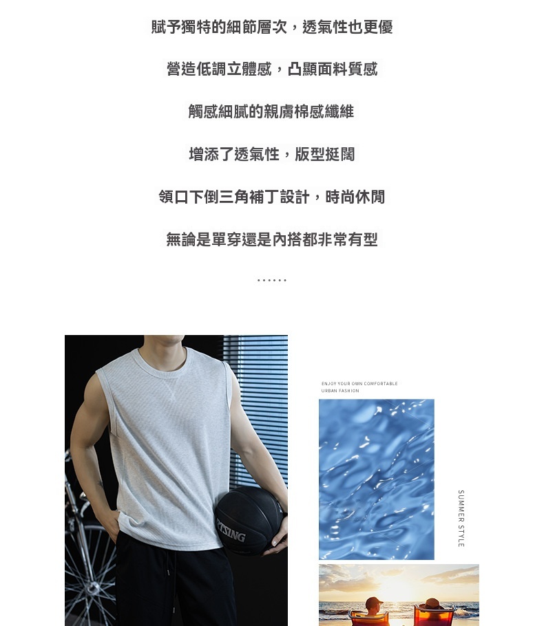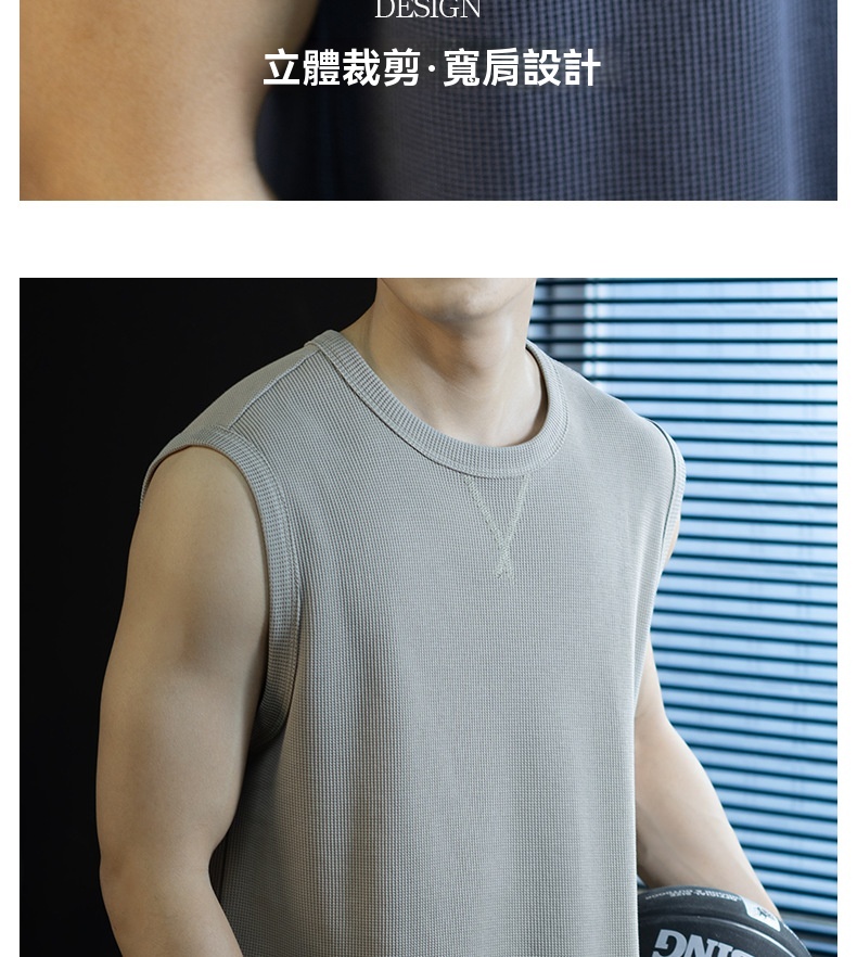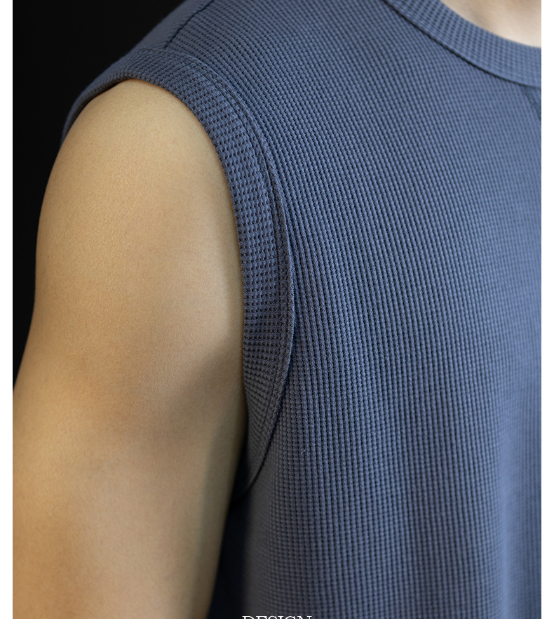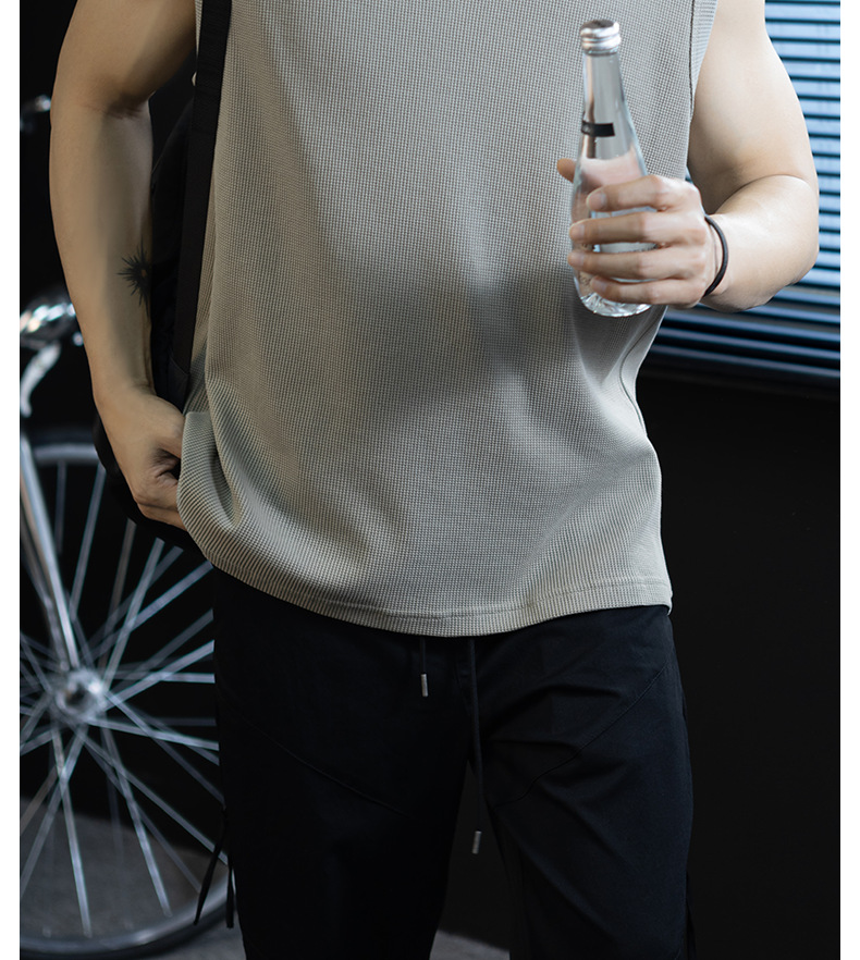 【極簡三角設計】240g華夫格肌理無袖背心男夏季舒適抗菌坎肩t桖
