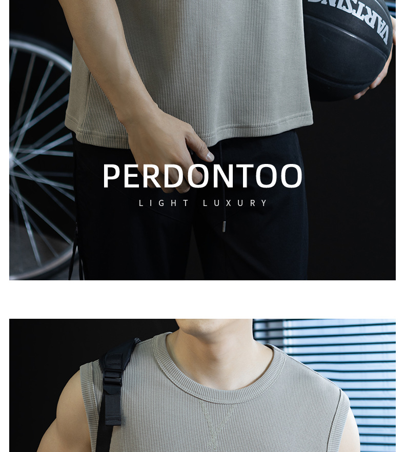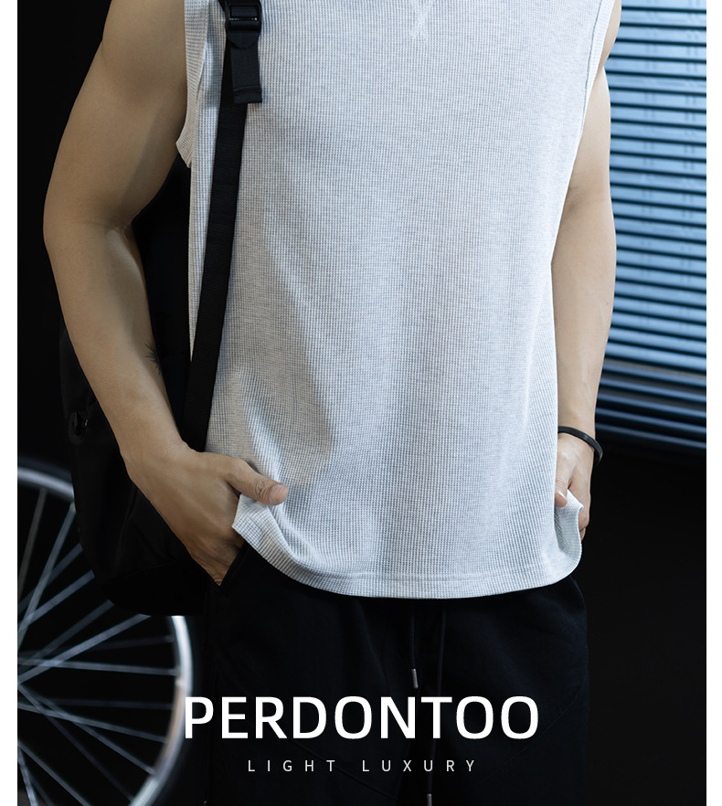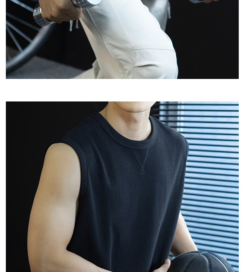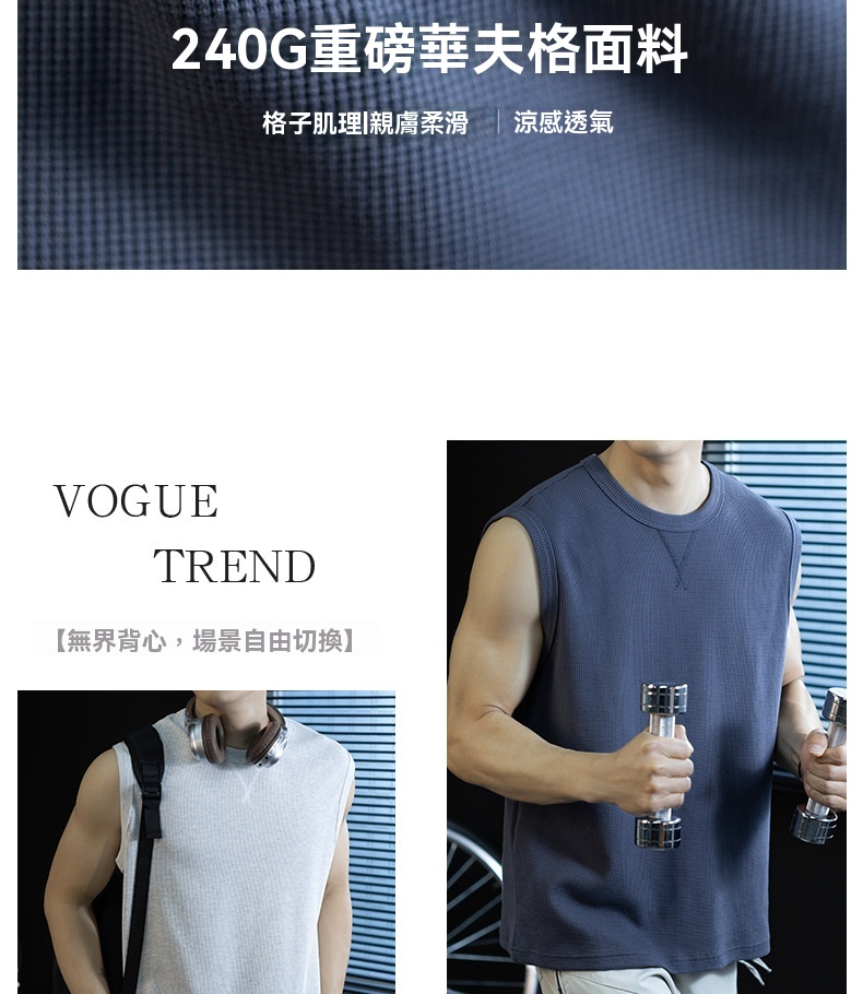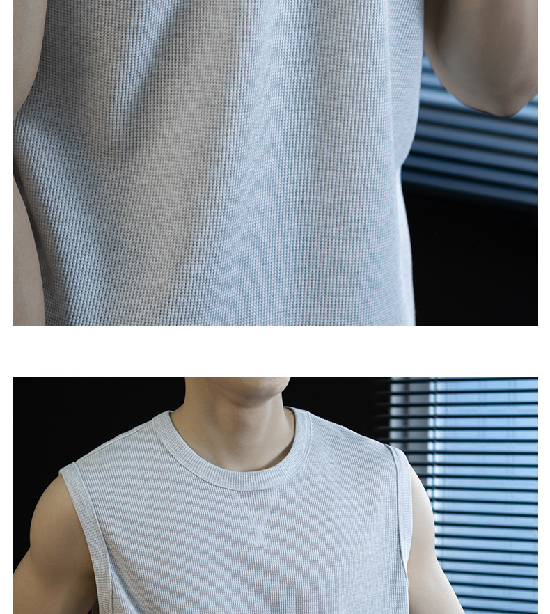【極簡三角設計】240g華夫格肌理無袖背心男夏季舒適抗菌坎肩t桖