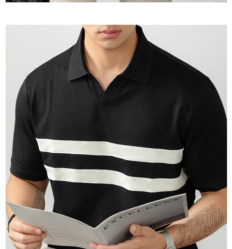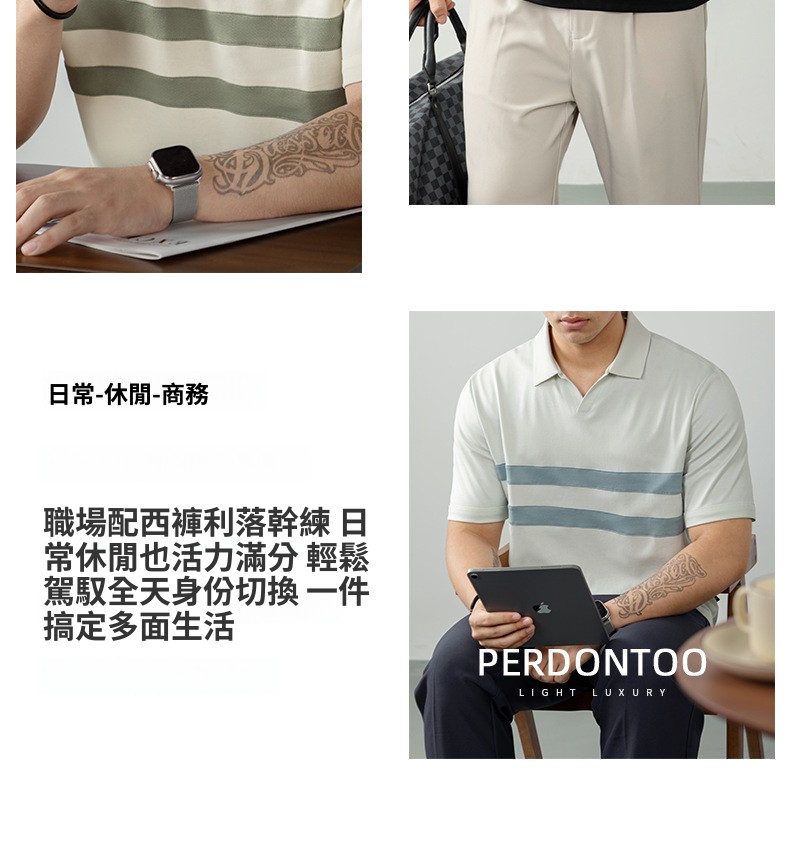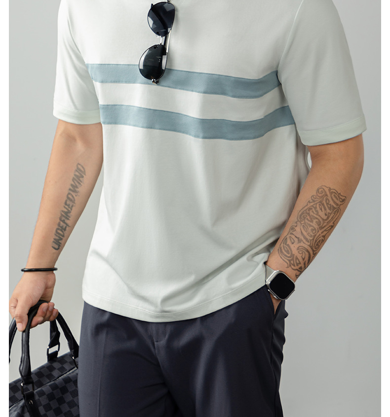 【涼感速幹】冰氧棉海鷗領POLO衫男士短袖高端條紋T恤商務休閒夏