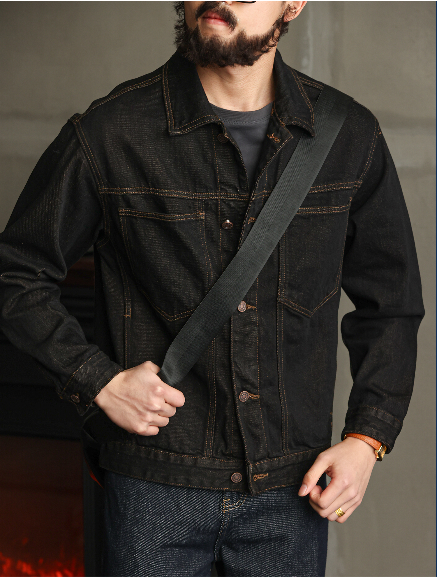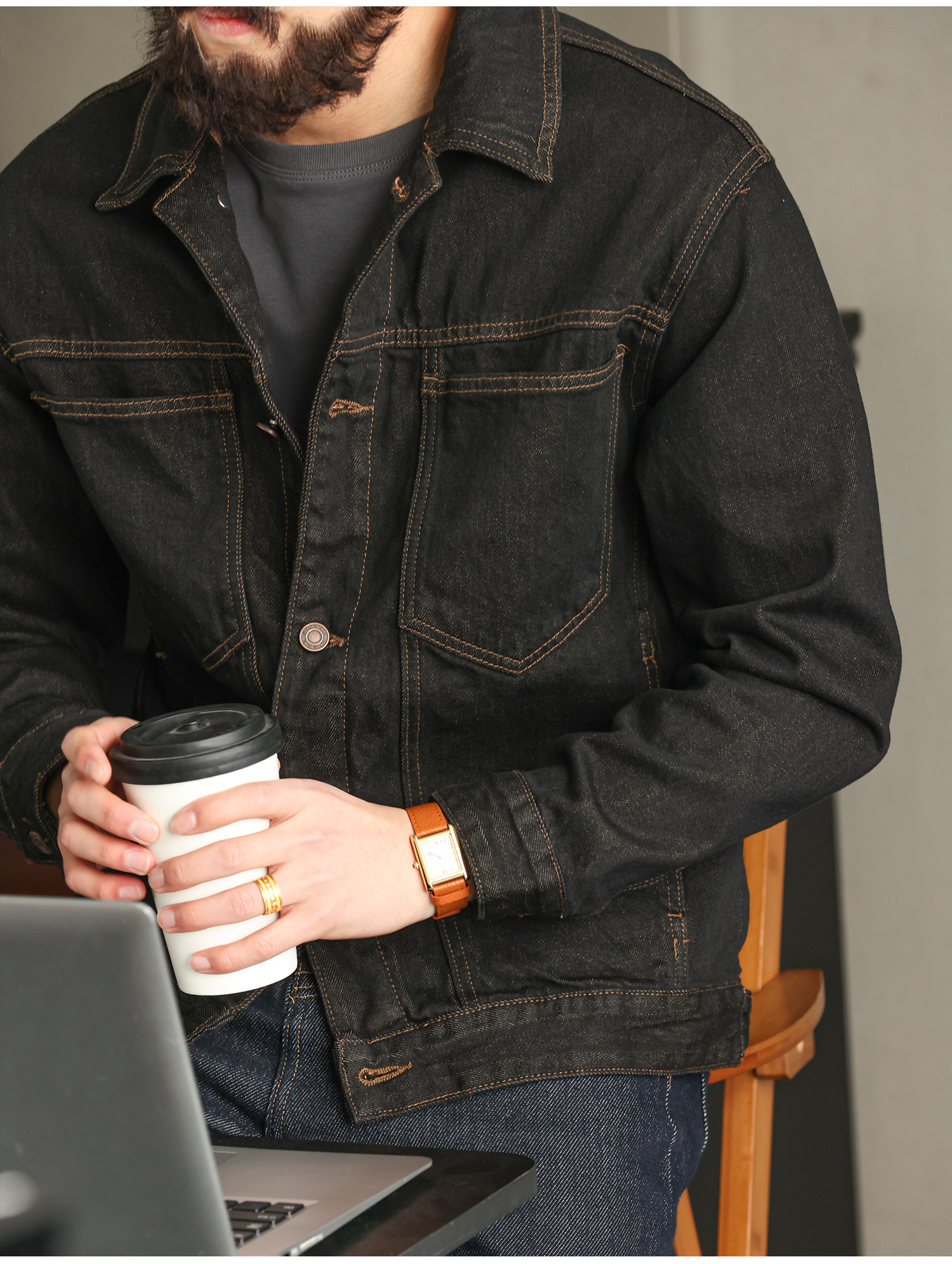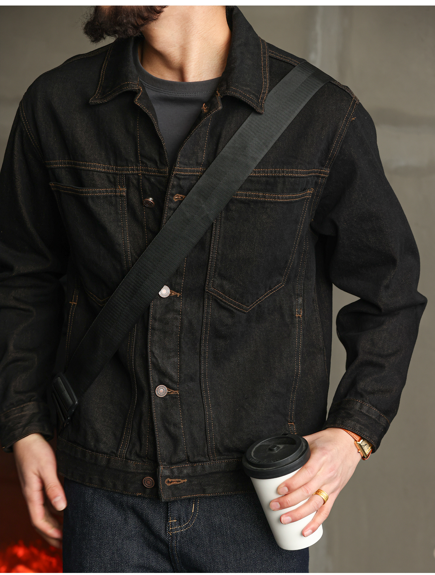 【紳士型格】純棉原牛色短款牛仔夾克男秋季高級簡約外套