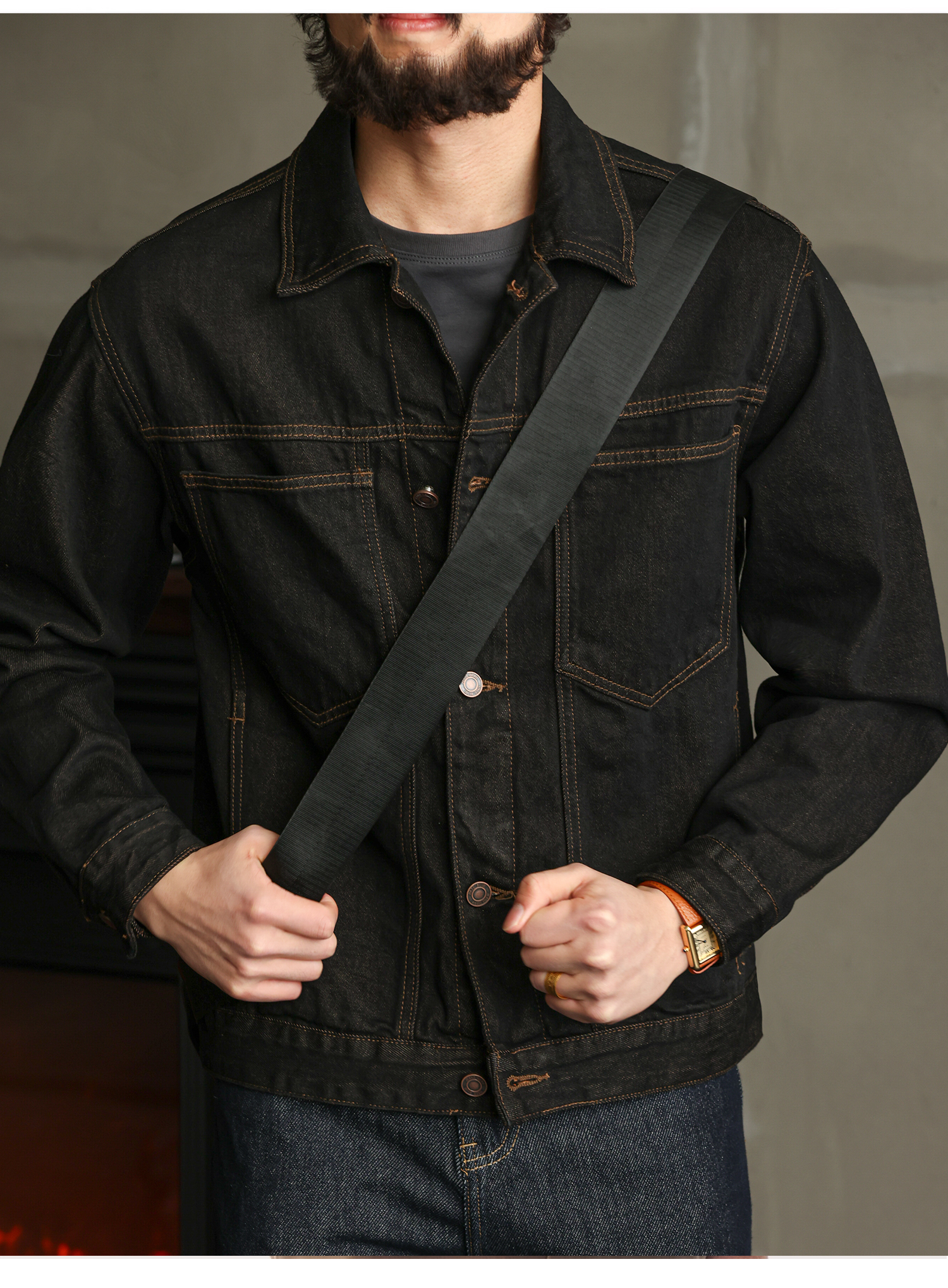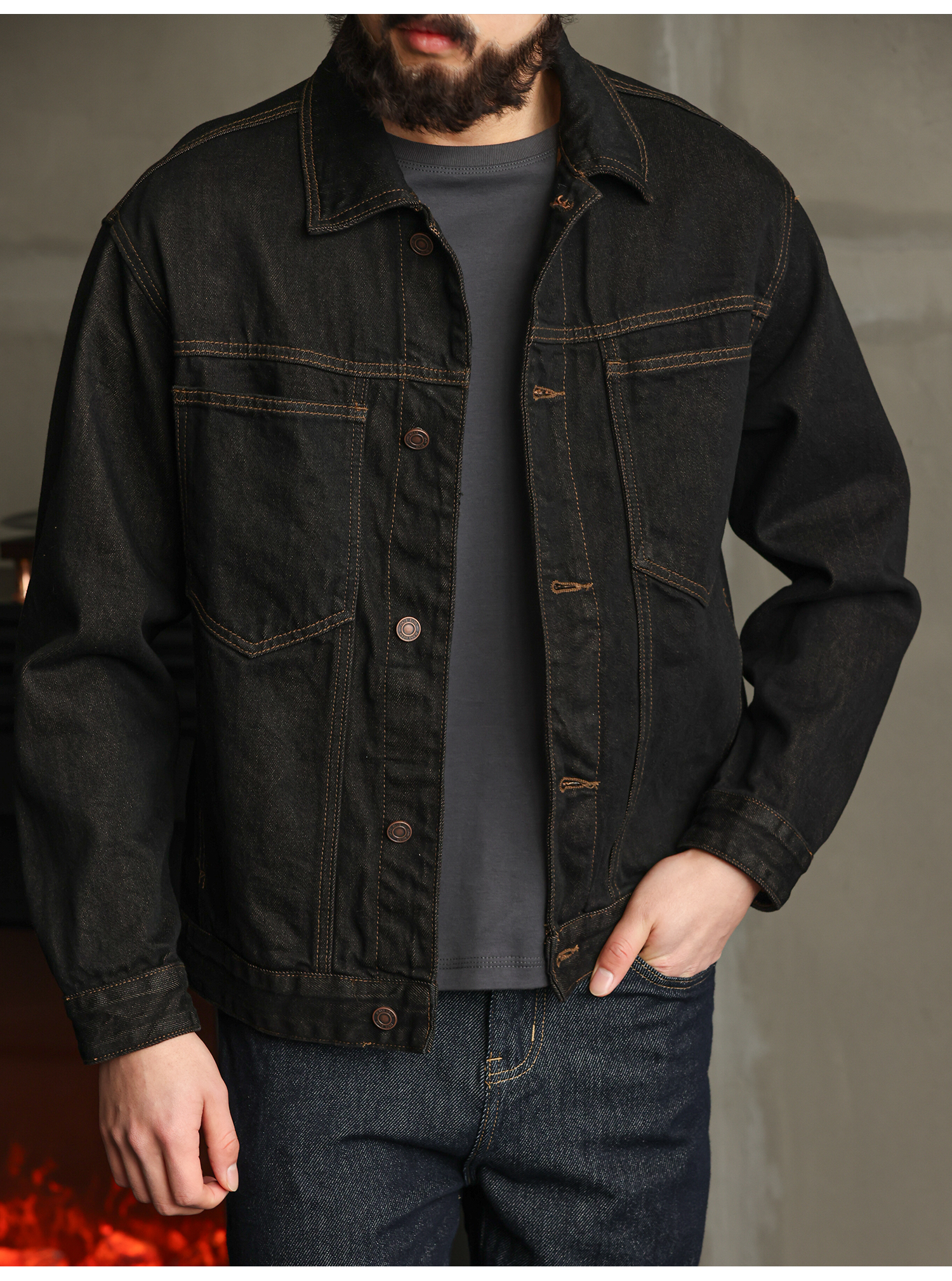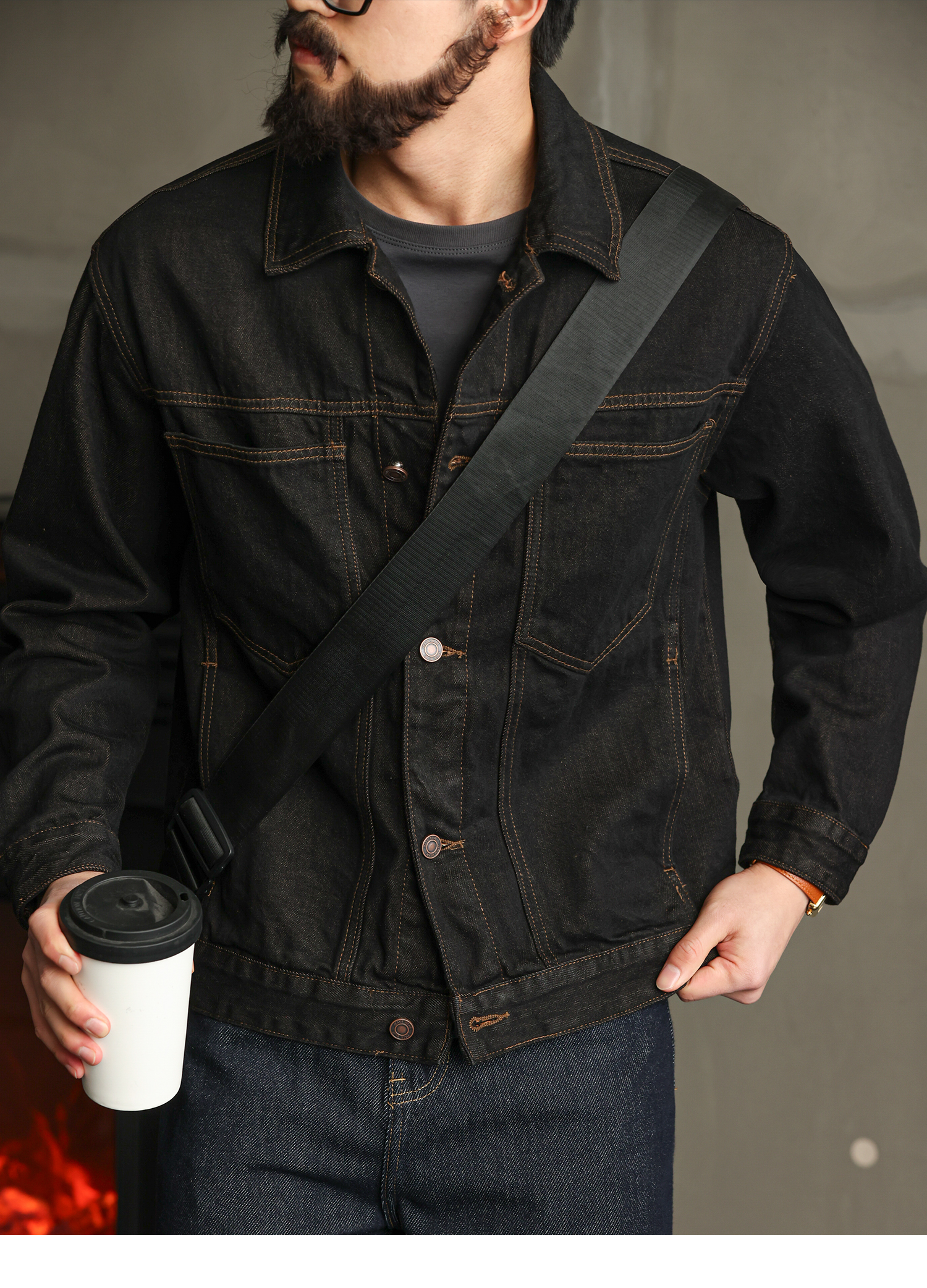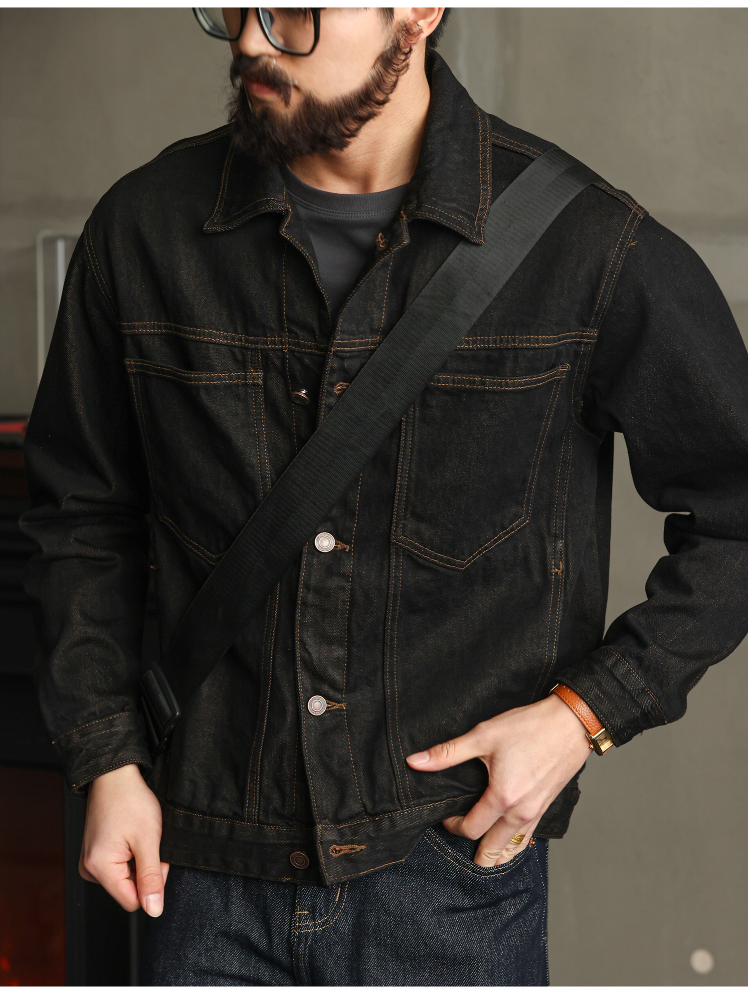 【紳士型格】純棉原牛色短款牛仔夾克男秋季高級簡約外套