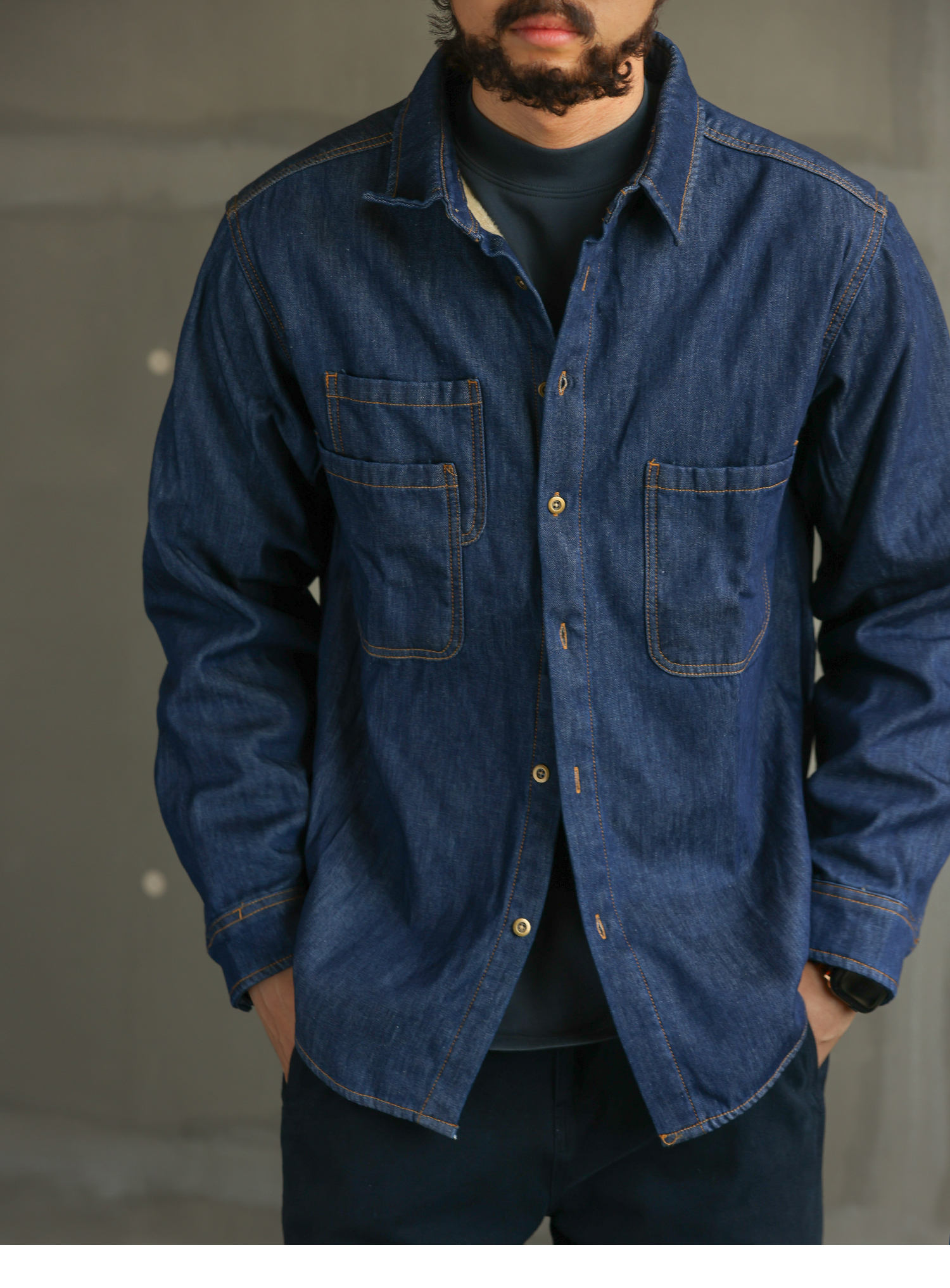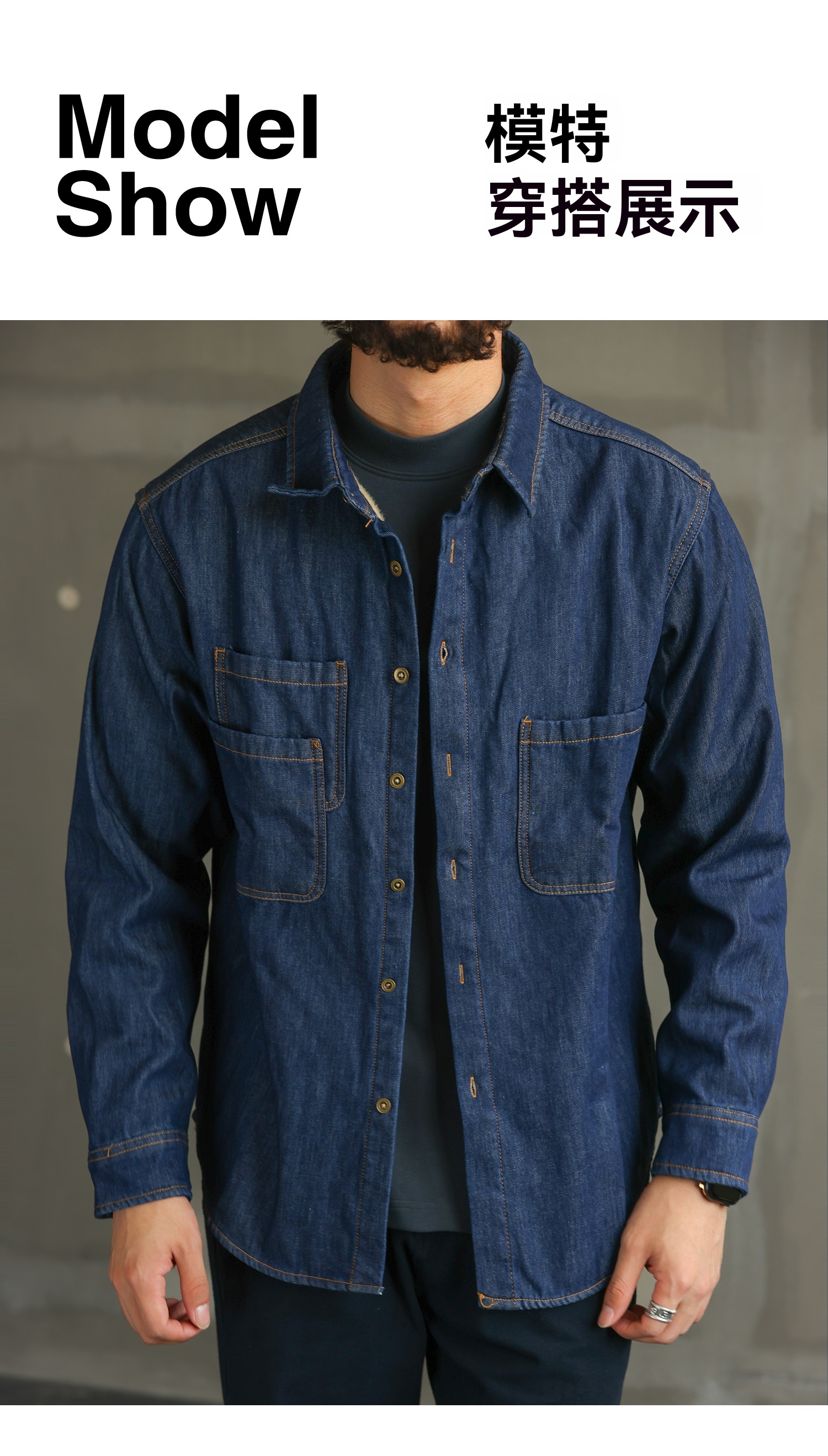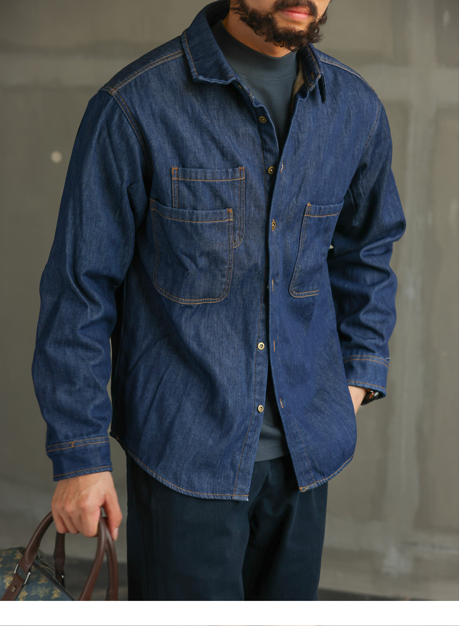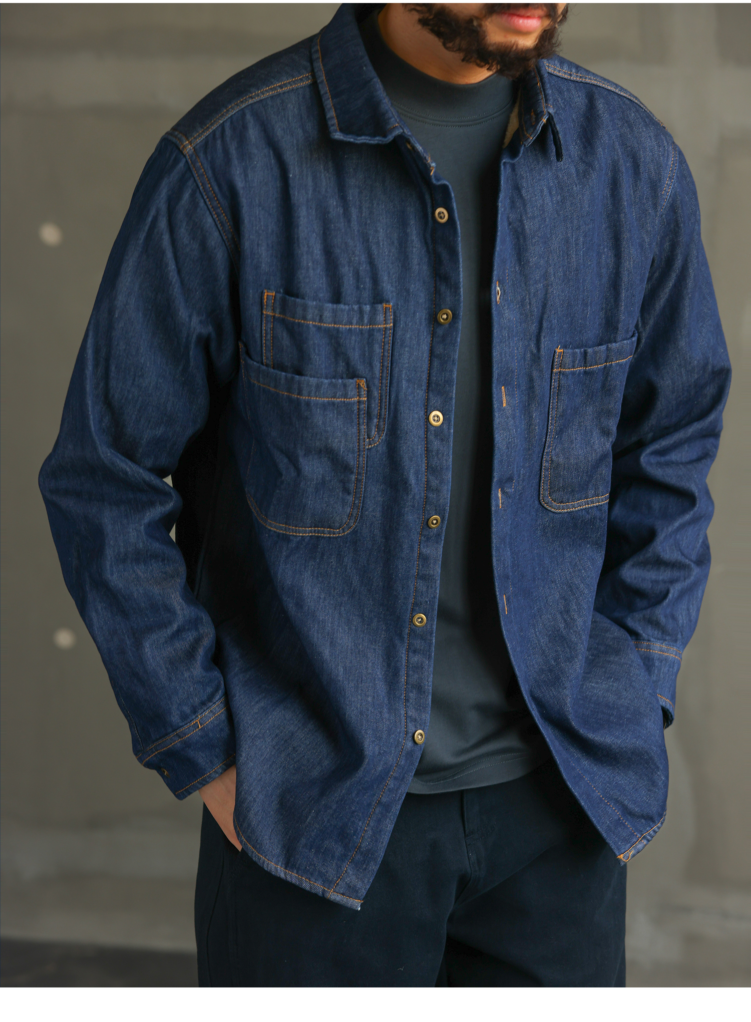 【紳士型格】美式休閒藍色加絨牛仔襯衫男士長袖襯衣外套