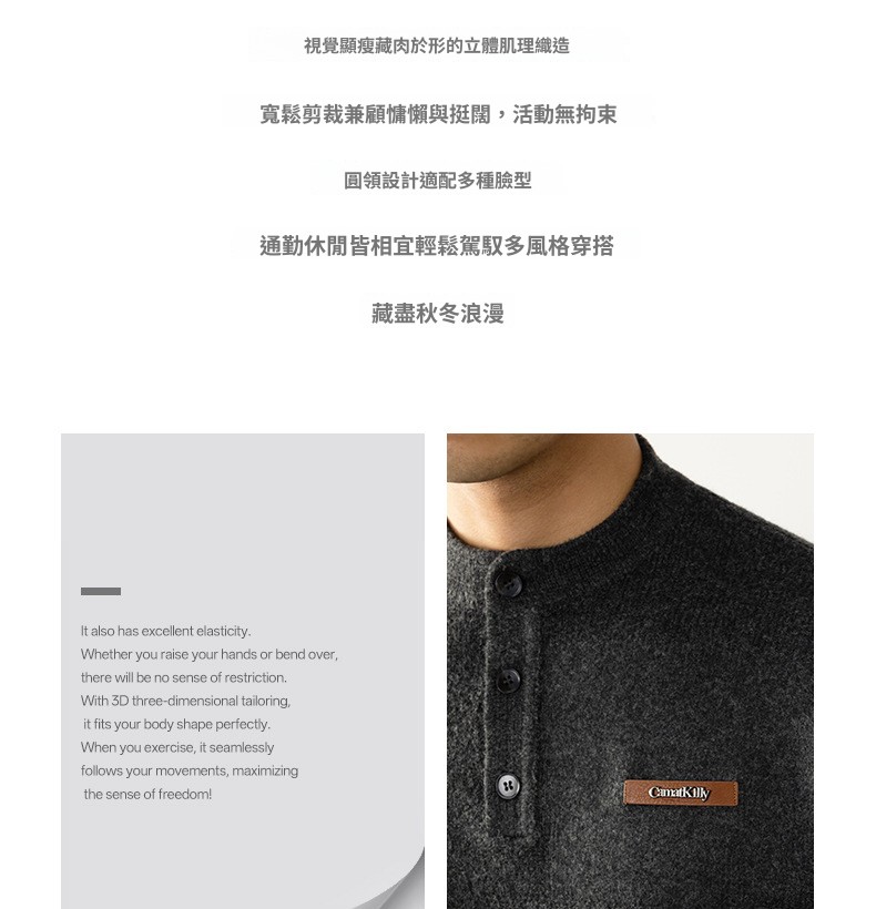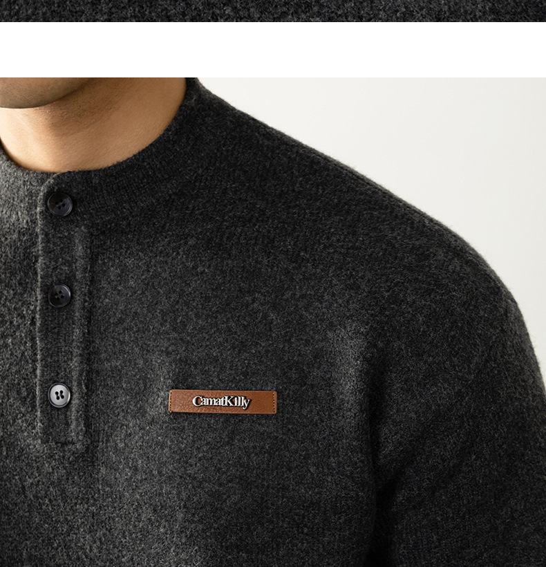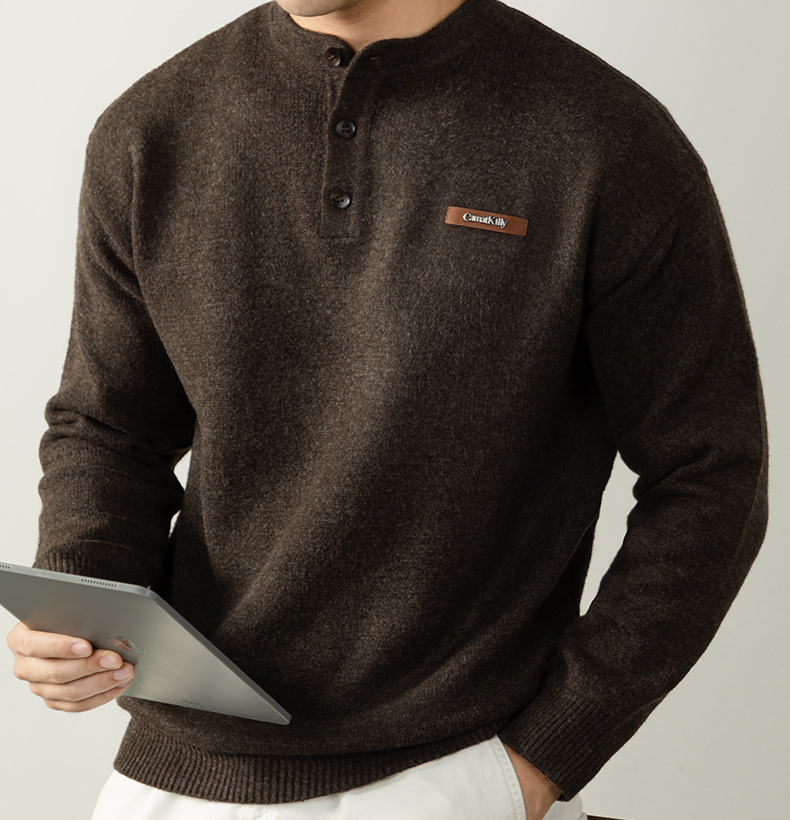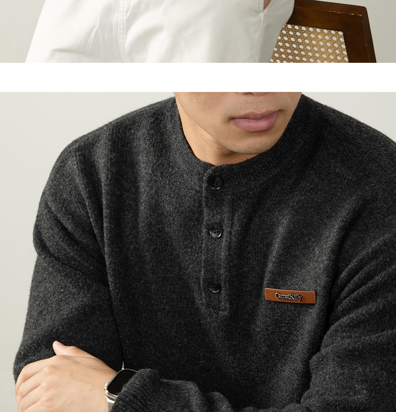 【紳士腔調】老錢風 經典亨利領寬鬆男士針織衫2025秋冬保暖百搭