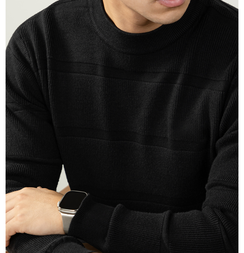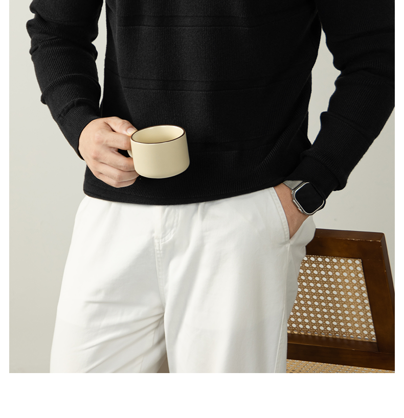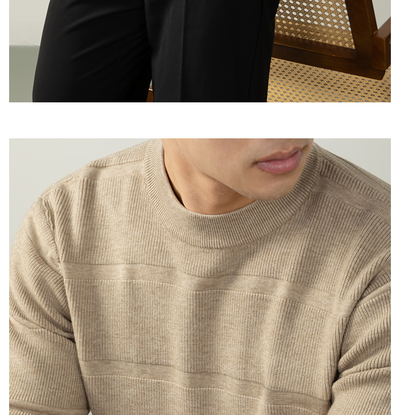 【羊毛萊賽爾】高端毛衣男2025秋冬季厚款條紋提花針織衫商務休閒