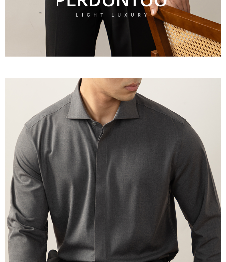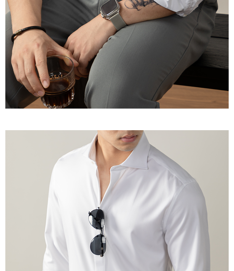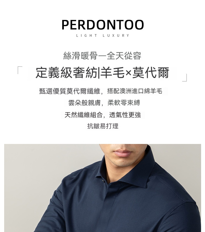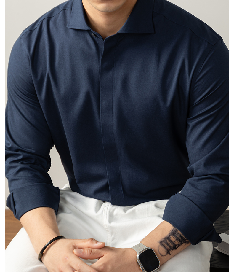【羊毛X莫代爾】定義級舒適奢紡襯衫男士隱藏式暗釦高端商務免燙