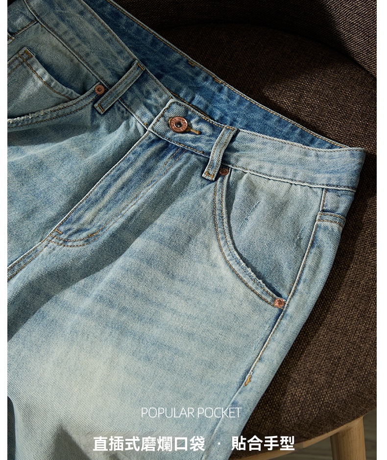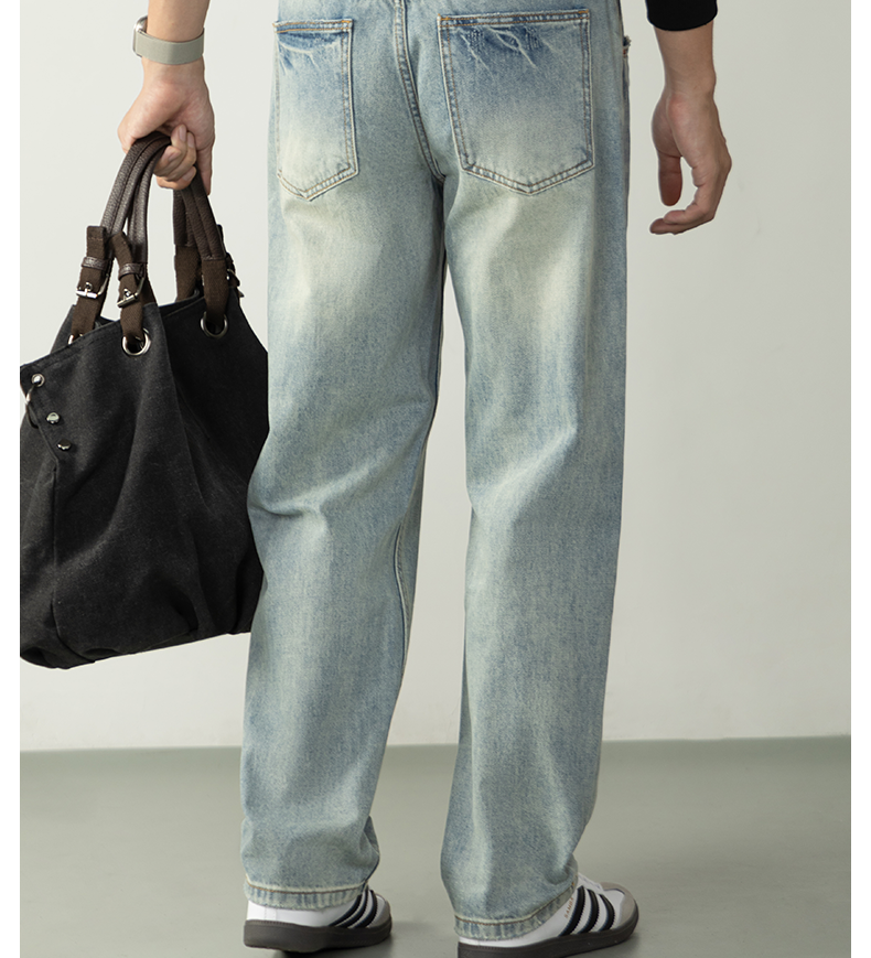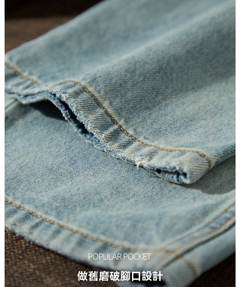 【美式復古】水洗做舊牛仔褲男長褲微闊舒適直筒慵懶時尚休閒褲潮