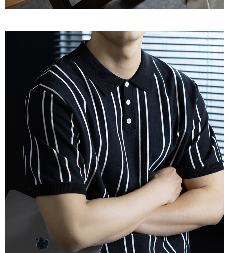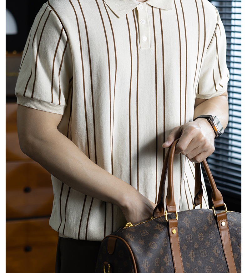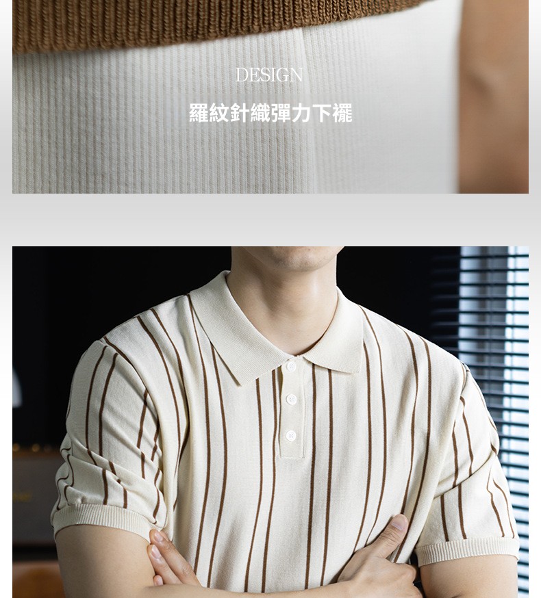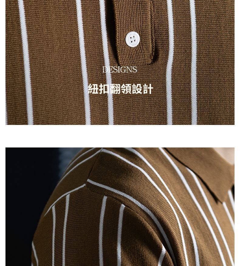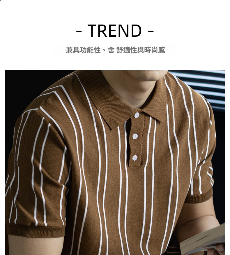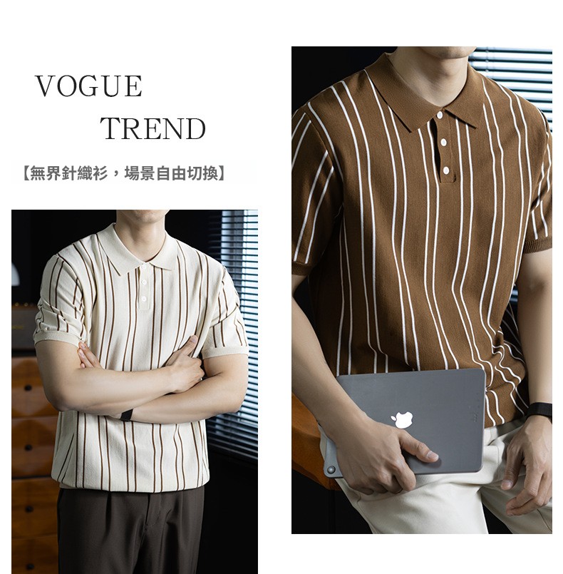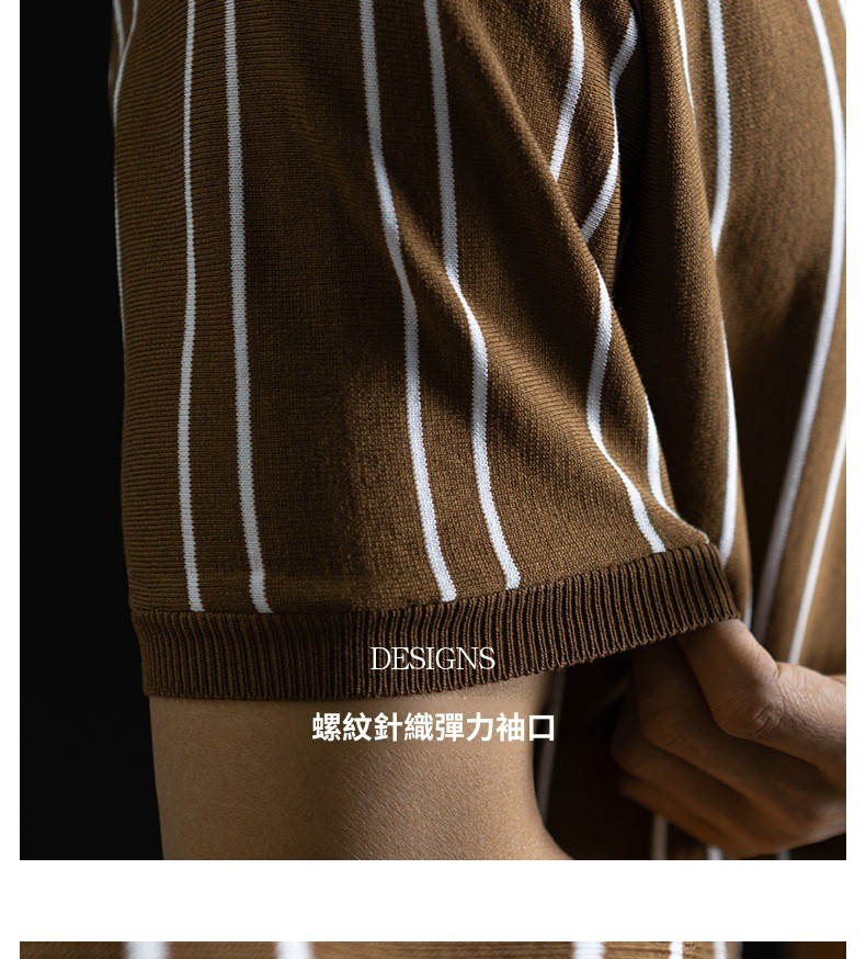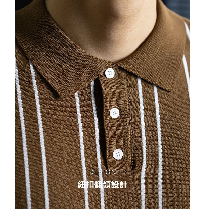 【親膚乾爽】復古簡約細直紋polo針織T恤男款通勤高級感短袖上衣