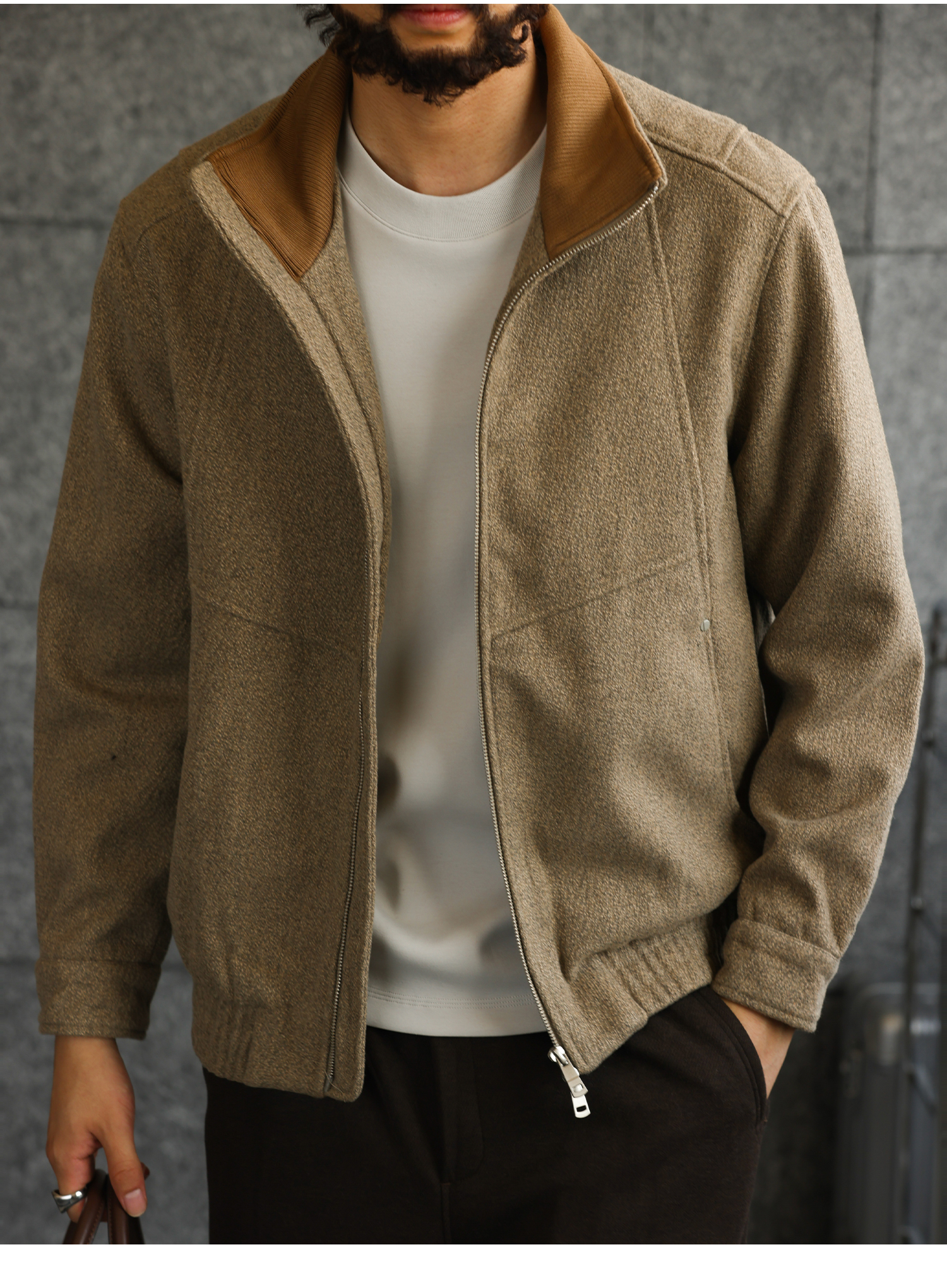 【都市游牧】高定麻感肌理呢子棉立领夹克男商务休闲外套