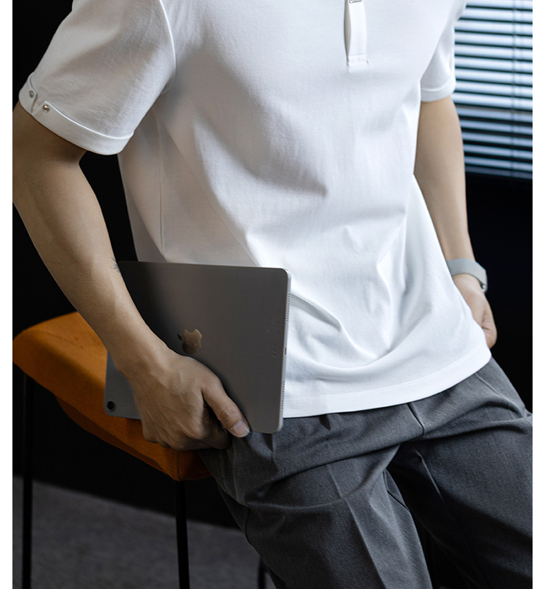 【金屬暗釦設計】萊賽爾男polo衫高級感翻領夏季短袖休閒時尚風