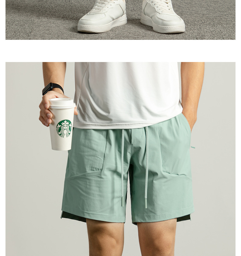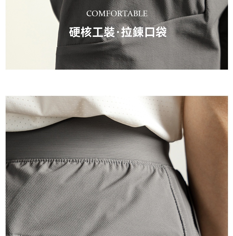 【防水速幹】網紋提花肌理感男士短褲夏季戶外冰感運動五分褲