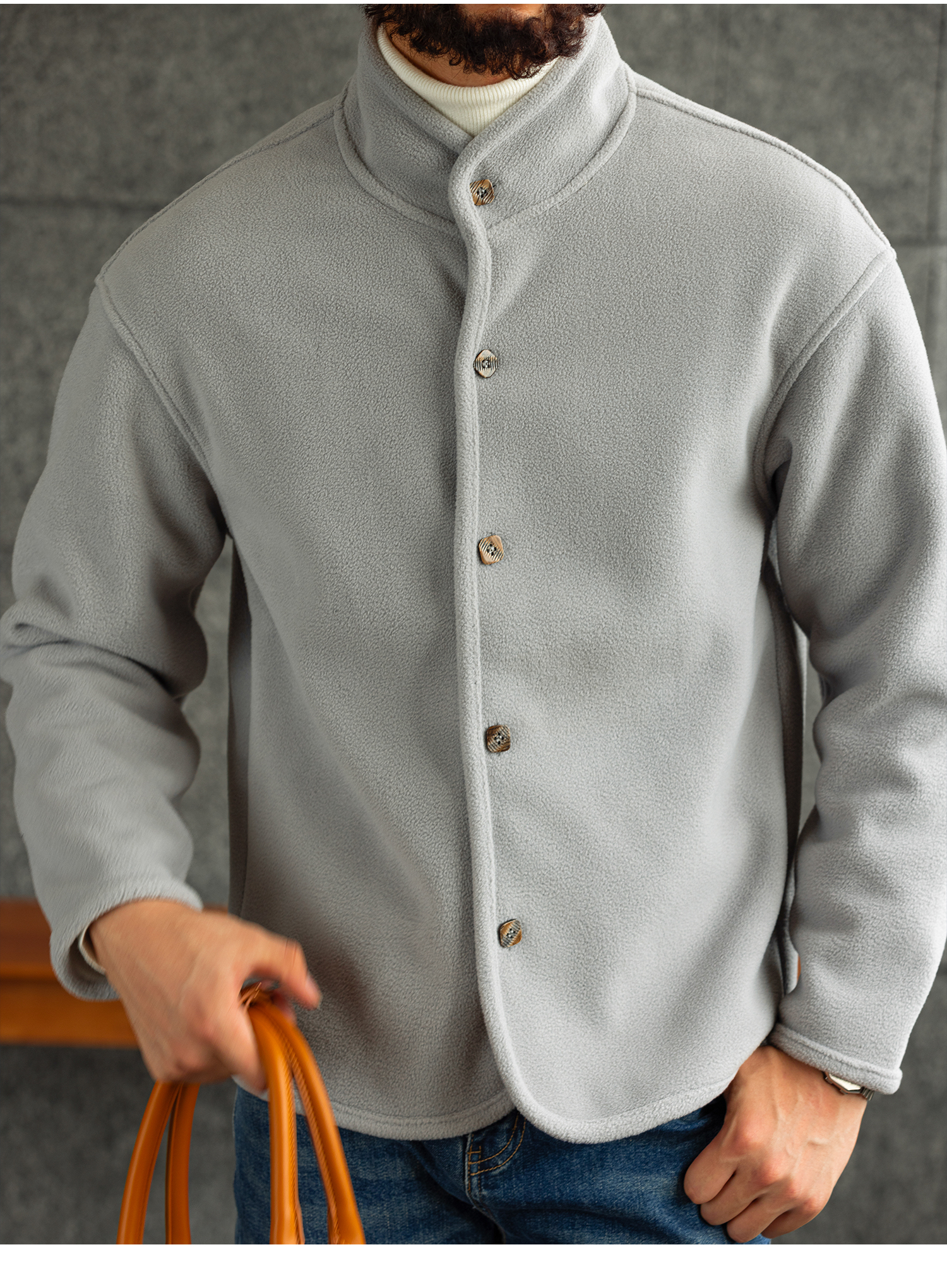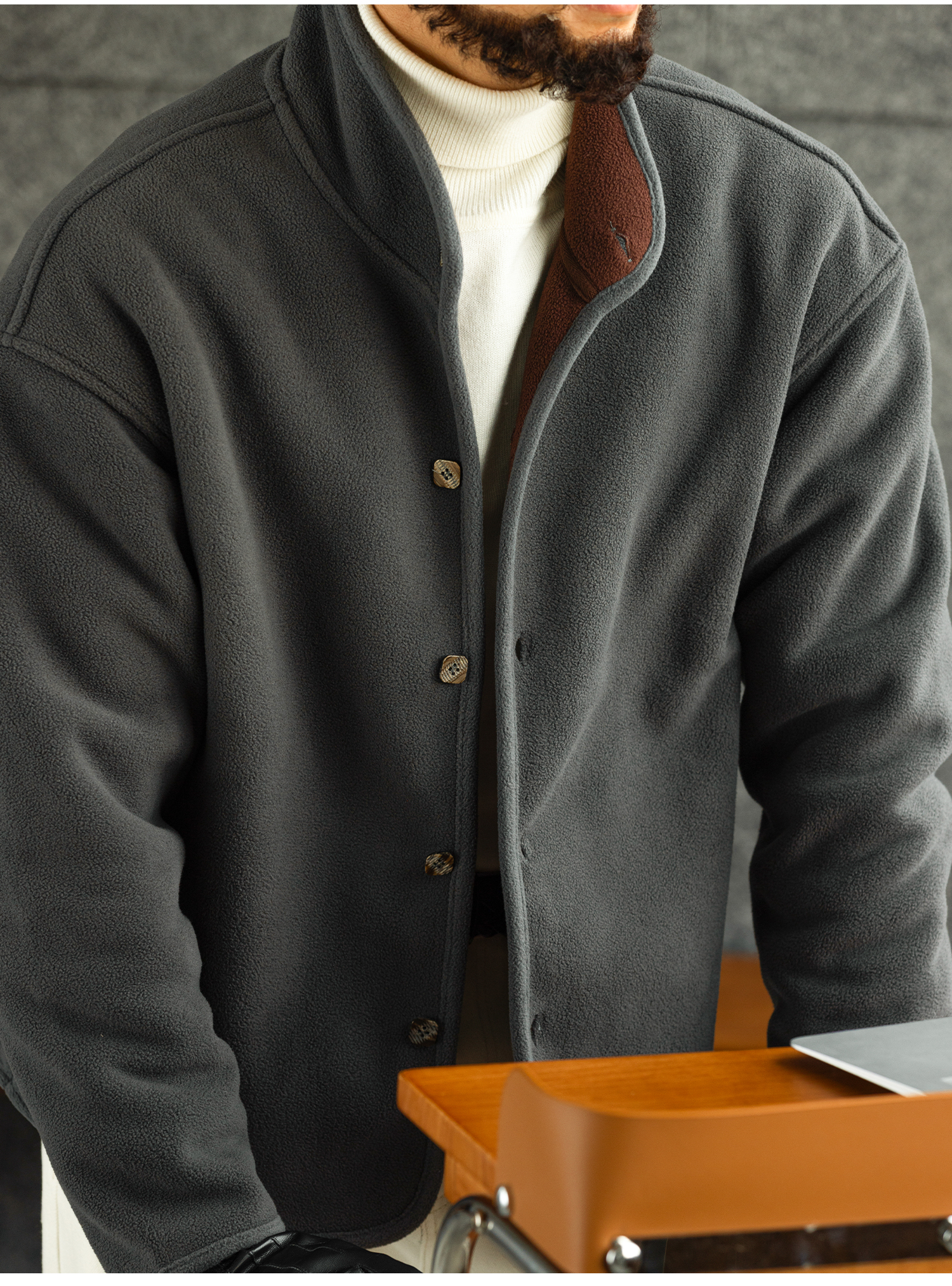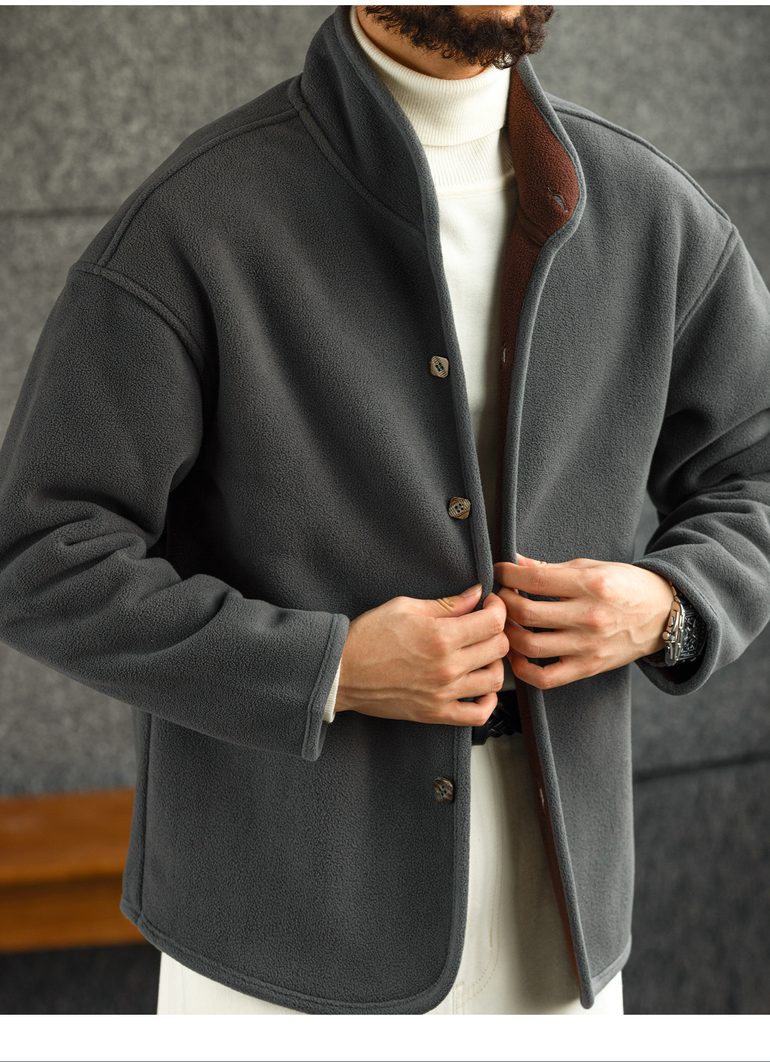 【雲暮暖絨】防風廓形立領搖粒絨夾克男秋冬內搭保暖外套