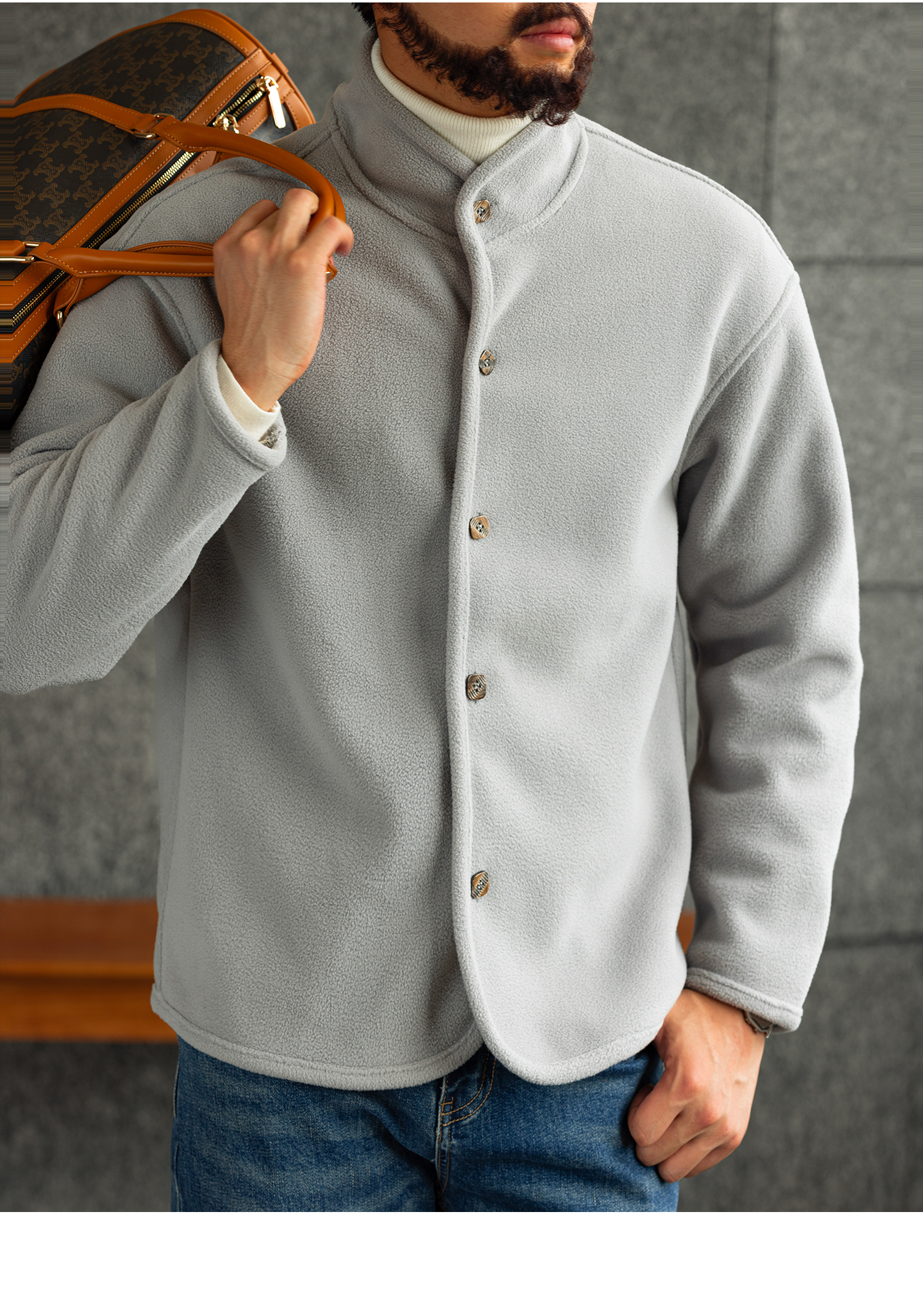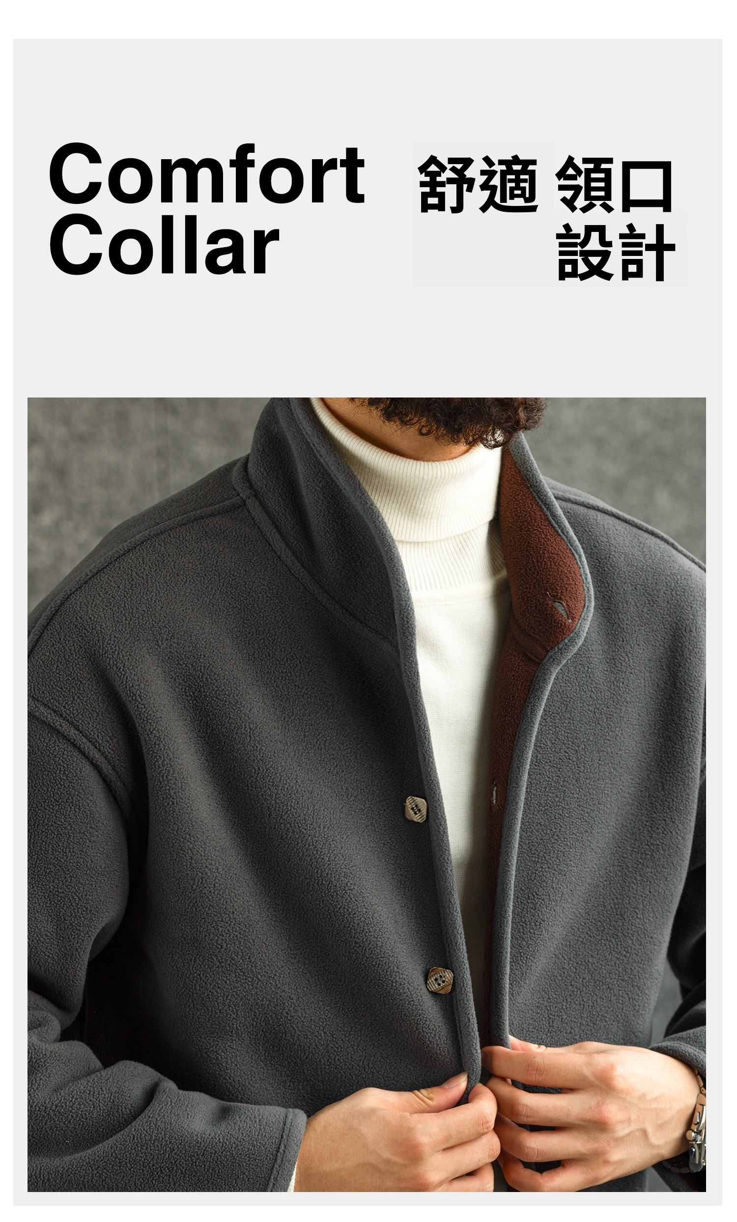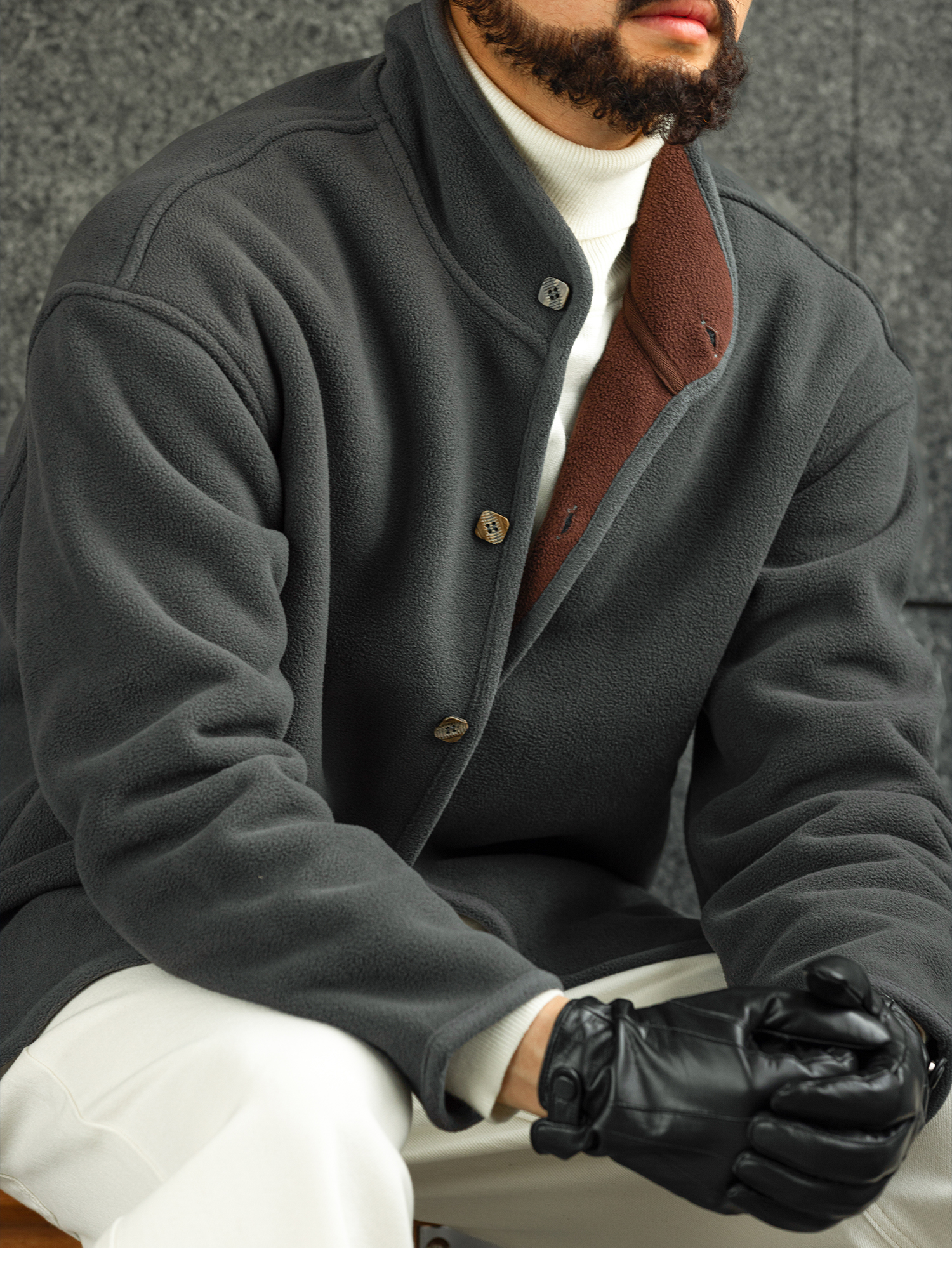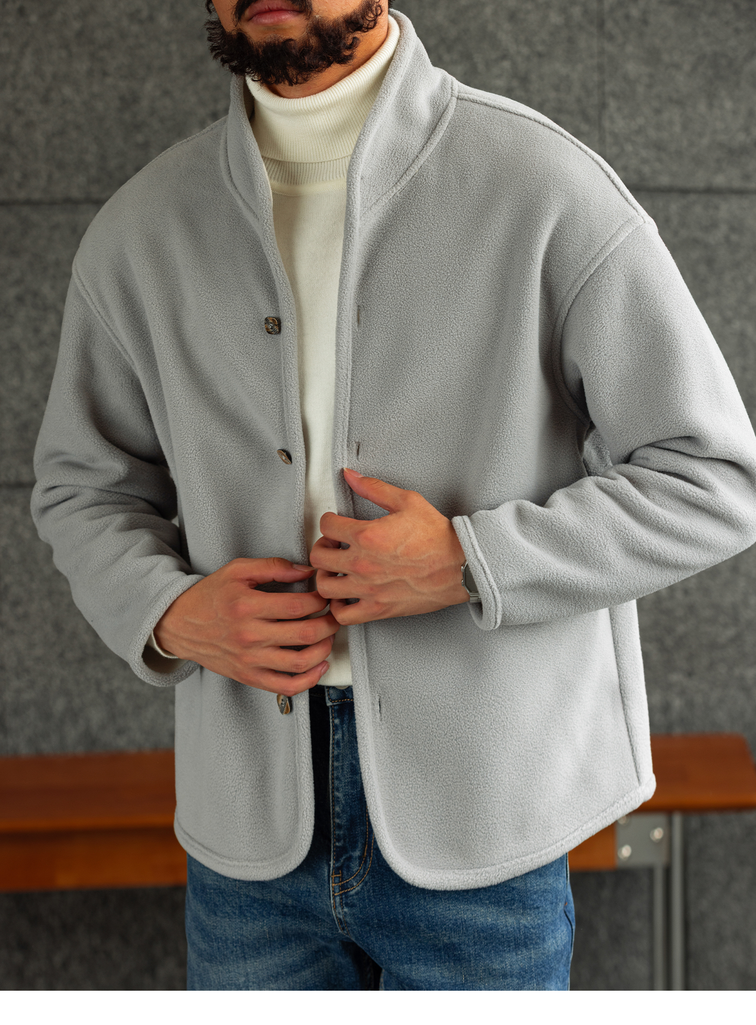 【雲暮暖絨】防風廓形立領搖粒絨夾克男秋冬內搭保暖外套