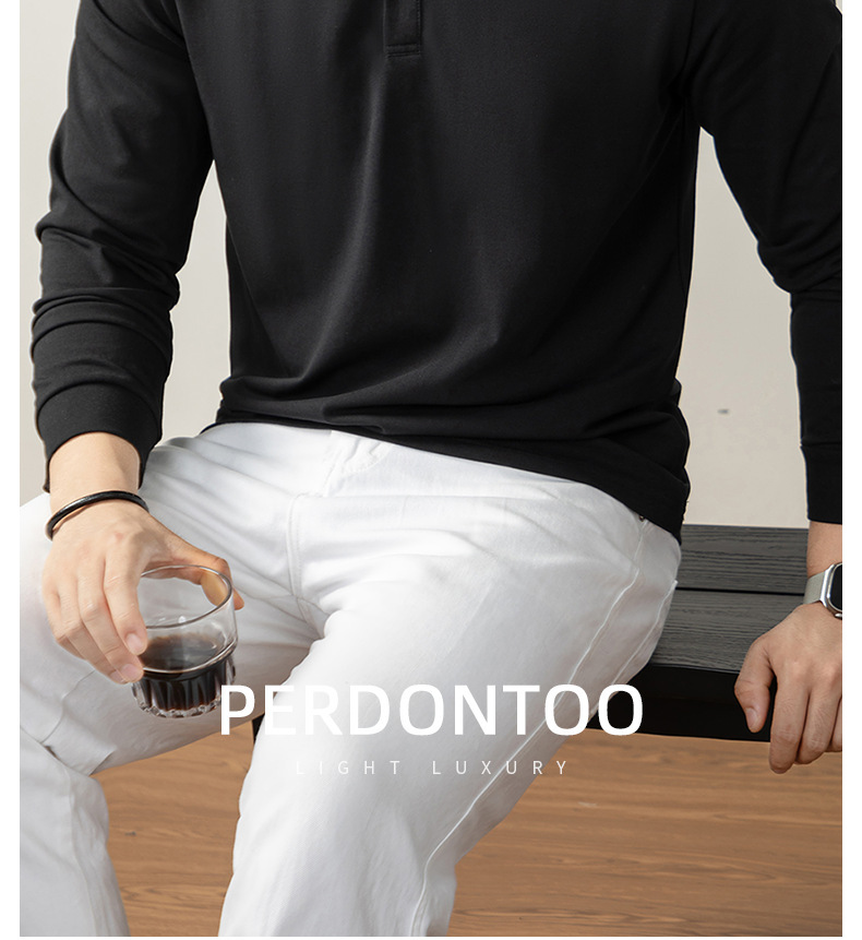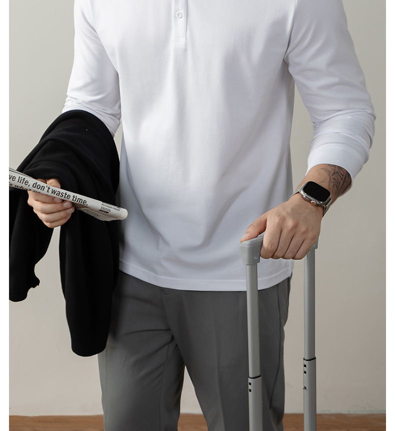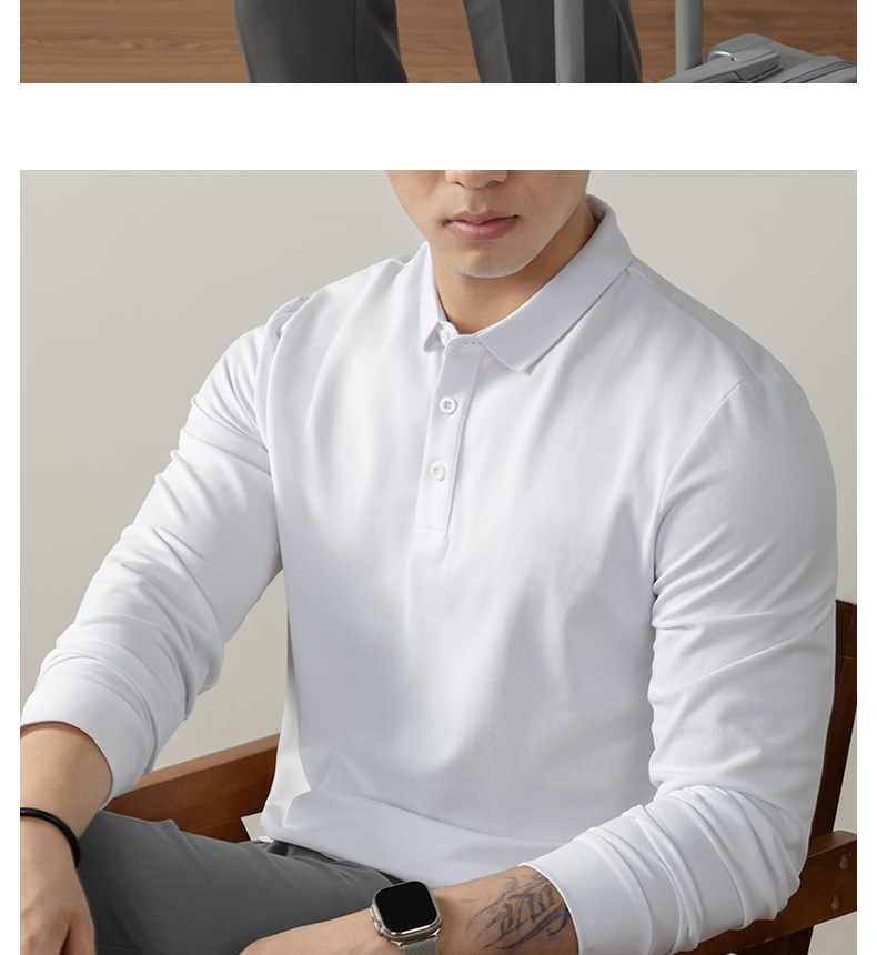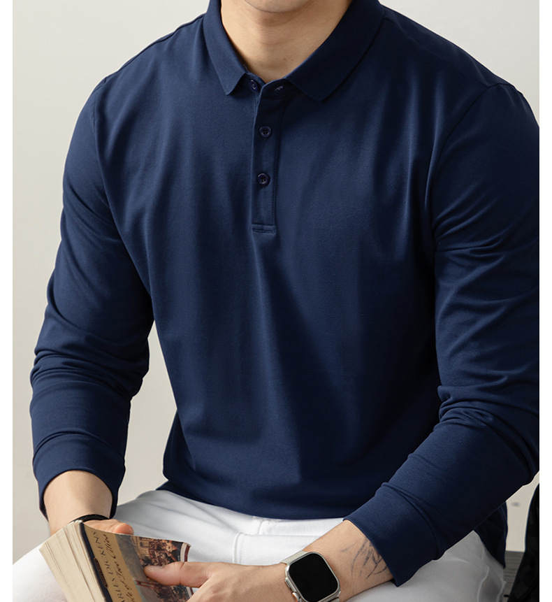 【高端系列】橫機親膚珠地男士長袖Polo衫休閒翻領T恤