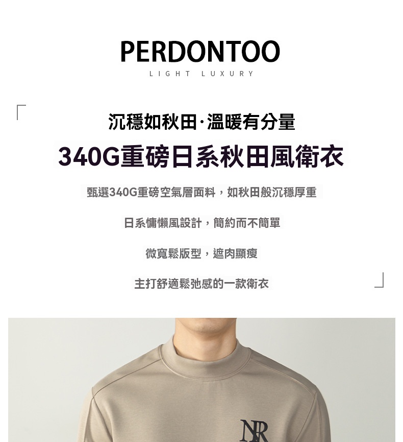 【鬆弛秋田風】雙面細紋340G重磅中領休閒衛衣男寬鬆通勤厚實上衣