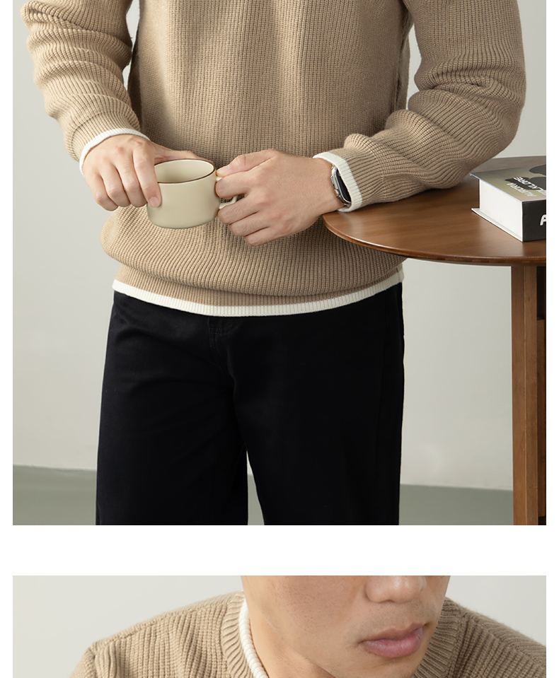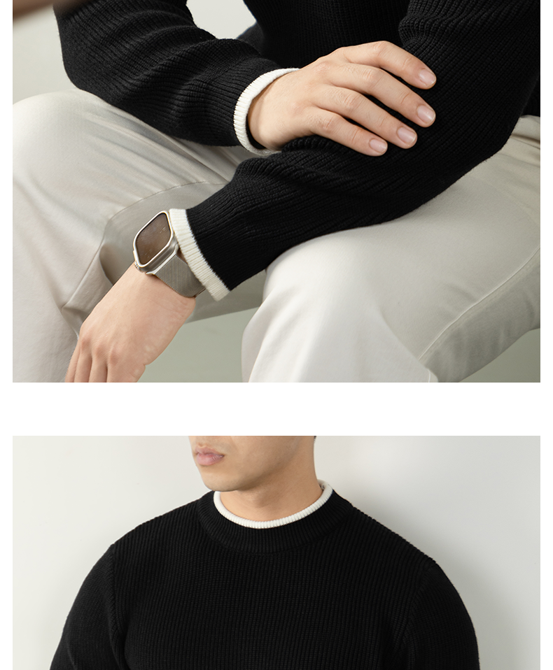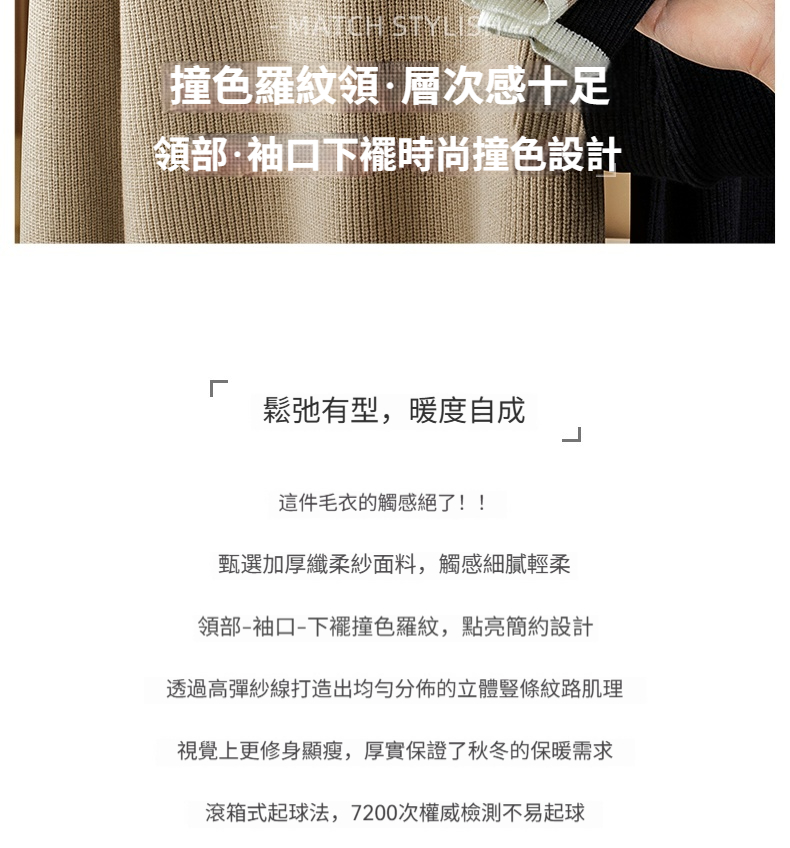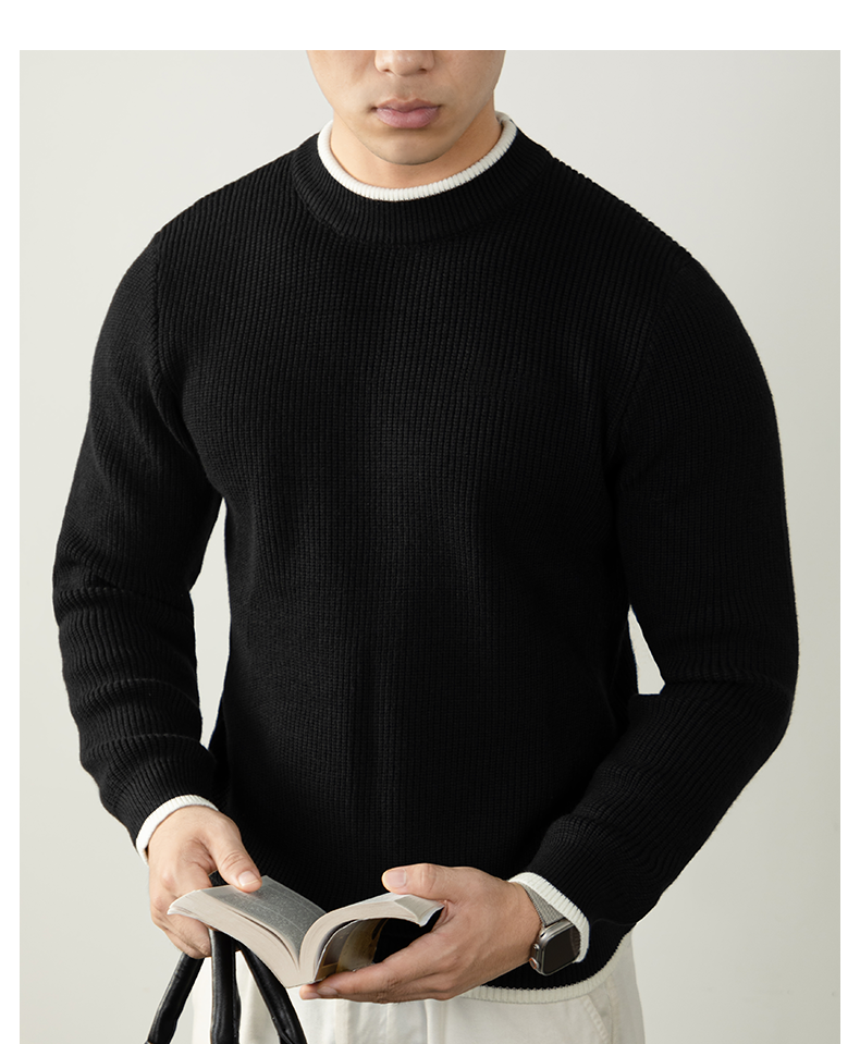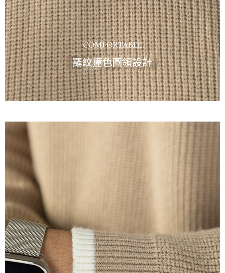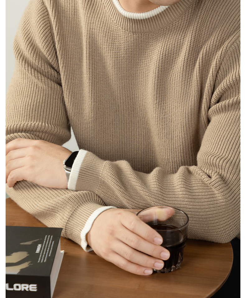 【鬆弛高級感】撞色設計毛衣男秋冬加厚保暖針織衫日系慵懶休閒風