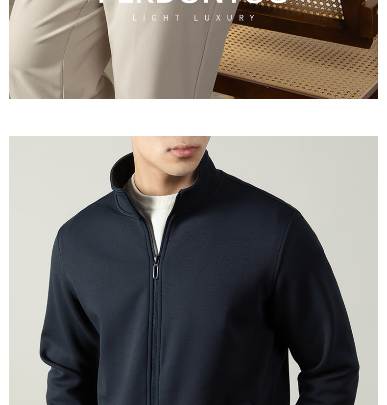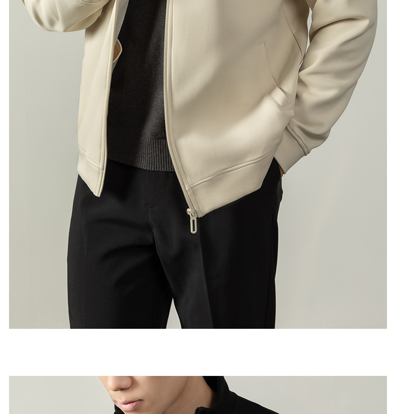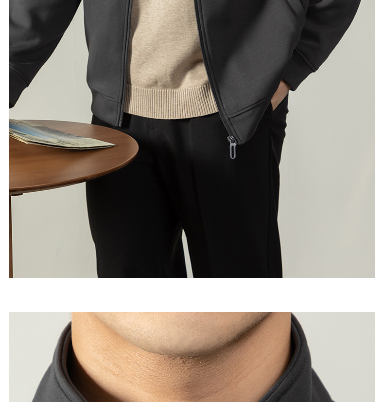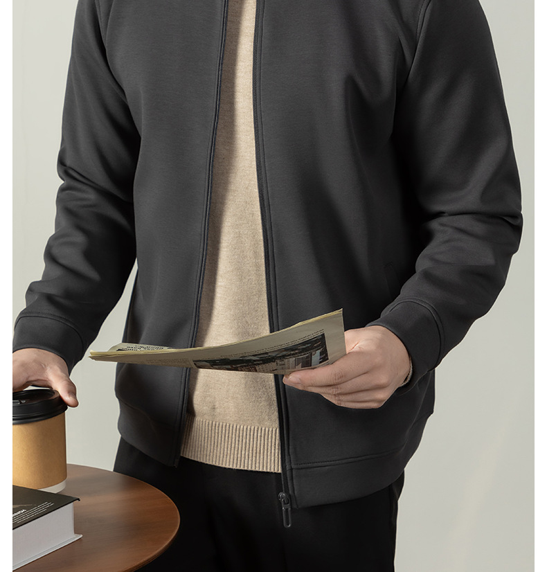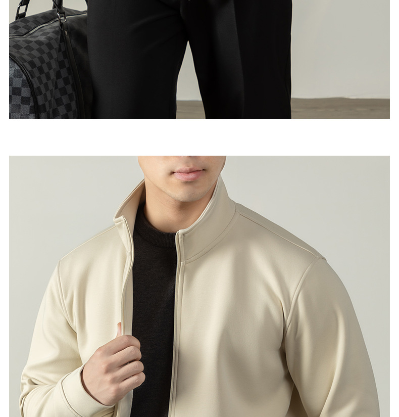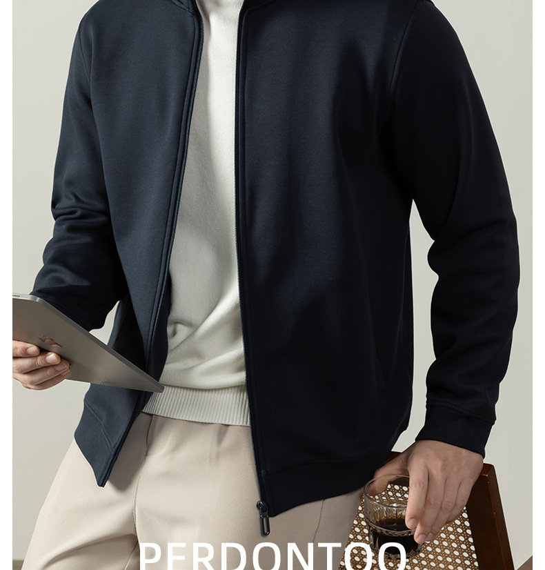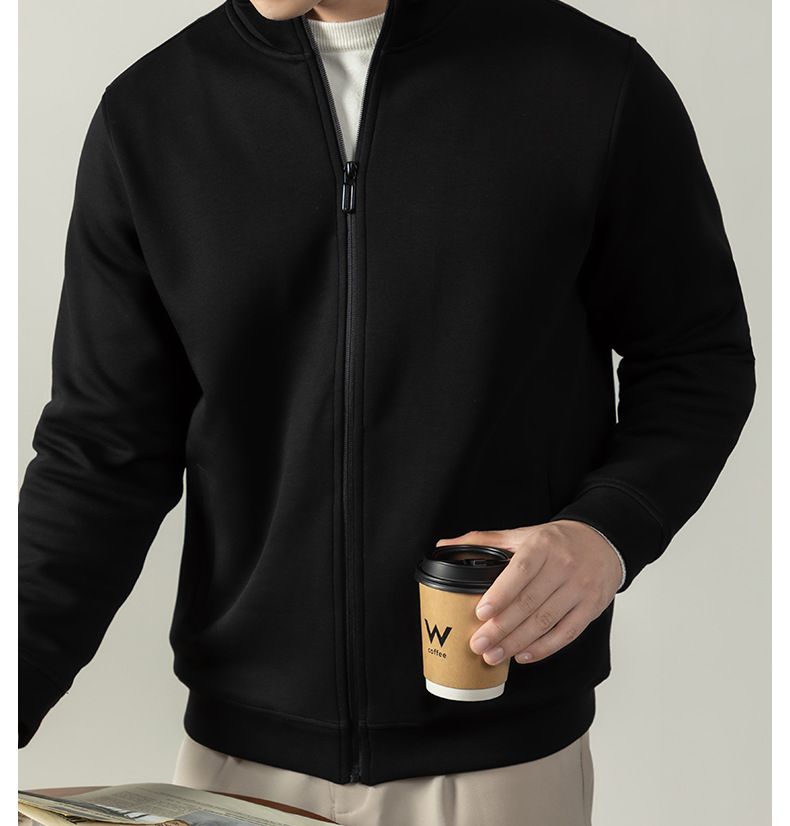 【400G重磅棉感】輕熟風厚款拉鍊外套男士商務純色秋冬立領夾克衫