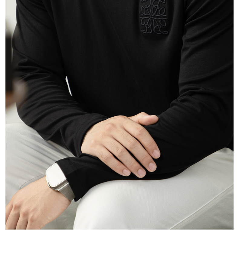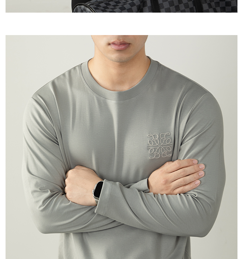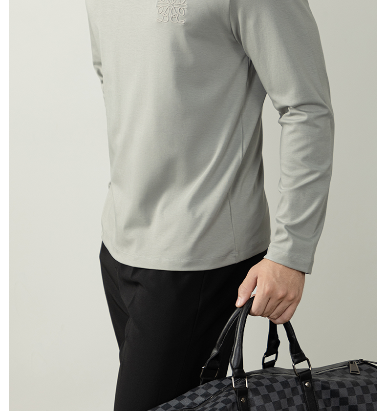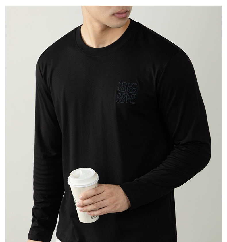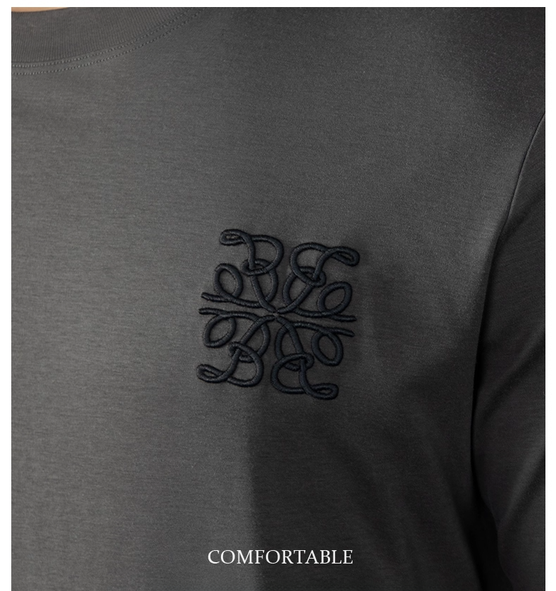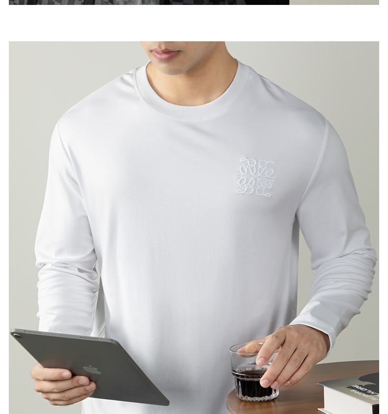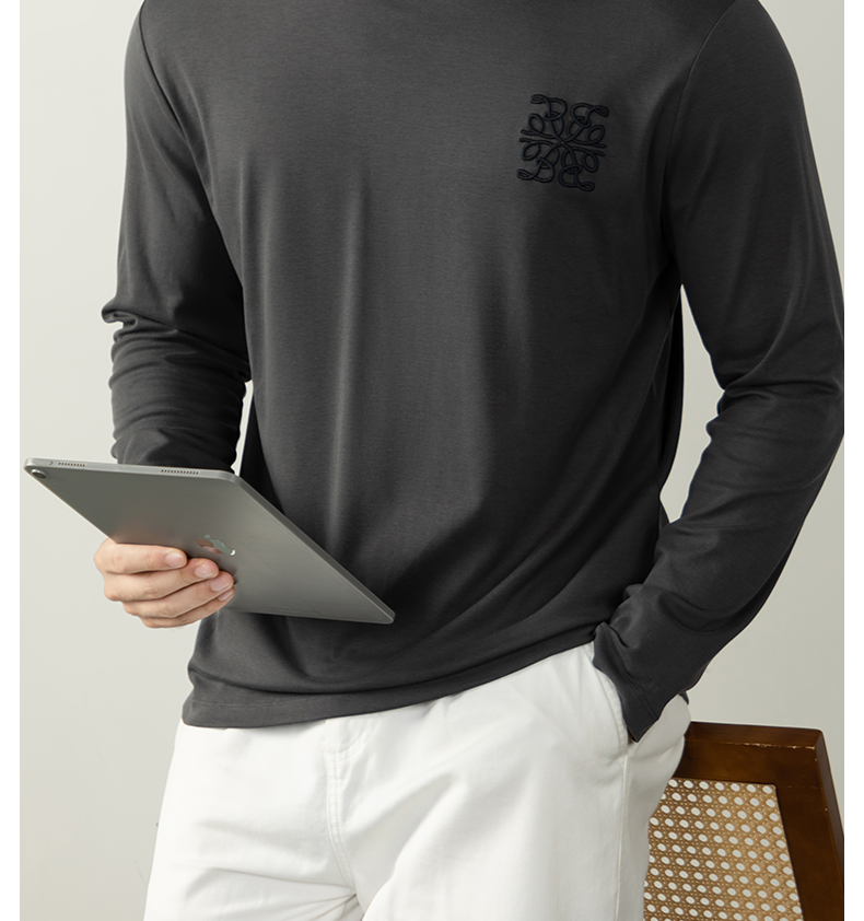 【80S高支萊賽爾】雙面液氨絲光長袖T恤男刺繡輕奢高端打底衫商務