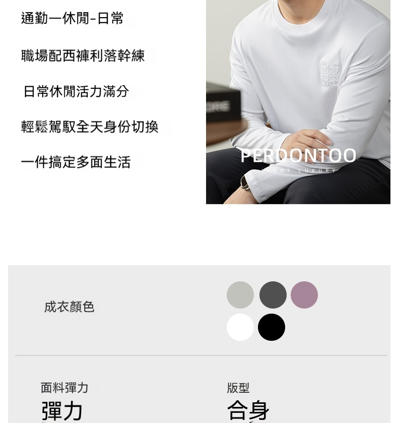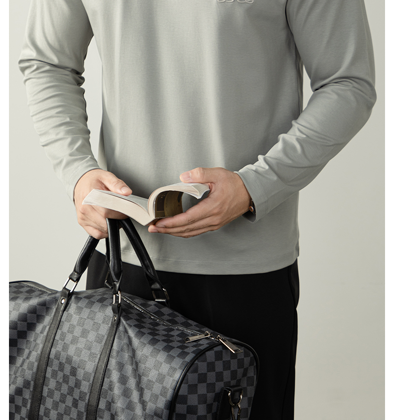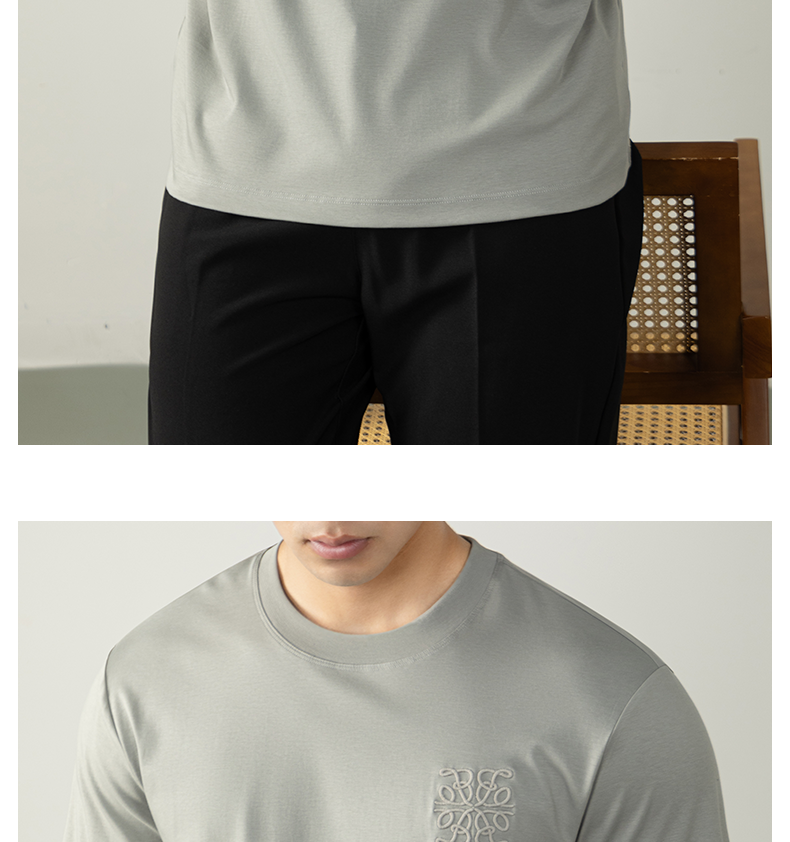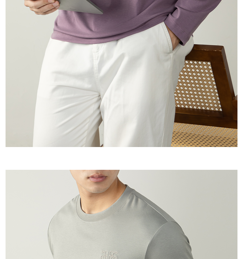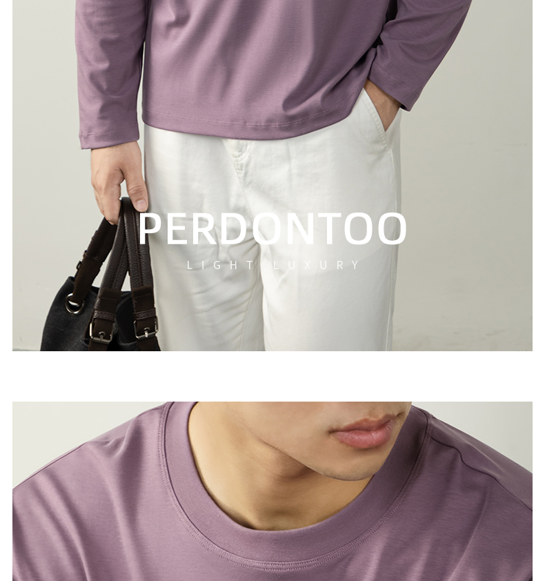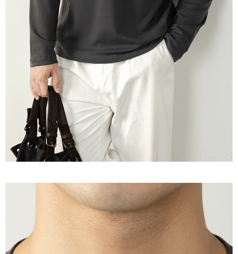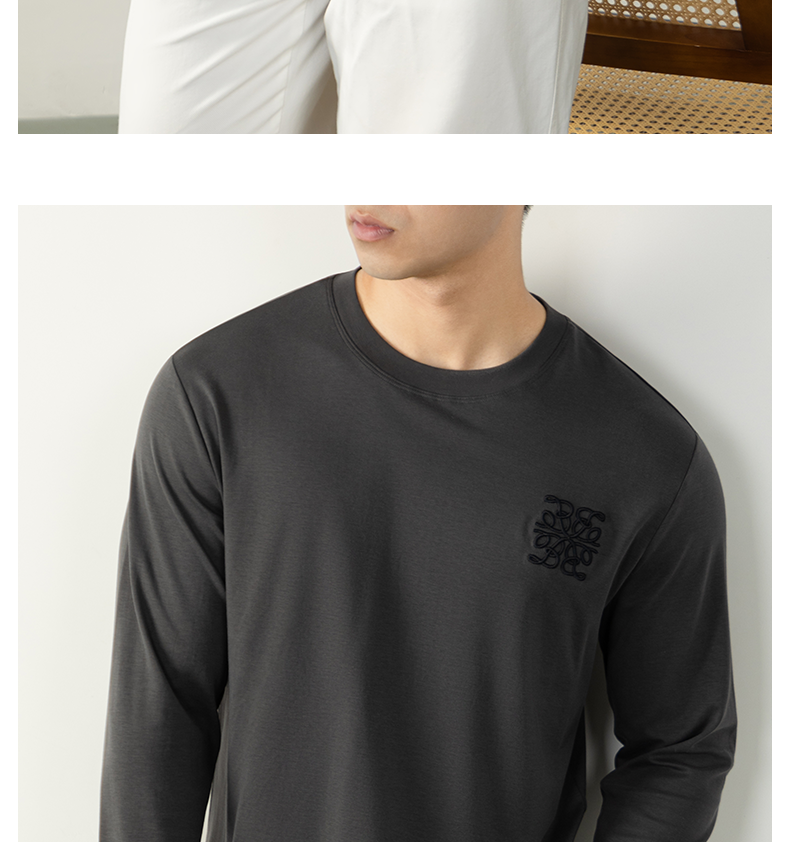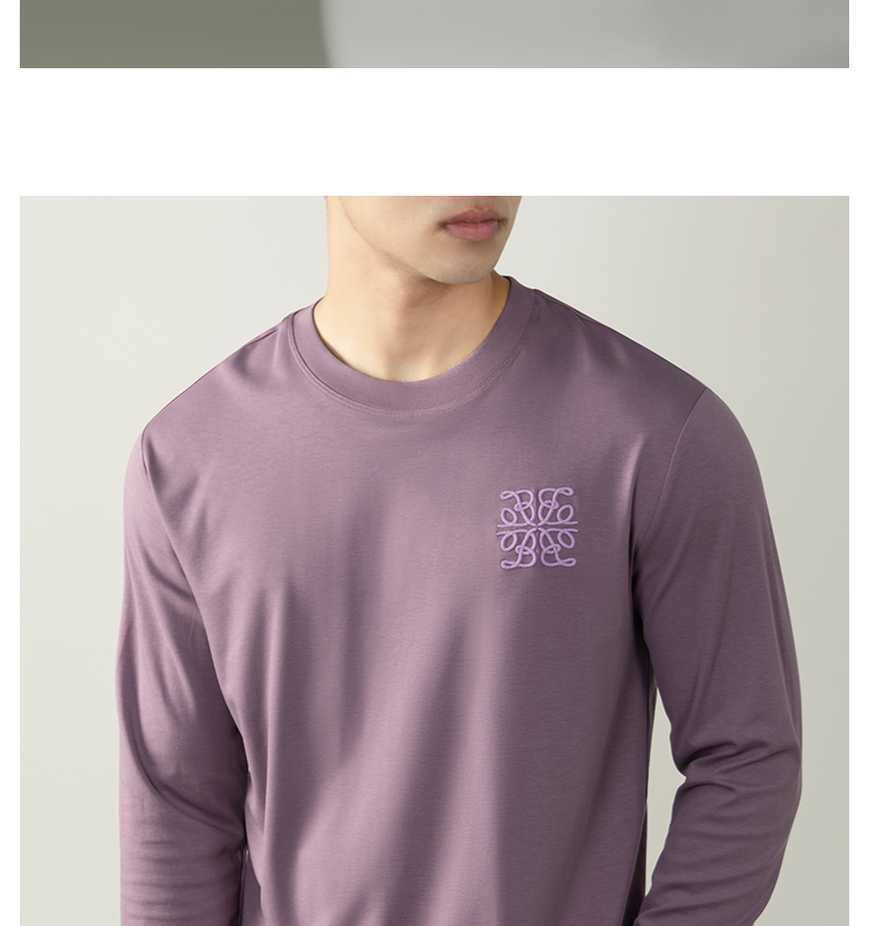【80S高支萊賽爾】雙面液氨絲光長袖T恤男刺繡輕奢高端打底衫商務